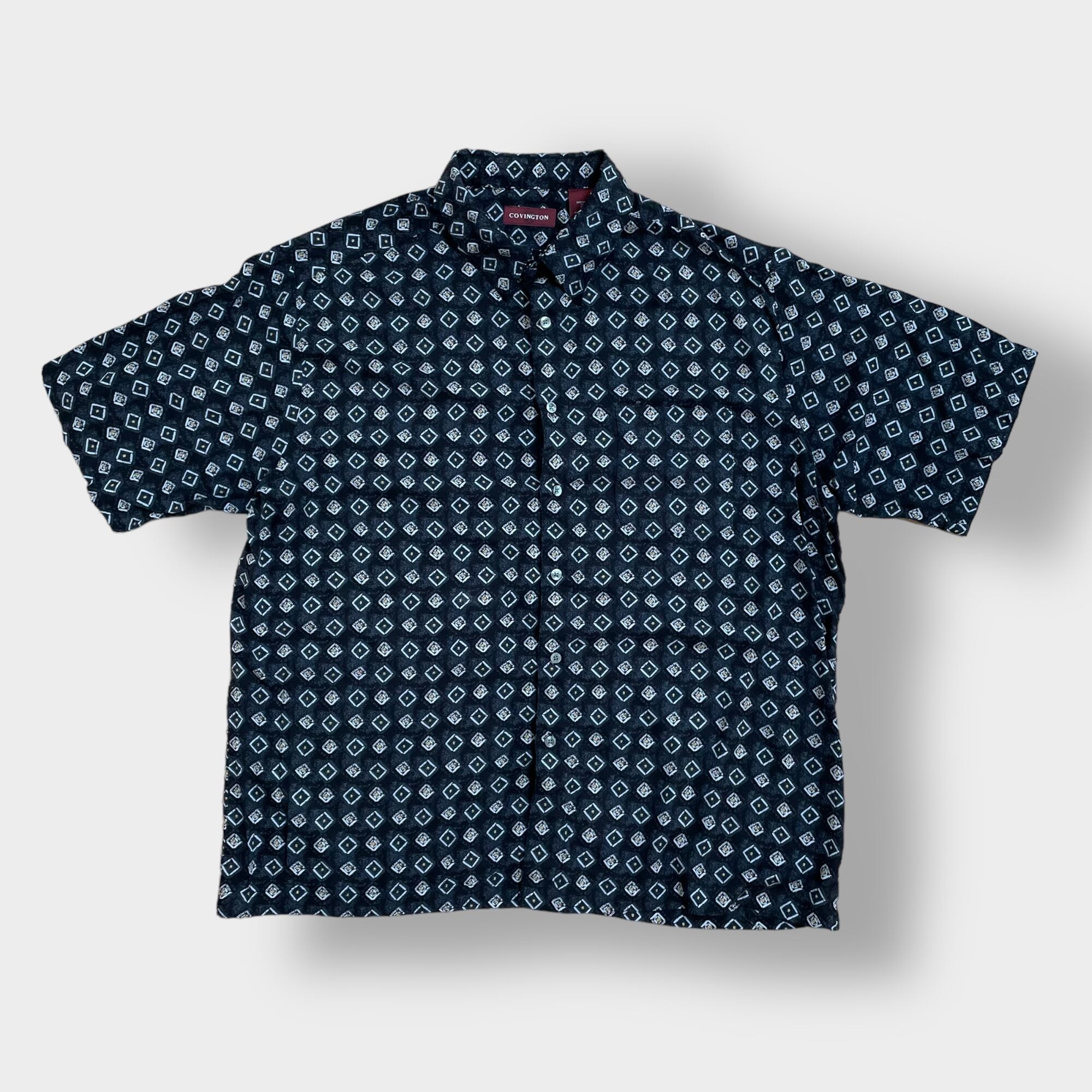 【COVINGTON】半袖シャツ 個性的 総柄 柄物 ブラック オールパターン XL ビッグサイズ US古着