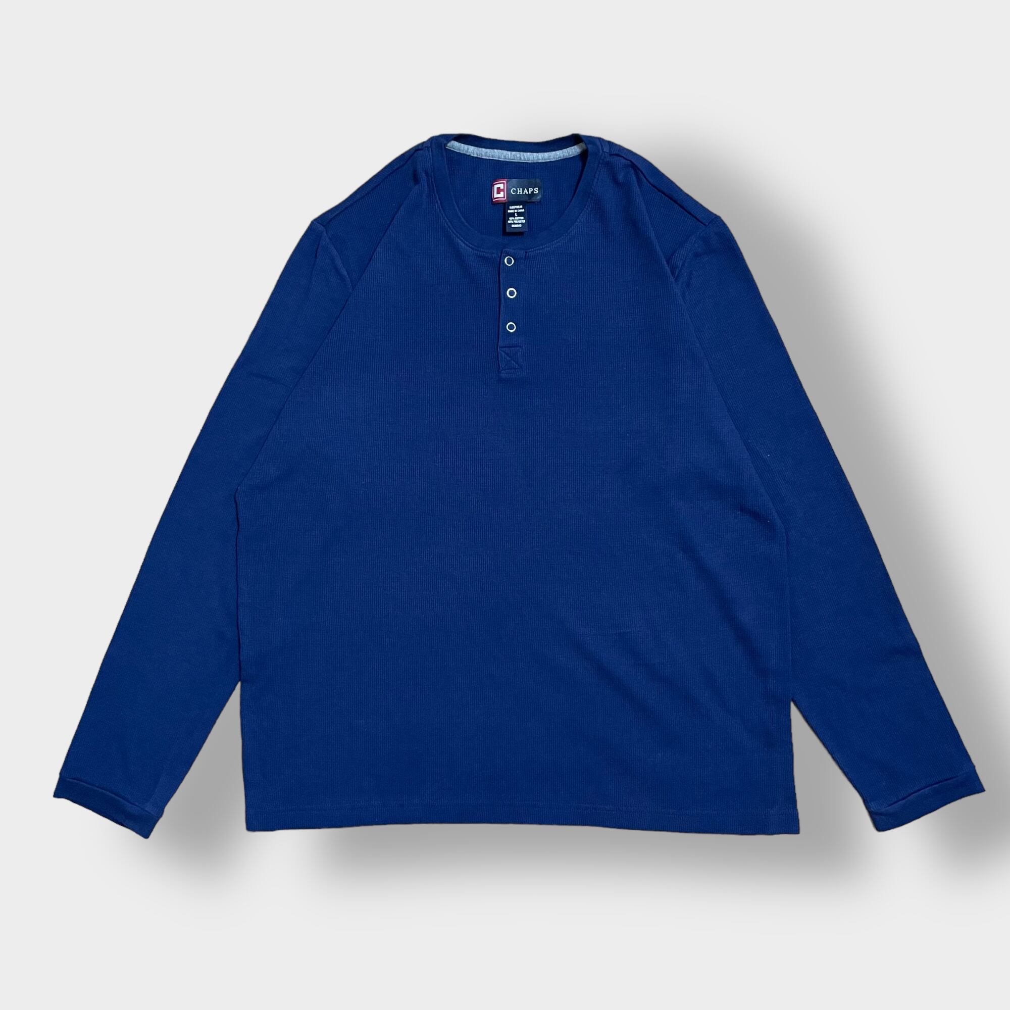 【CHAMPS】サーマルシャツ ヘンリーネック長袖シャツ ワッフル ロンT チャップス L US古着