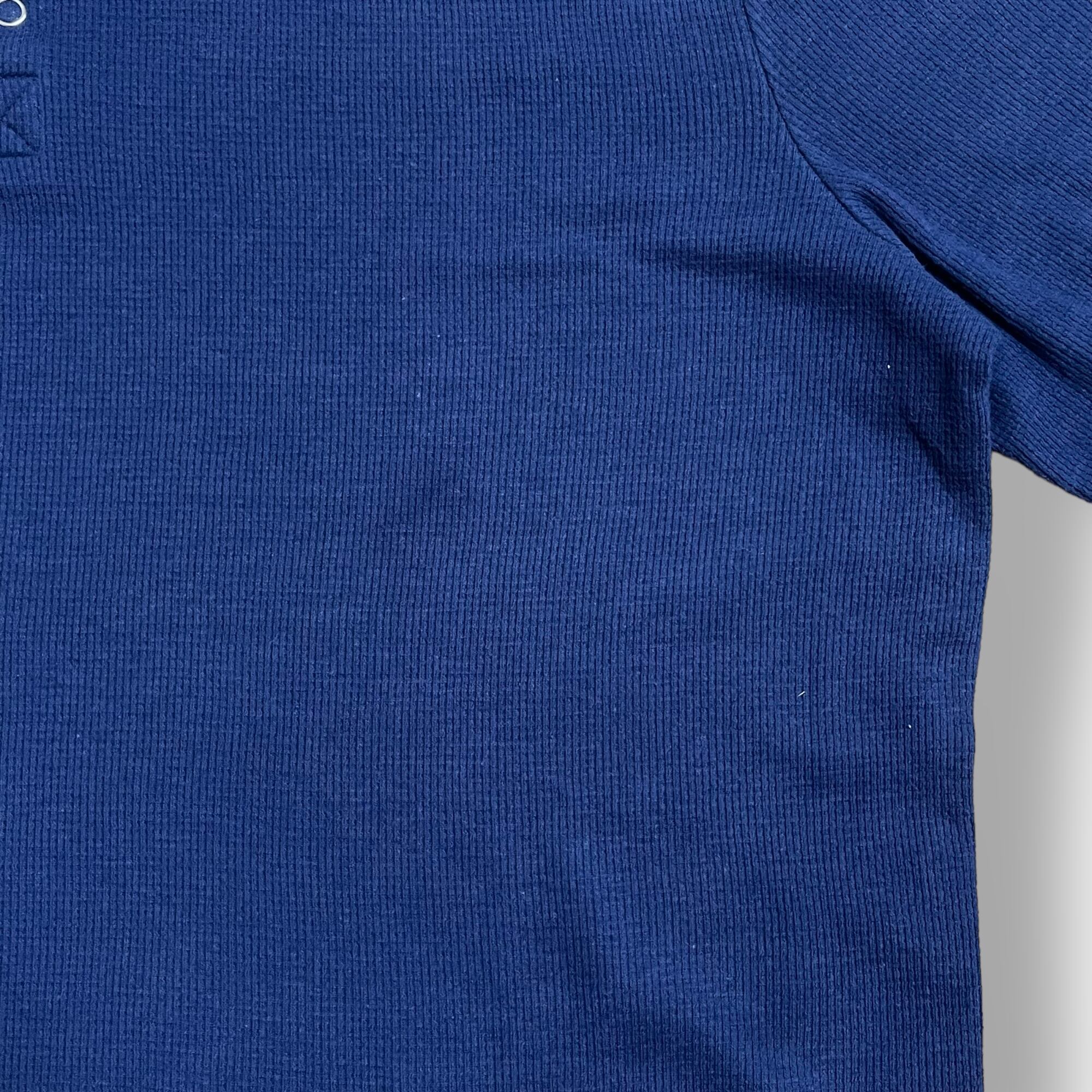 ワッフル生地、ヘンリーネック、サイズ表記はL、下部に実寸を掲載しておりますのでご参考ください。