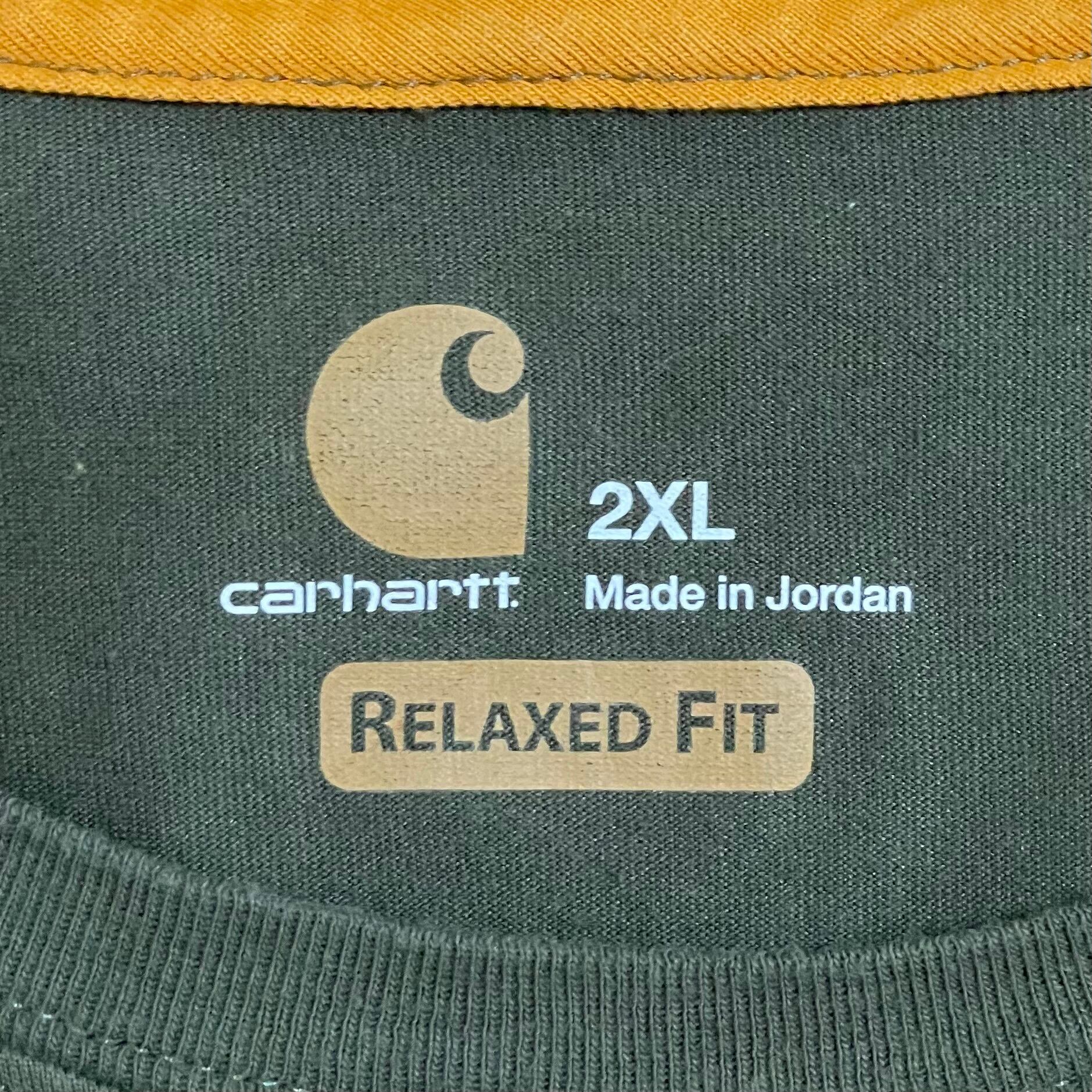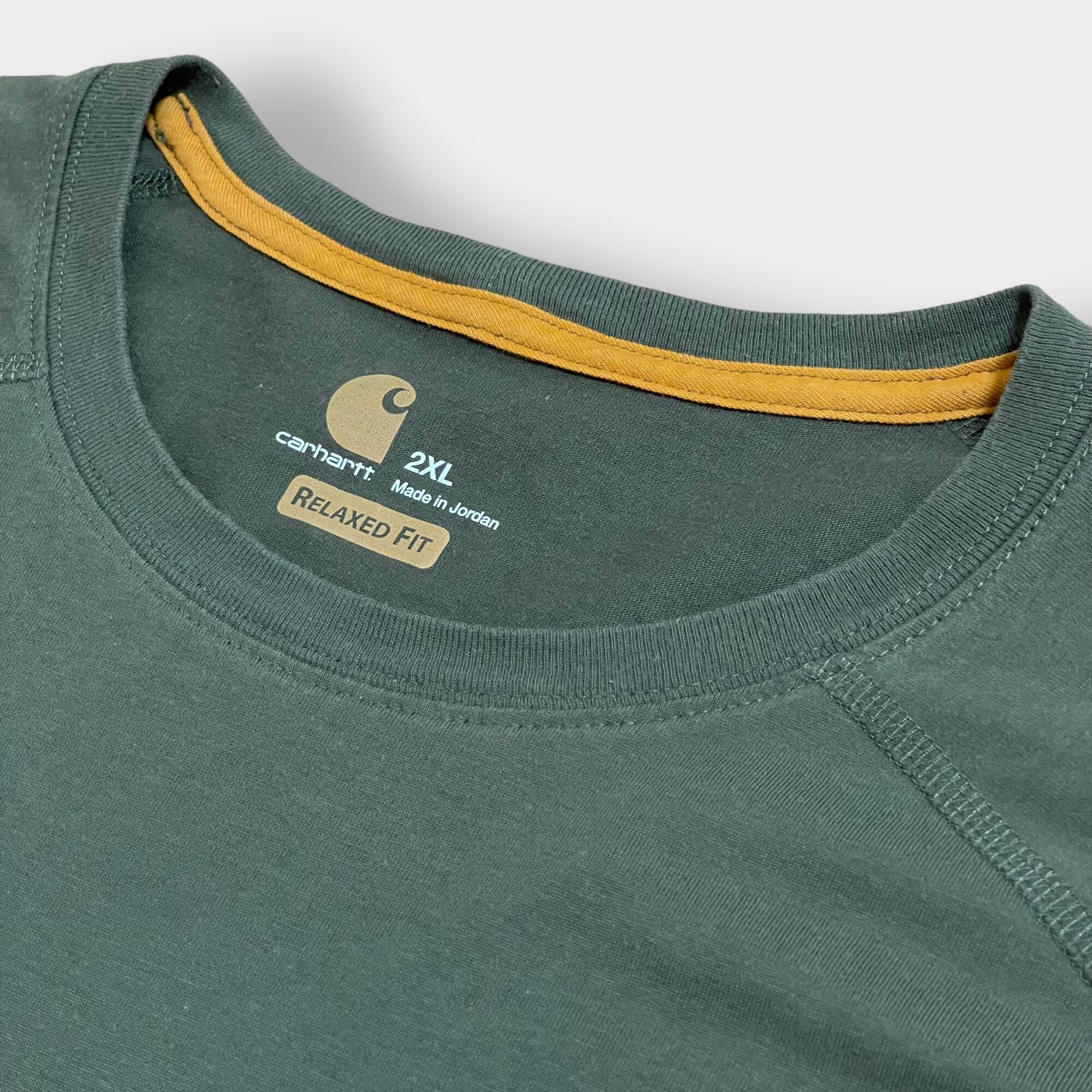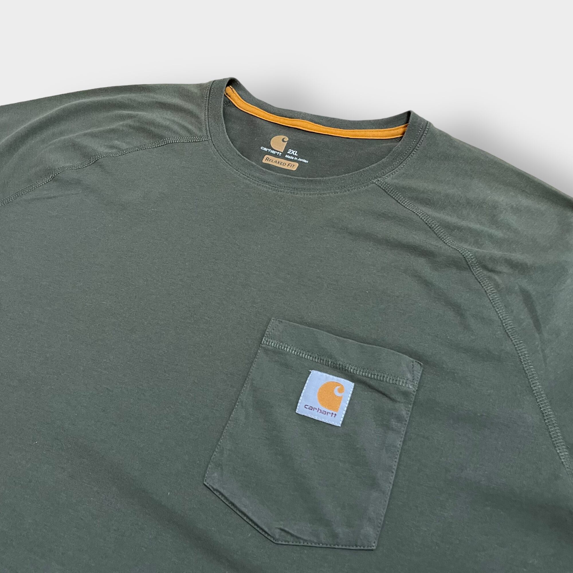【Carhartt】2XL ビッグシルエット ワンポイント ポケットTシャツ ポケT カーハート FORCE ラグラン カーキ 半袖 夏物 US古着