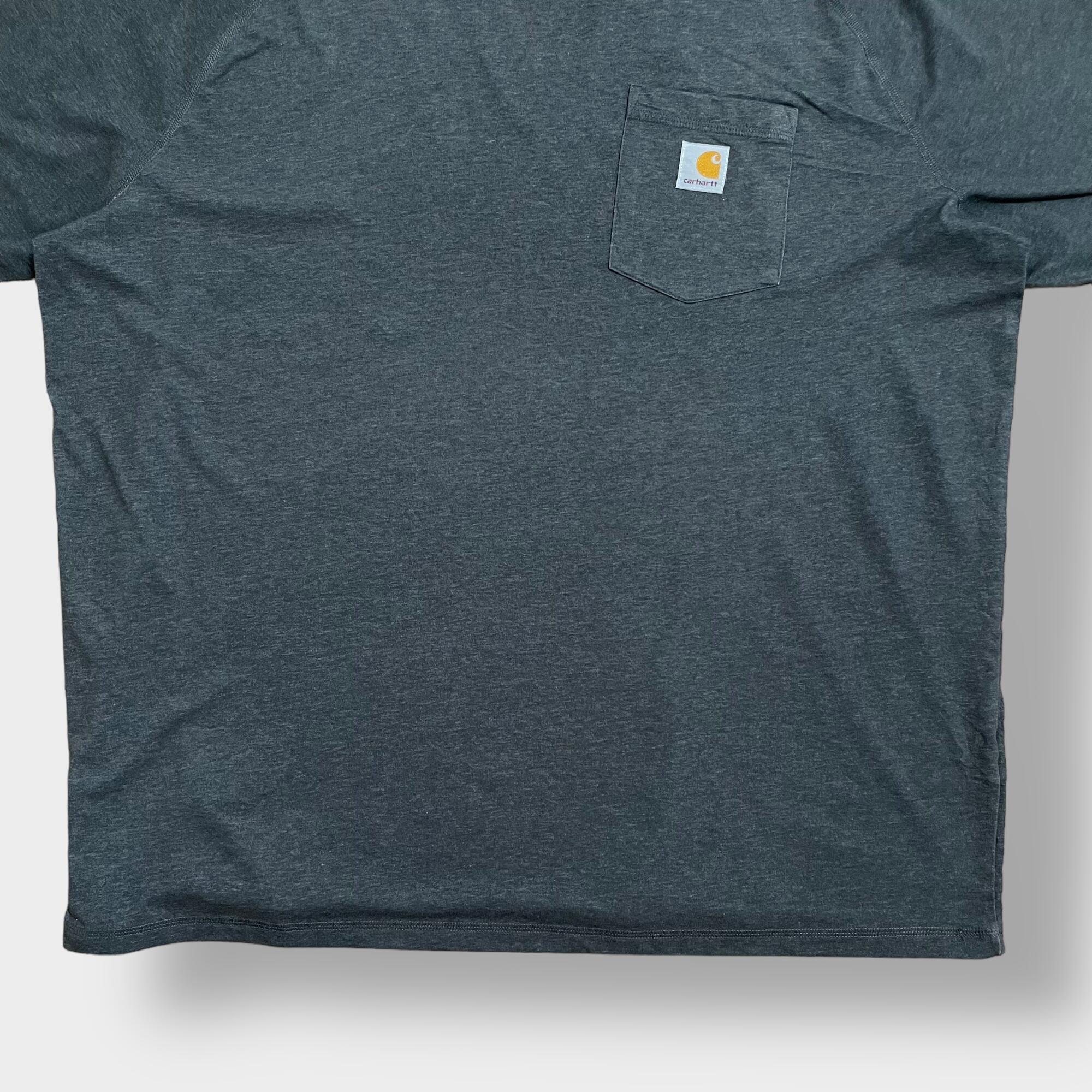 【Carhartt】2XL ビッグシルエット ワンポイント ポケットTシャツ ポケT カーハート FORCE ラグラン ダークグレー 半袖 夏物 US古着