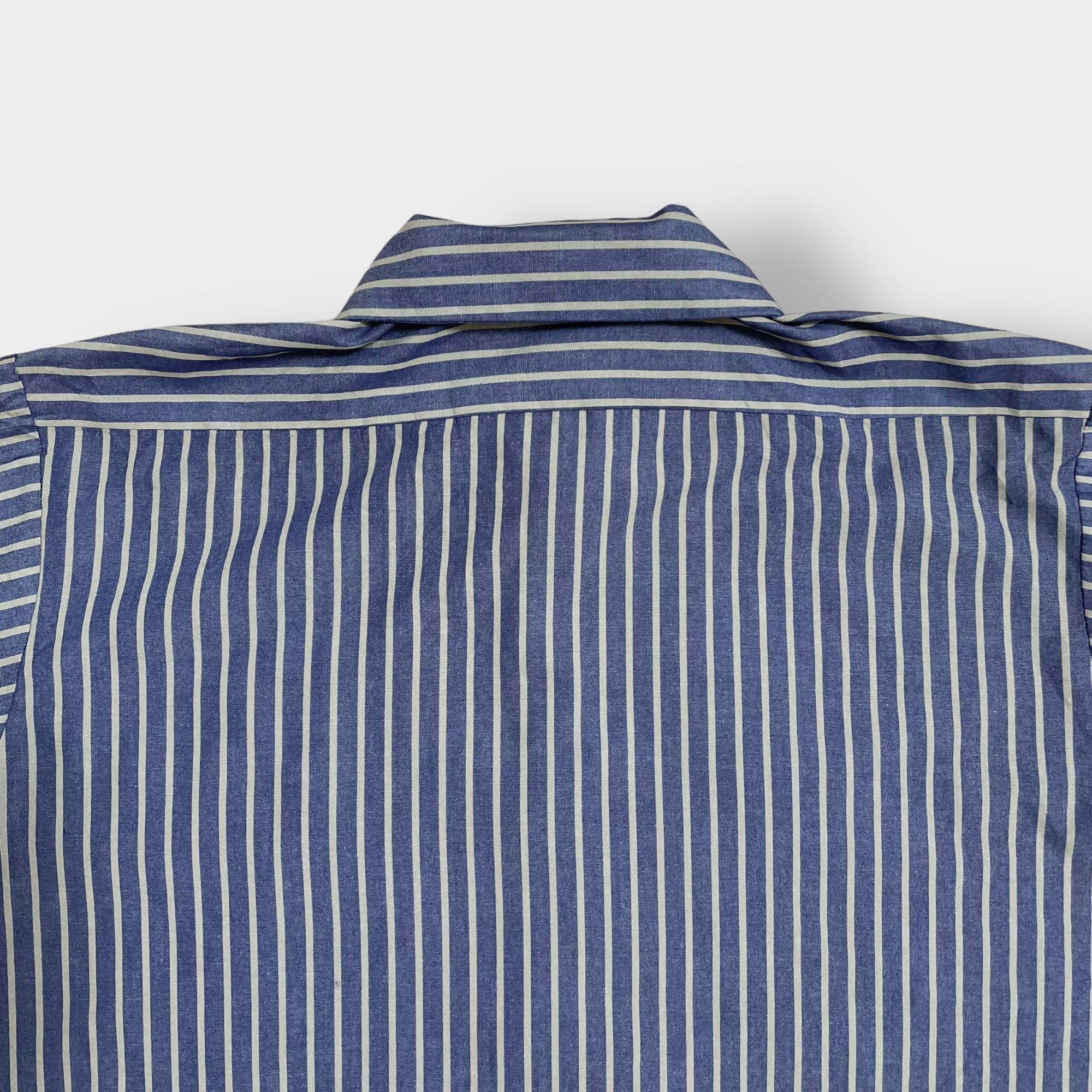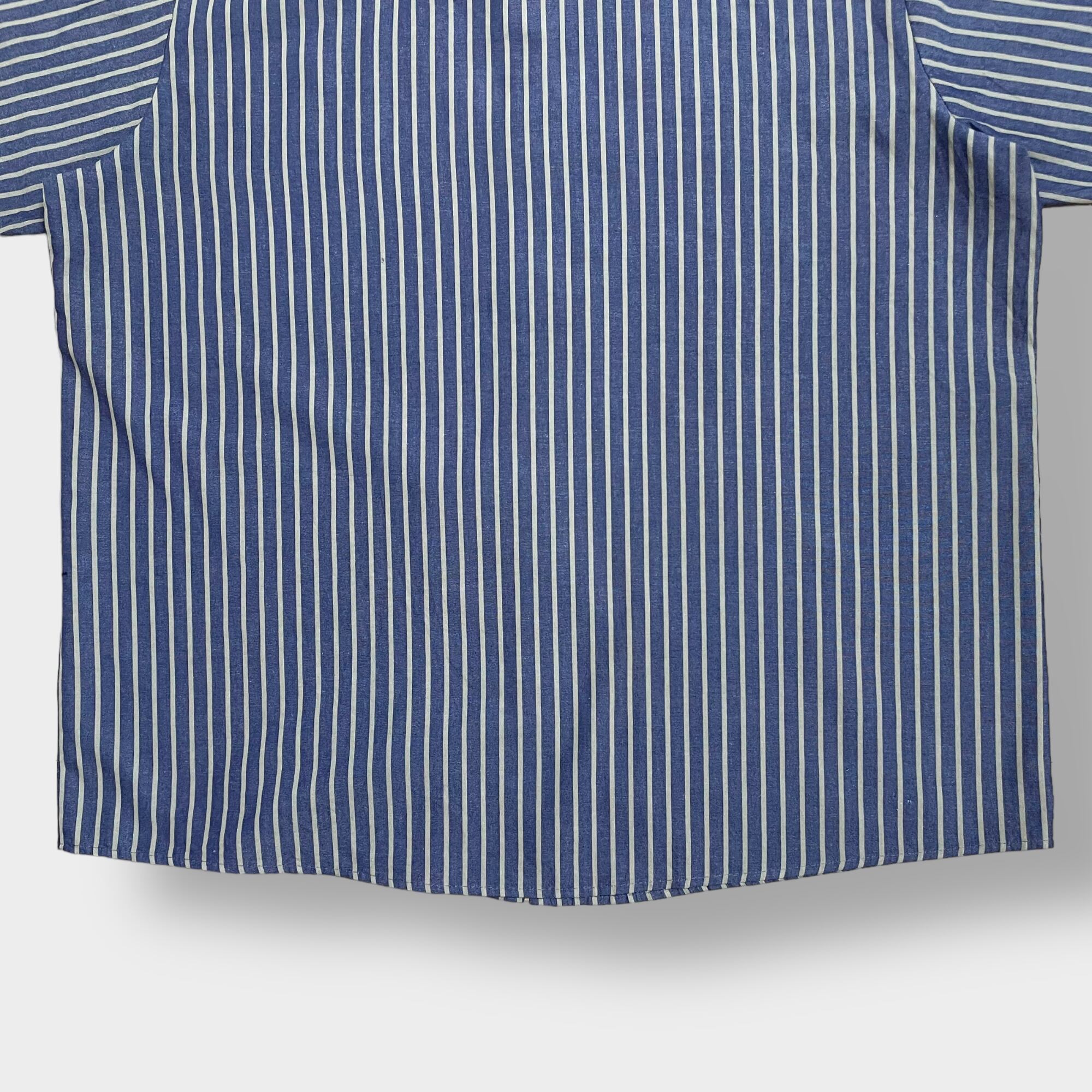 ストライプ柄で両胸ワッペン付き、サイズ表記はXLのビッグサイズです。下部に実寸を掲載しておりますのでご参考ください。