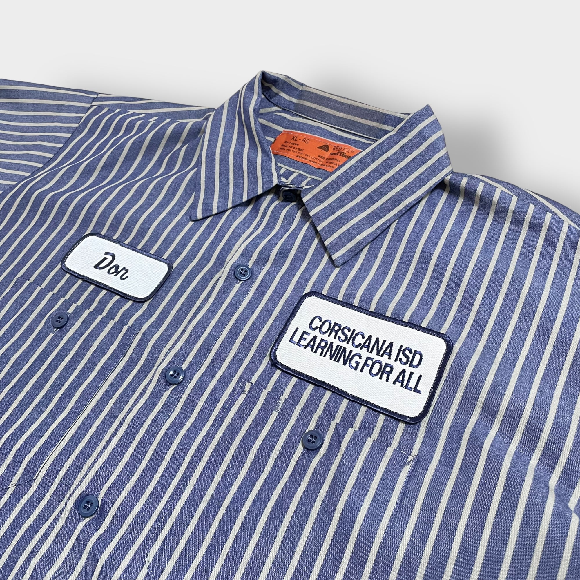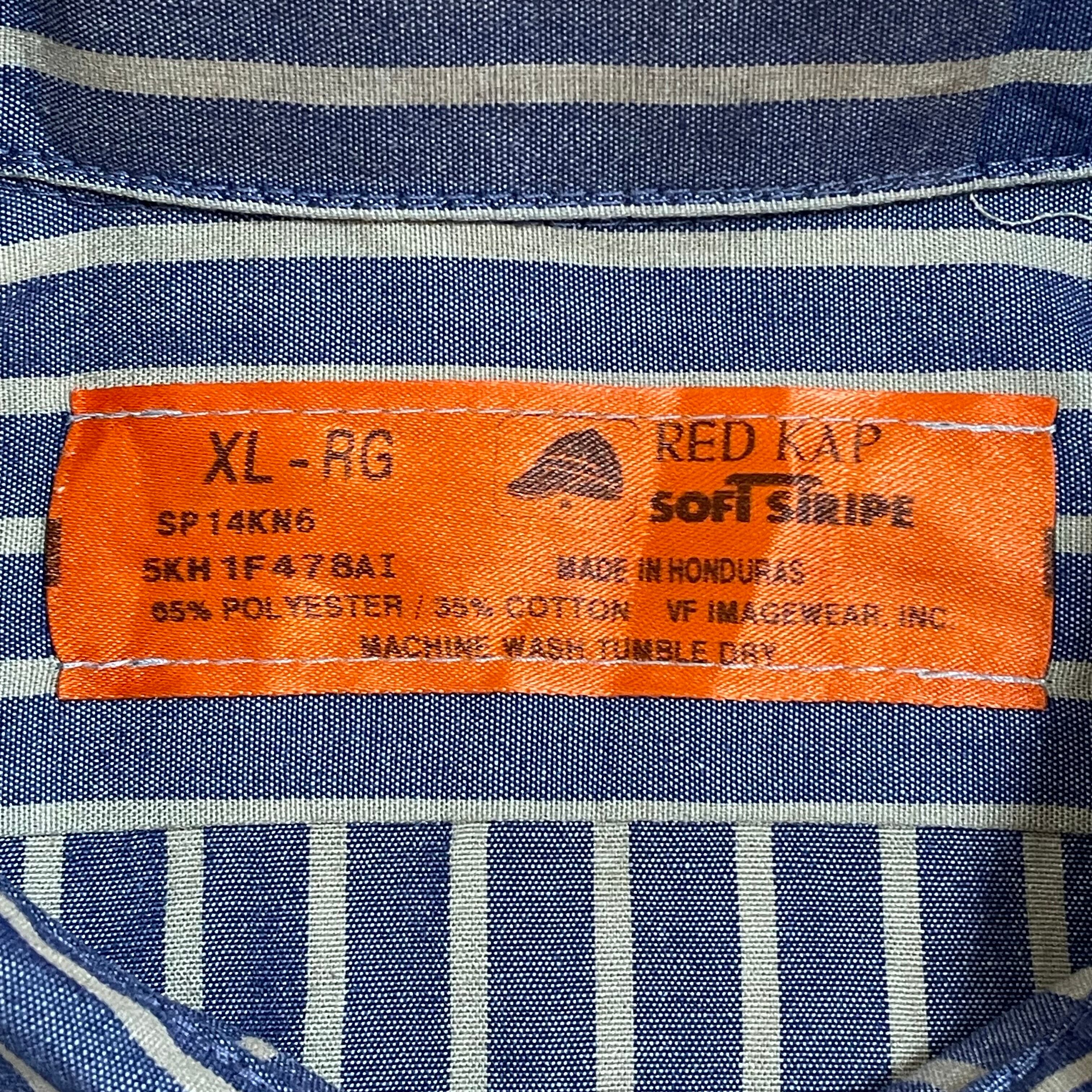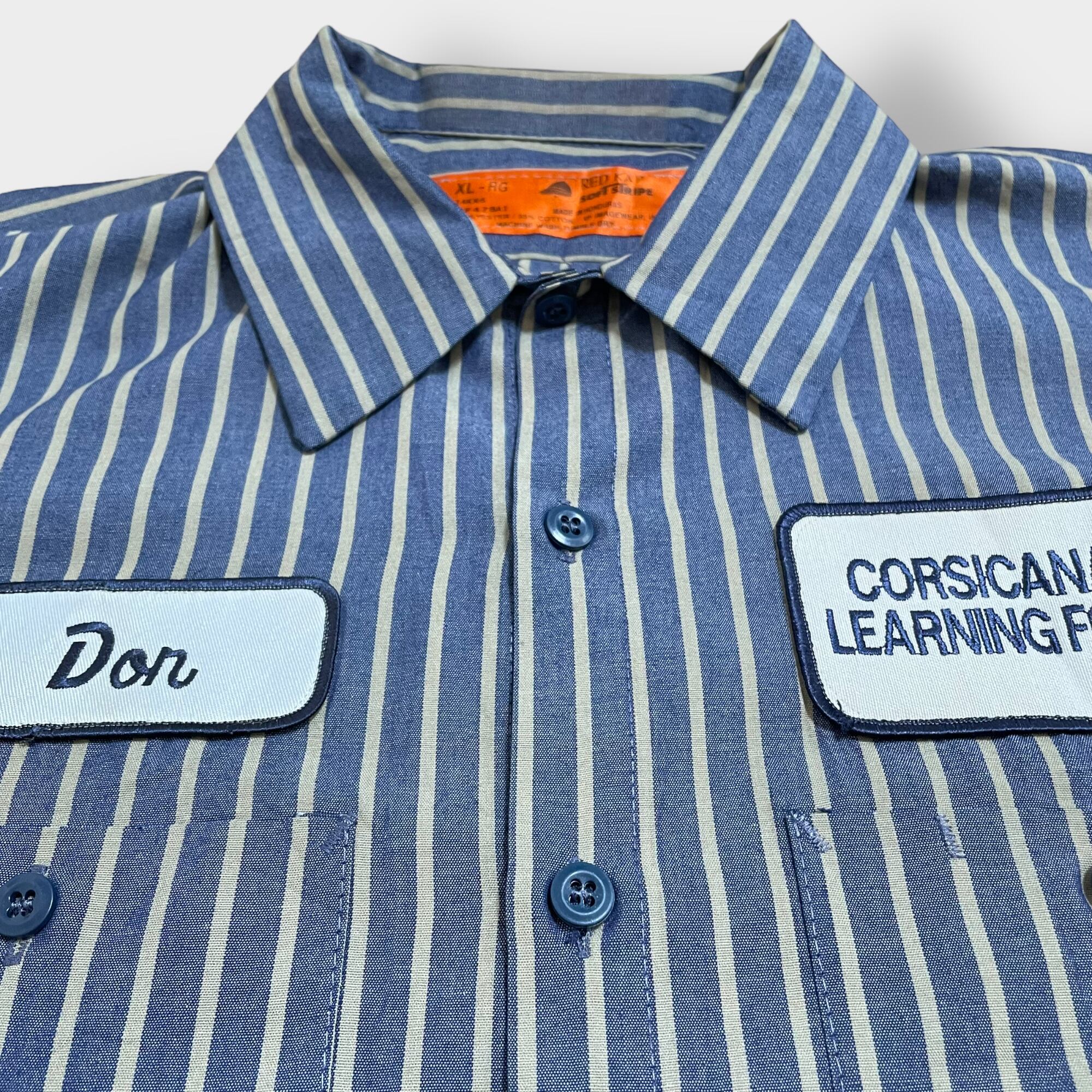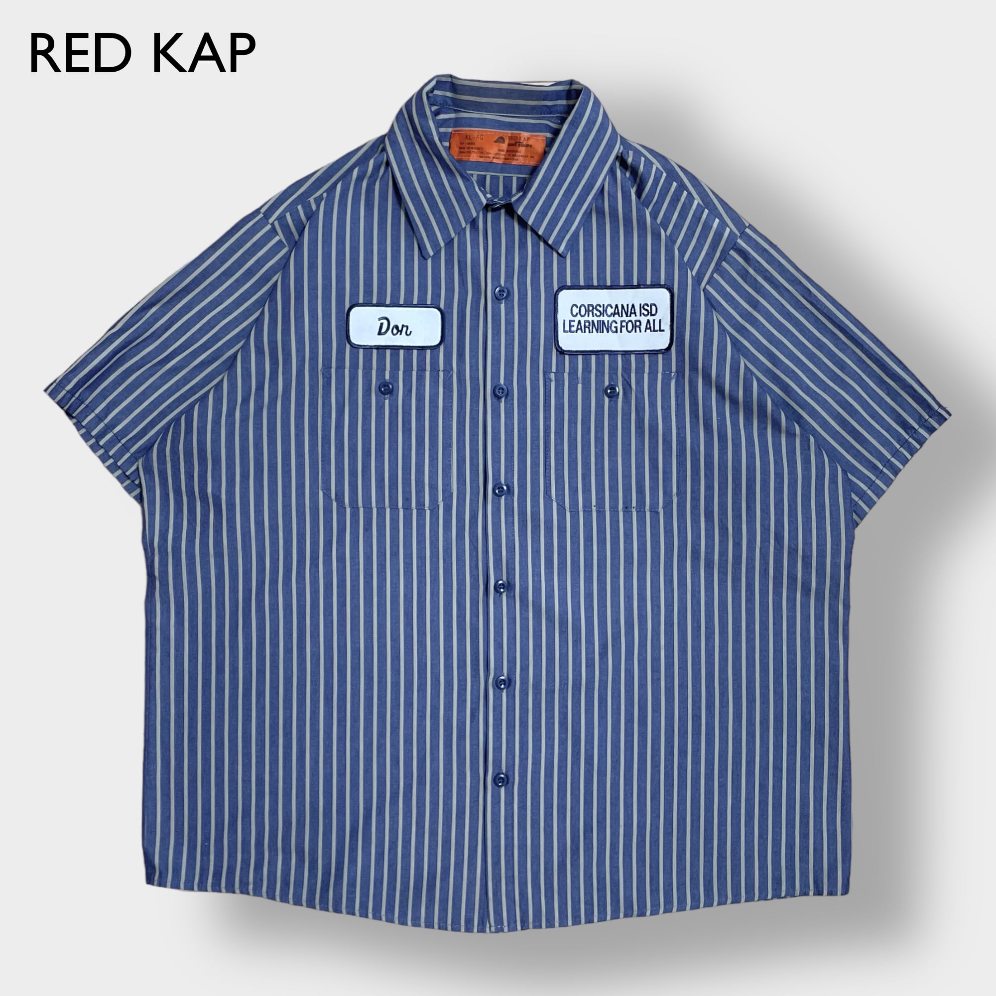 【RED KAP】半袖シャツ ワークシャツ ストライプ ワッペン X-LARGE ビッグサイズ ワーク系 レッドキャップ US古着