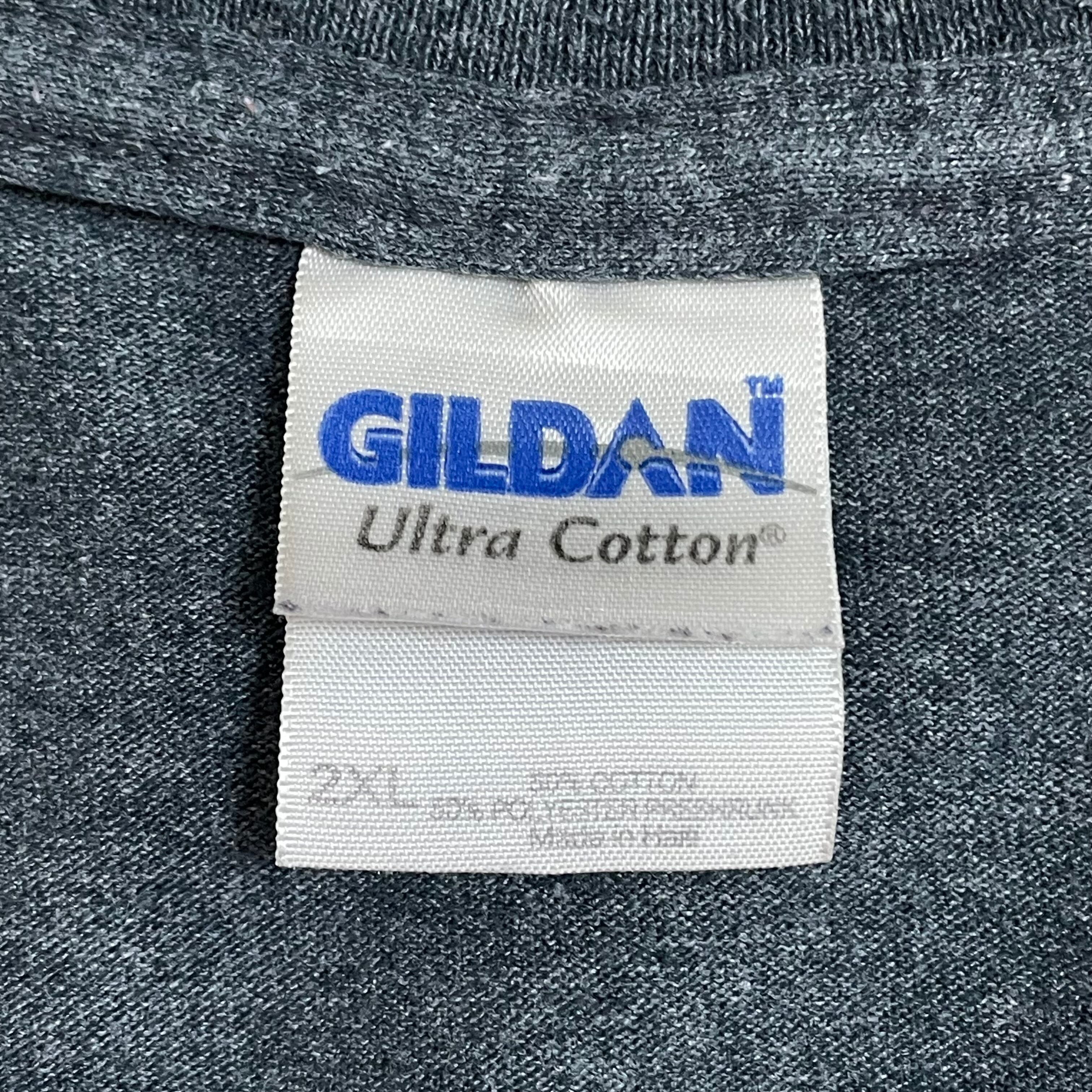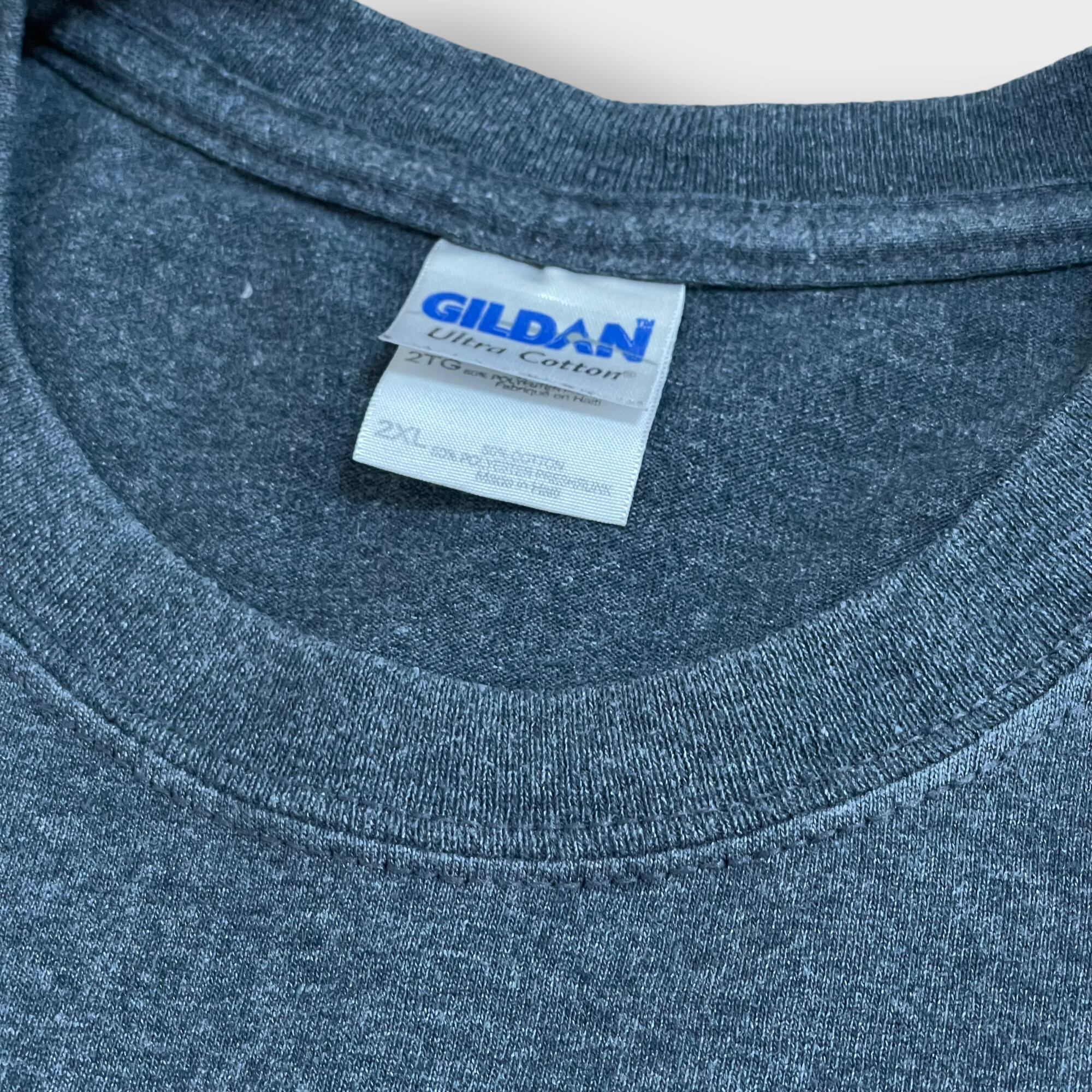 ボディはギルダン、サイズ表記は2XLのビッグサイズ、実寸は下部に掲載しておりますのでご参考ください。