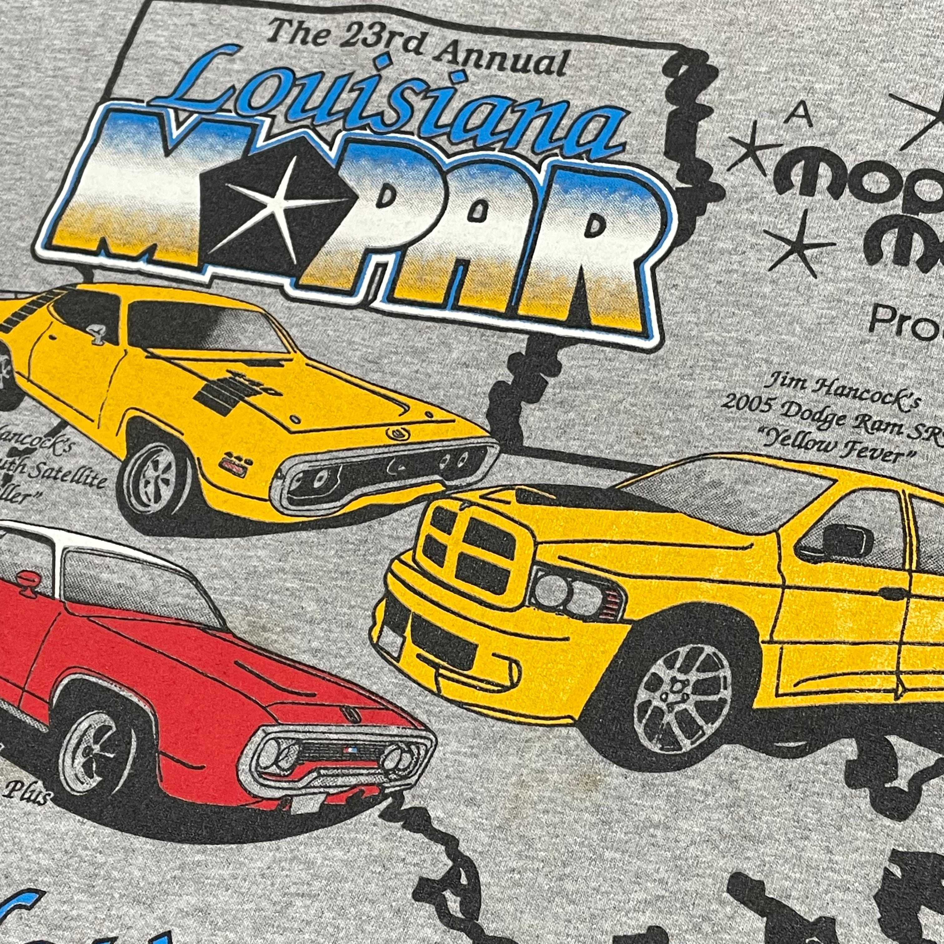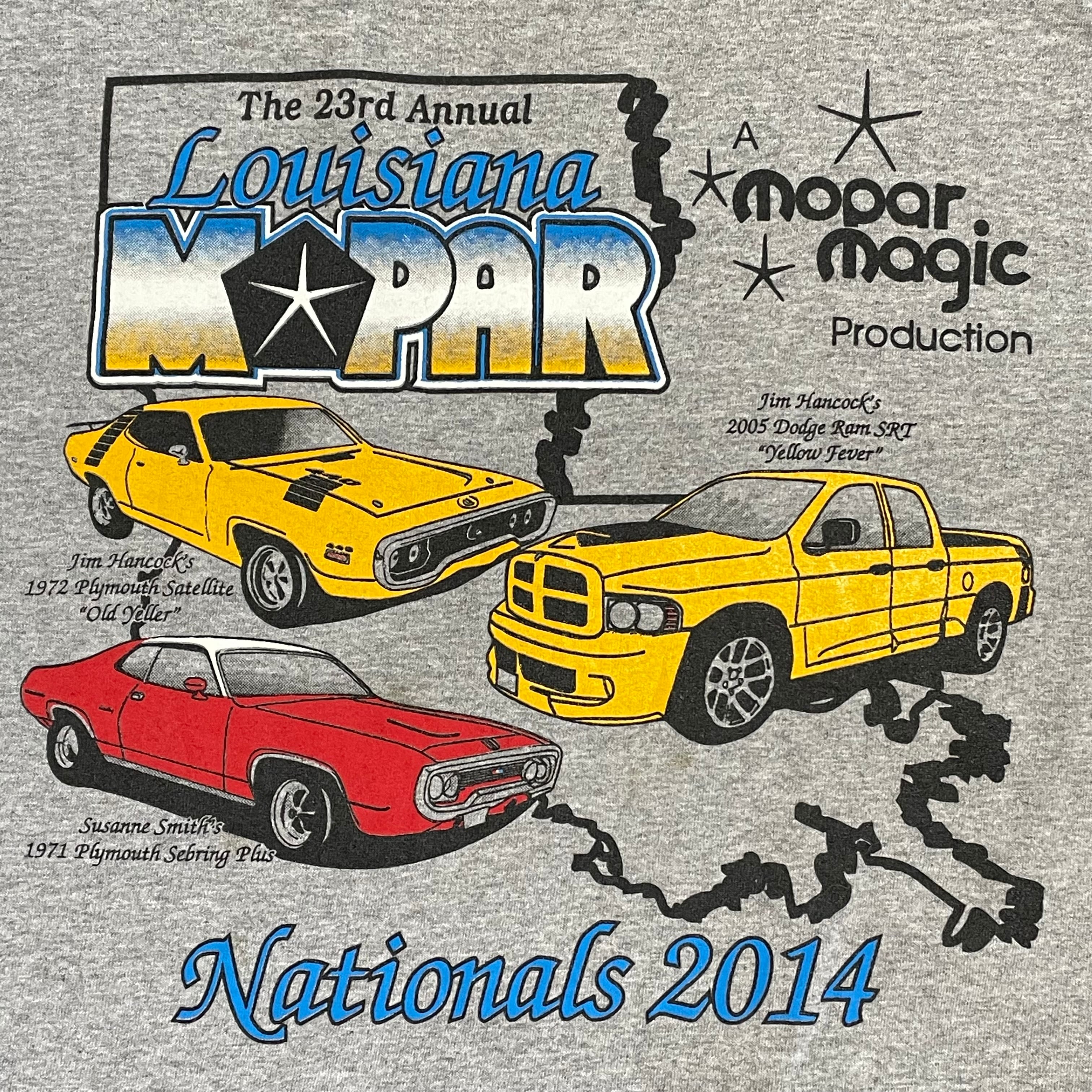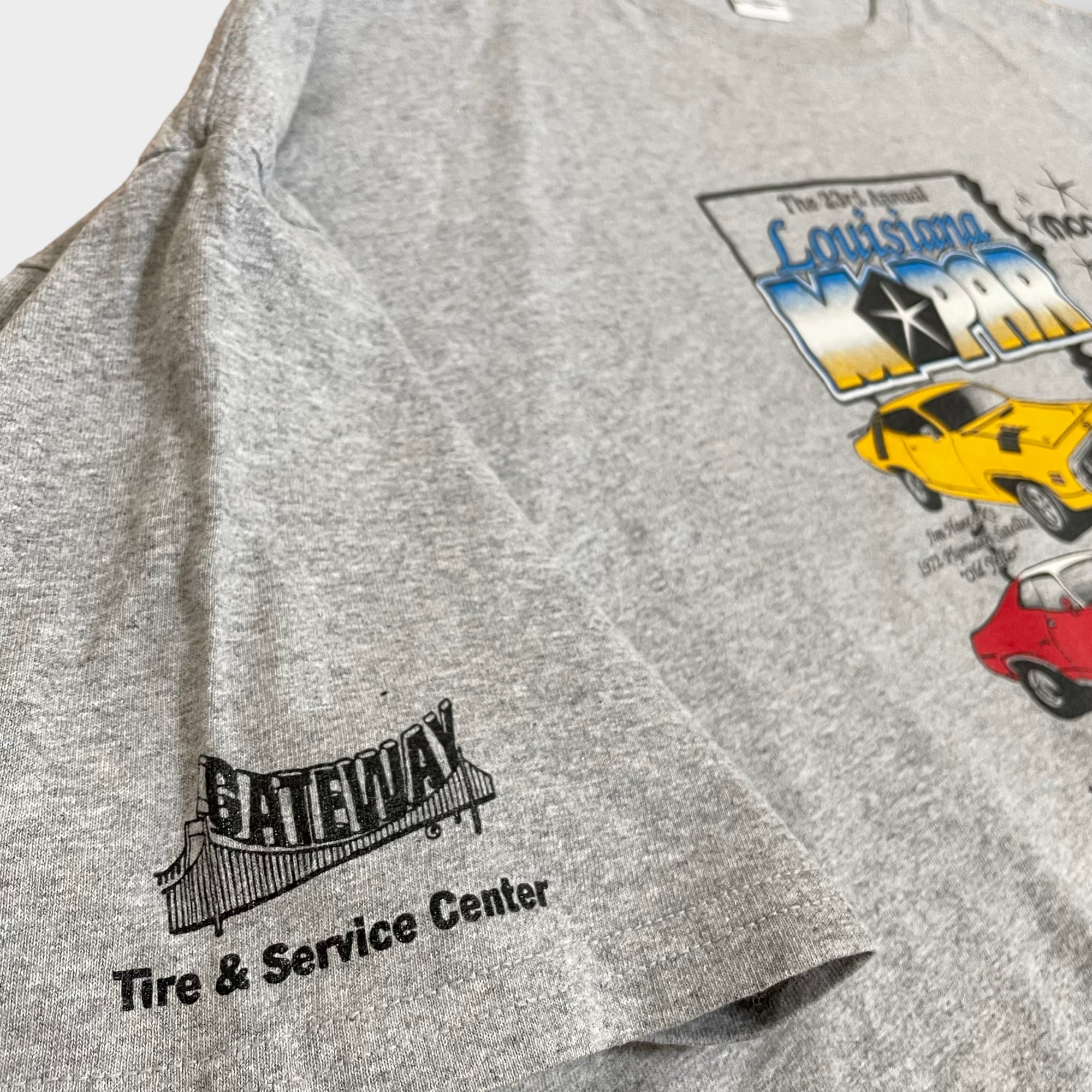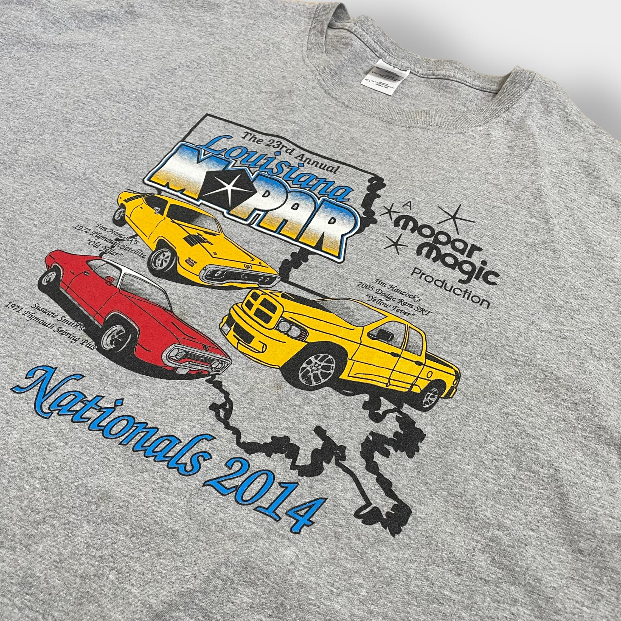 【GILDAN】4XL ビッグシルエット 企業系 店舗 ショップ ロゴ 車 イラスト Tシャツ プリント バックプリント Louisiana mopar magic 袖ロゴ 半袖 夏物 us古着