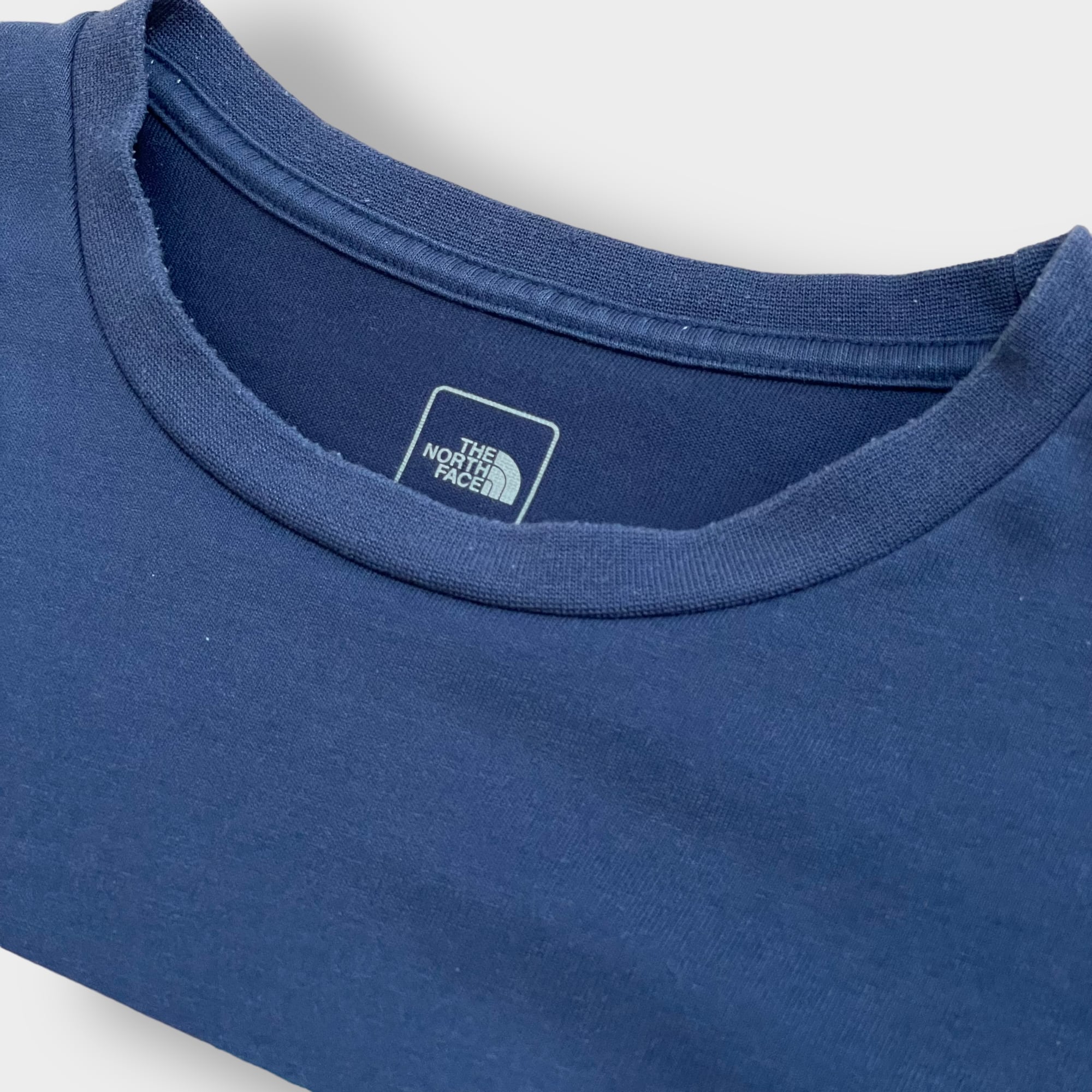 【THE NORTH FACE】ボックスロゴ プリント Tシャツ バッグロゴ ハーフドーム LARGE ネイビー アウトドア ノースフェイス 半袖 夏物 US古着