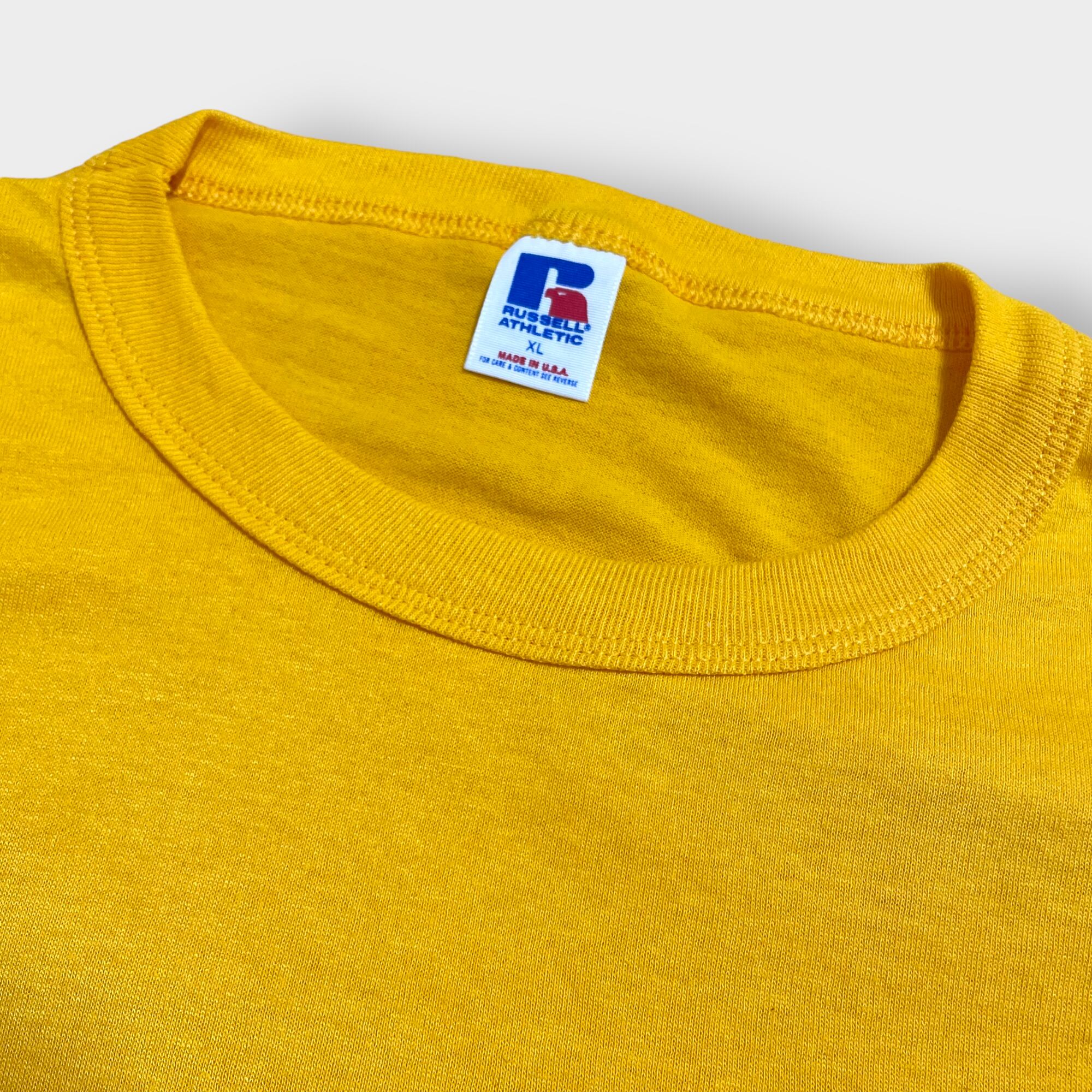 【Russell】90s USA製 無地 Tシャツ プレーン XL ビッグサイズ シングルステッチ 半袖 イエロー US古着