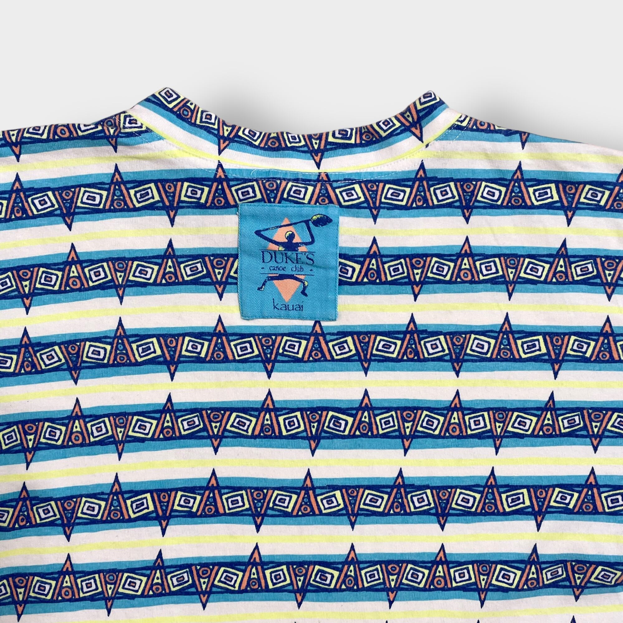 【Crazy Shirts】90s USA製 ロゴ 総柄 オールパターン Tシャツ クレイジーシャツ ハワイ レストラン Duke's Kauai 半袖 us古着