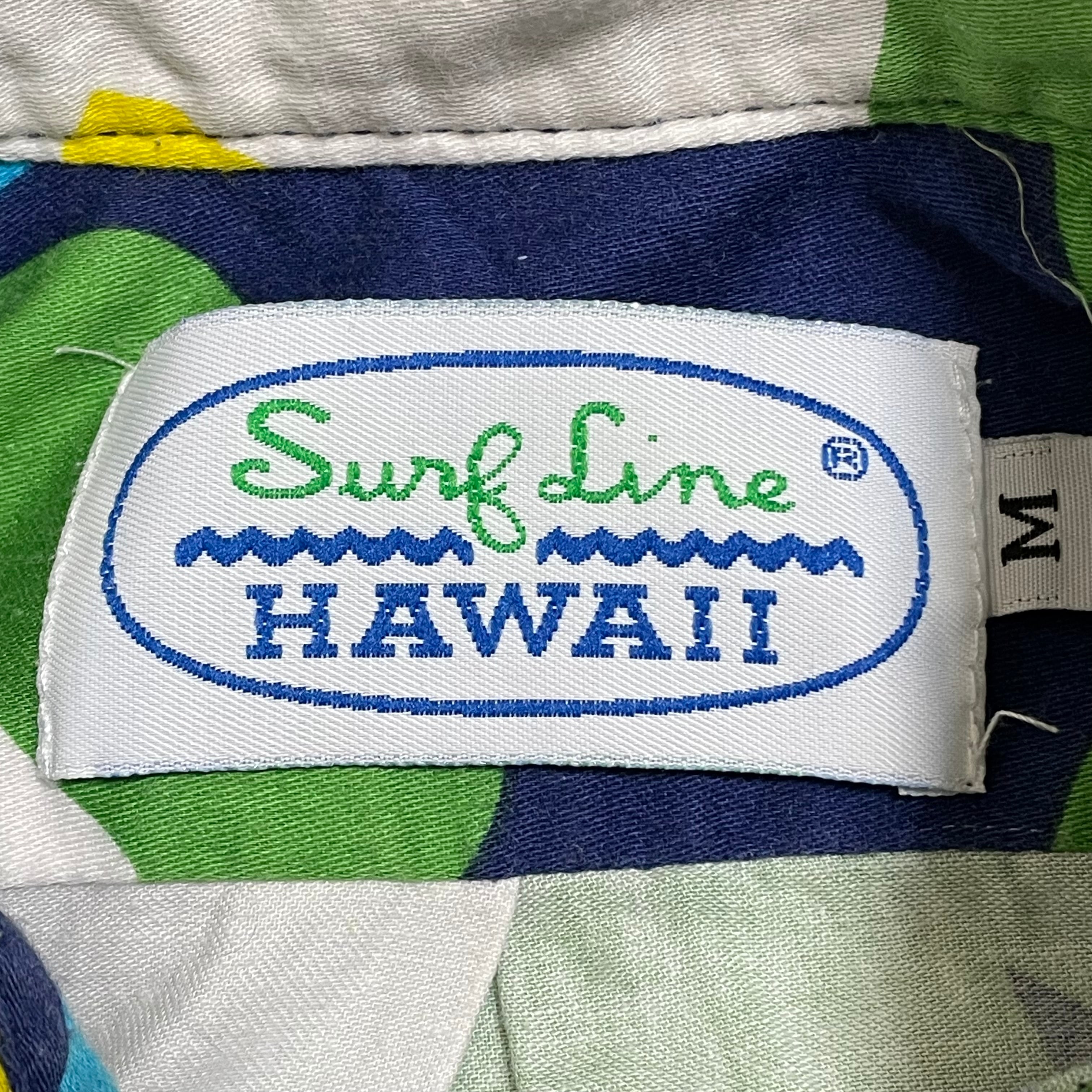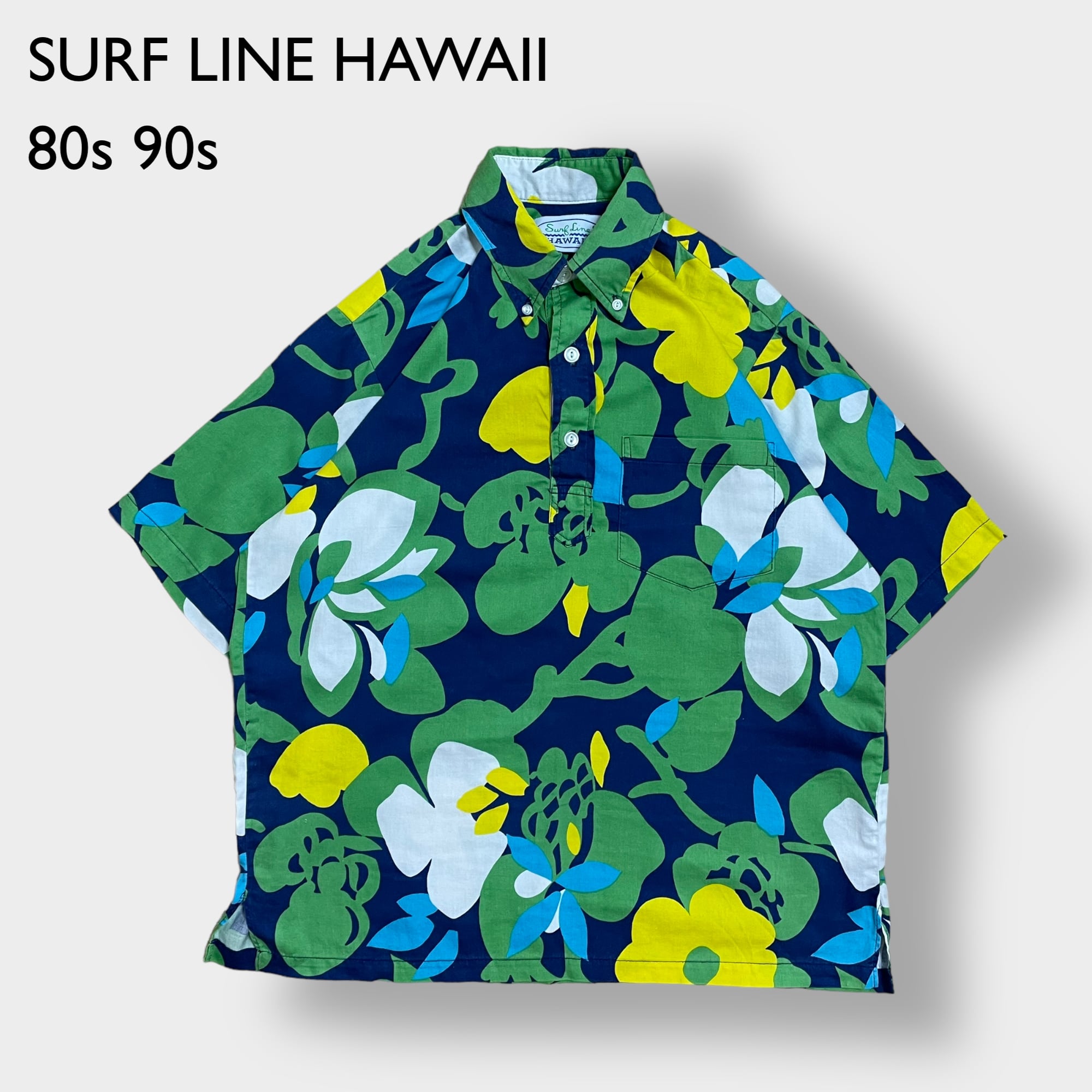 【SURF LINE HAWAII】80s 90s USA製 アロハシャツ ハワイアンシャツ ハーフボタン シングルステッチ ボタンダウン 半袖 柄物 フラワー リーフ M サーフラインハワイ ヴィンテージ US古着