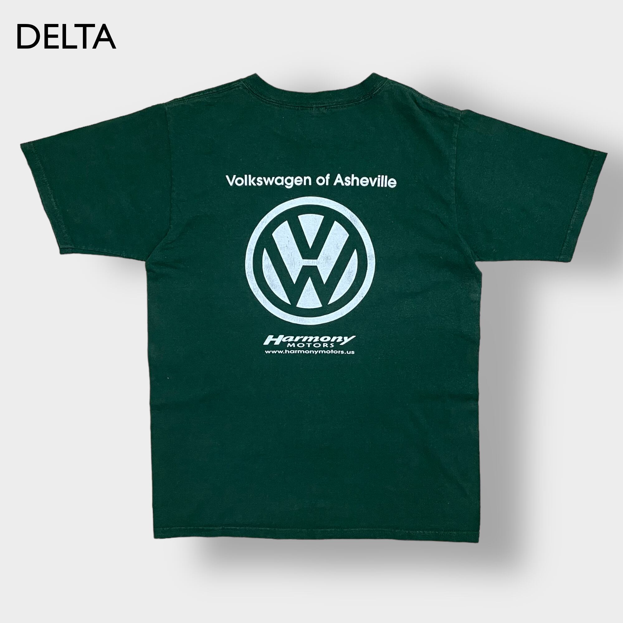 【DELTA】USA素材 企業系 フォルクスワーゲン ロゴ Tシャツ バックプリント 自動車販売会社 volkswagen ディープグリーン youth XL 半袖 us古着