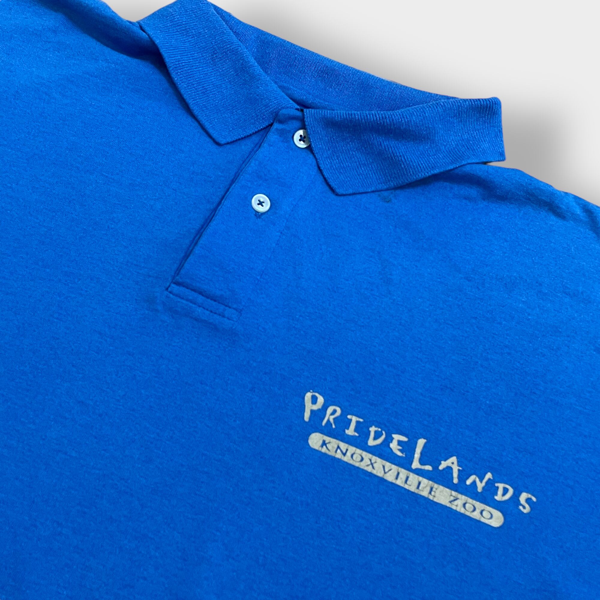 【FRUIT OF THE LOOM】90s ポロシャツ ナックスビル動物園 袖ロゴ ワンポイント XL ビッグサイズ ブルー US古着