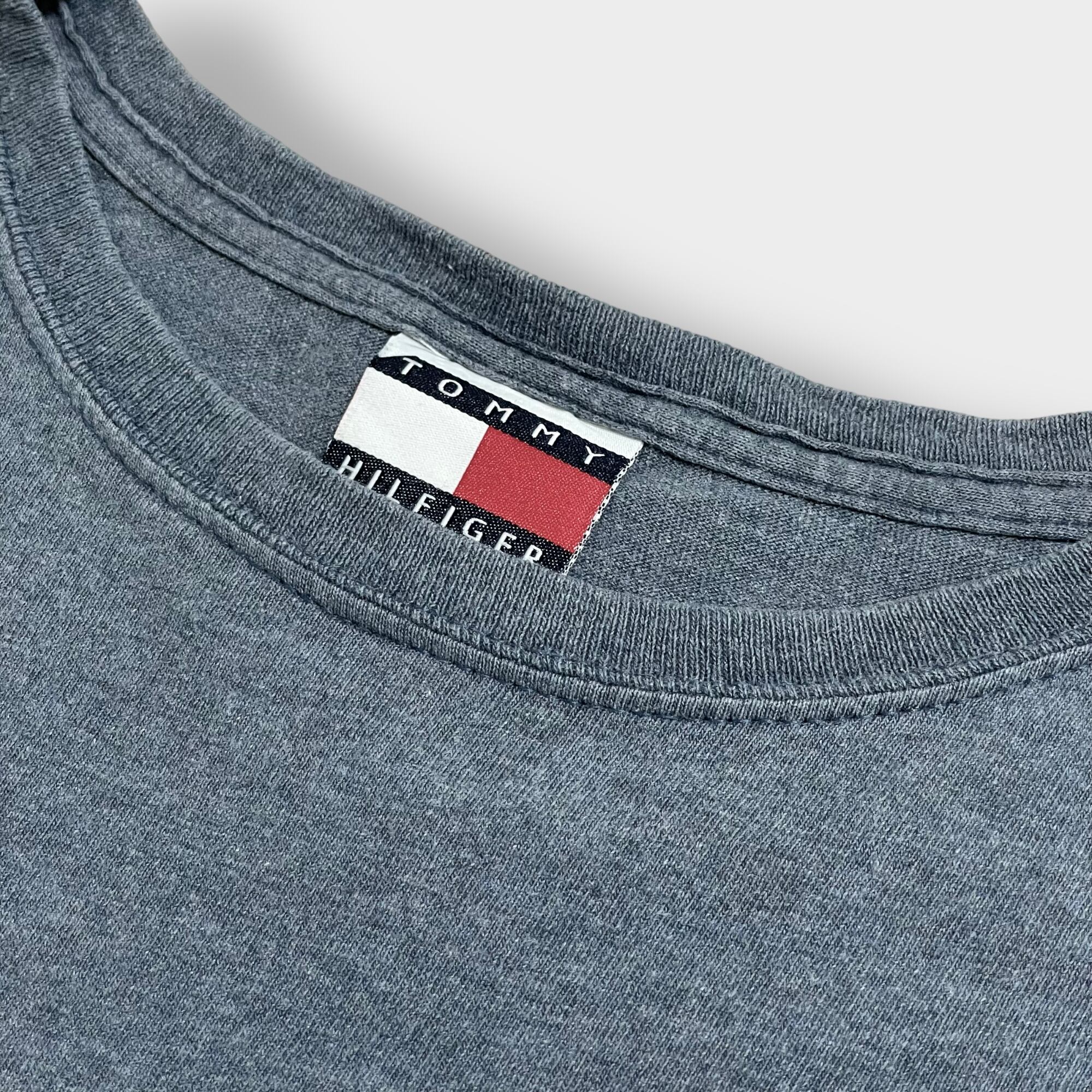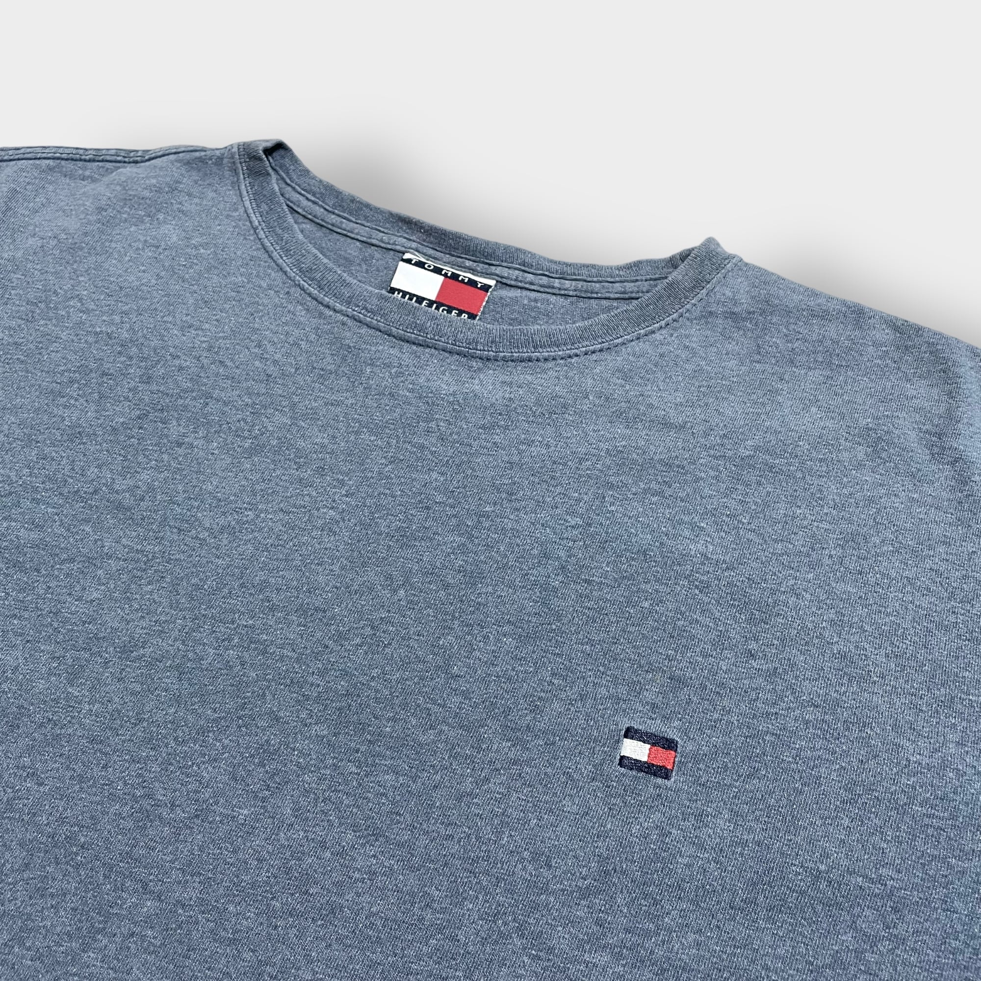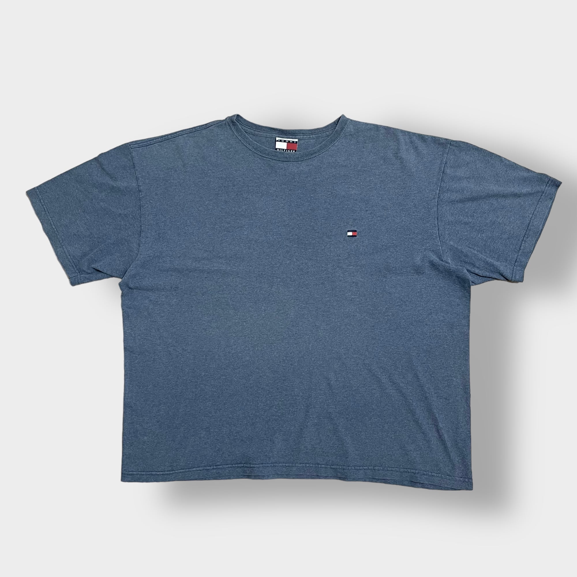 【Tommy Hilfiger】90s USA素材 旧タグ フラッグタグ ワンポイント 刺繍ロゴ Tシャツ XL ワイドサイズ トミーヒルフィガー US古着