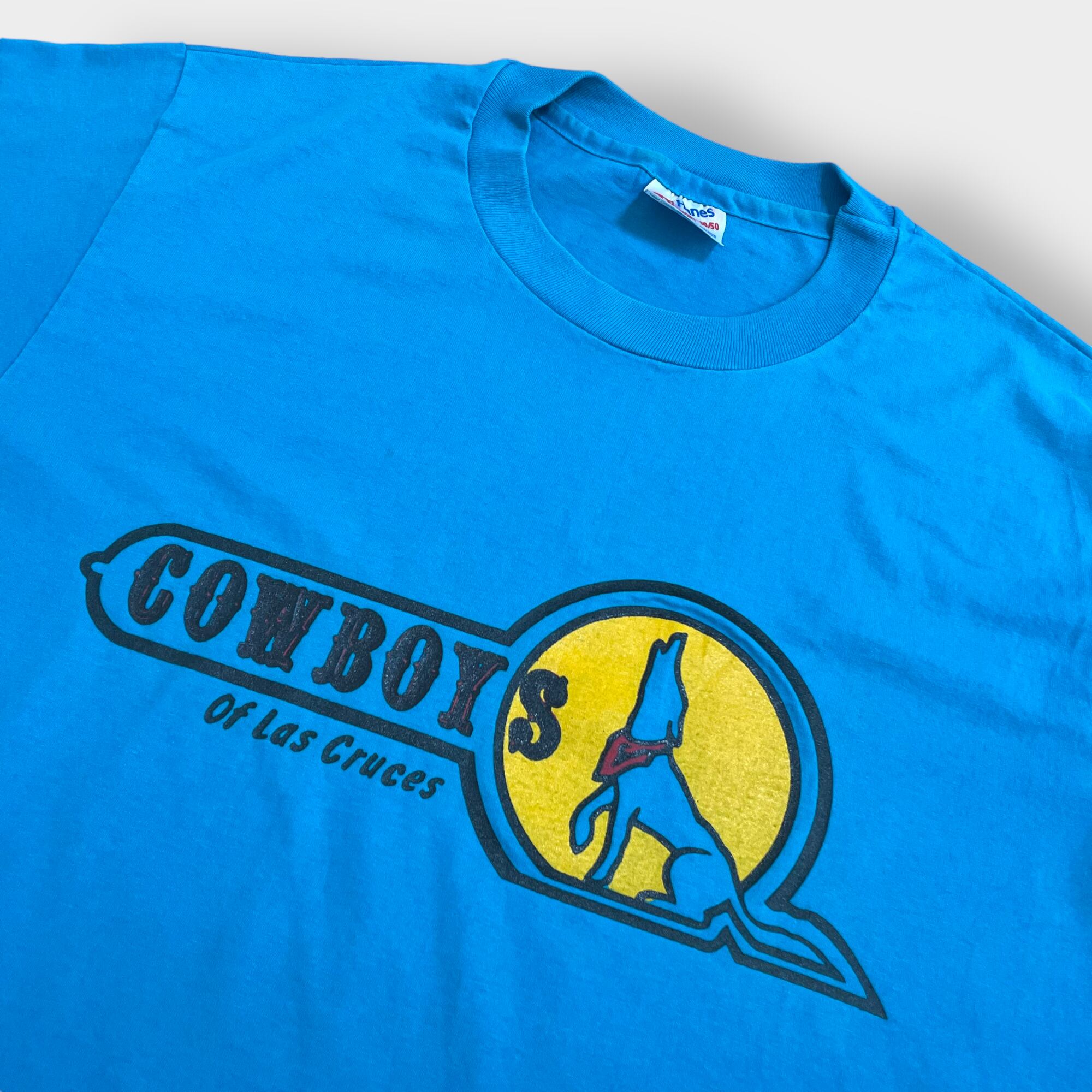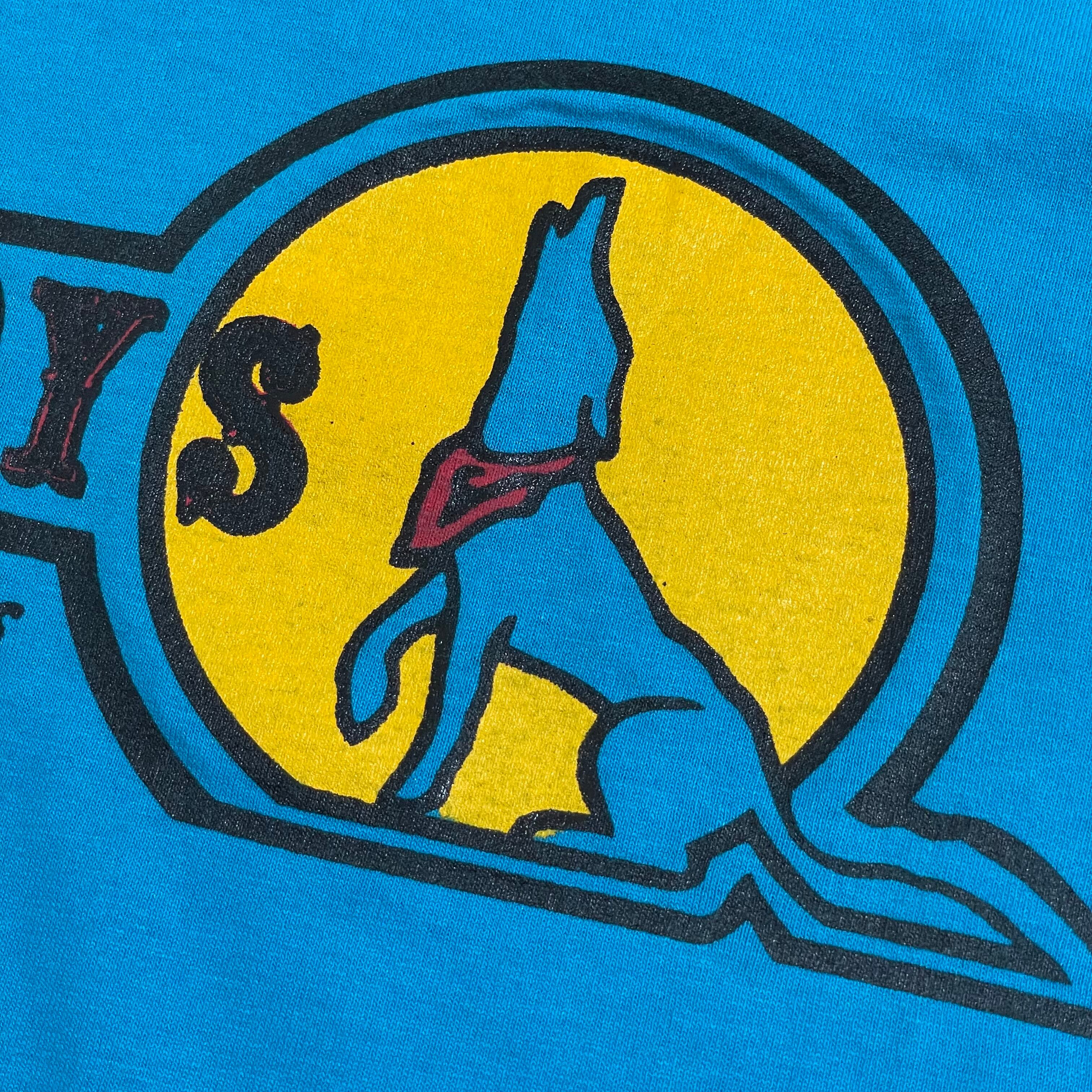 90s、USA製、シングルステッチ、COWBOYSのロゴに遠吠えする狼がプリントされた味のある一着です。