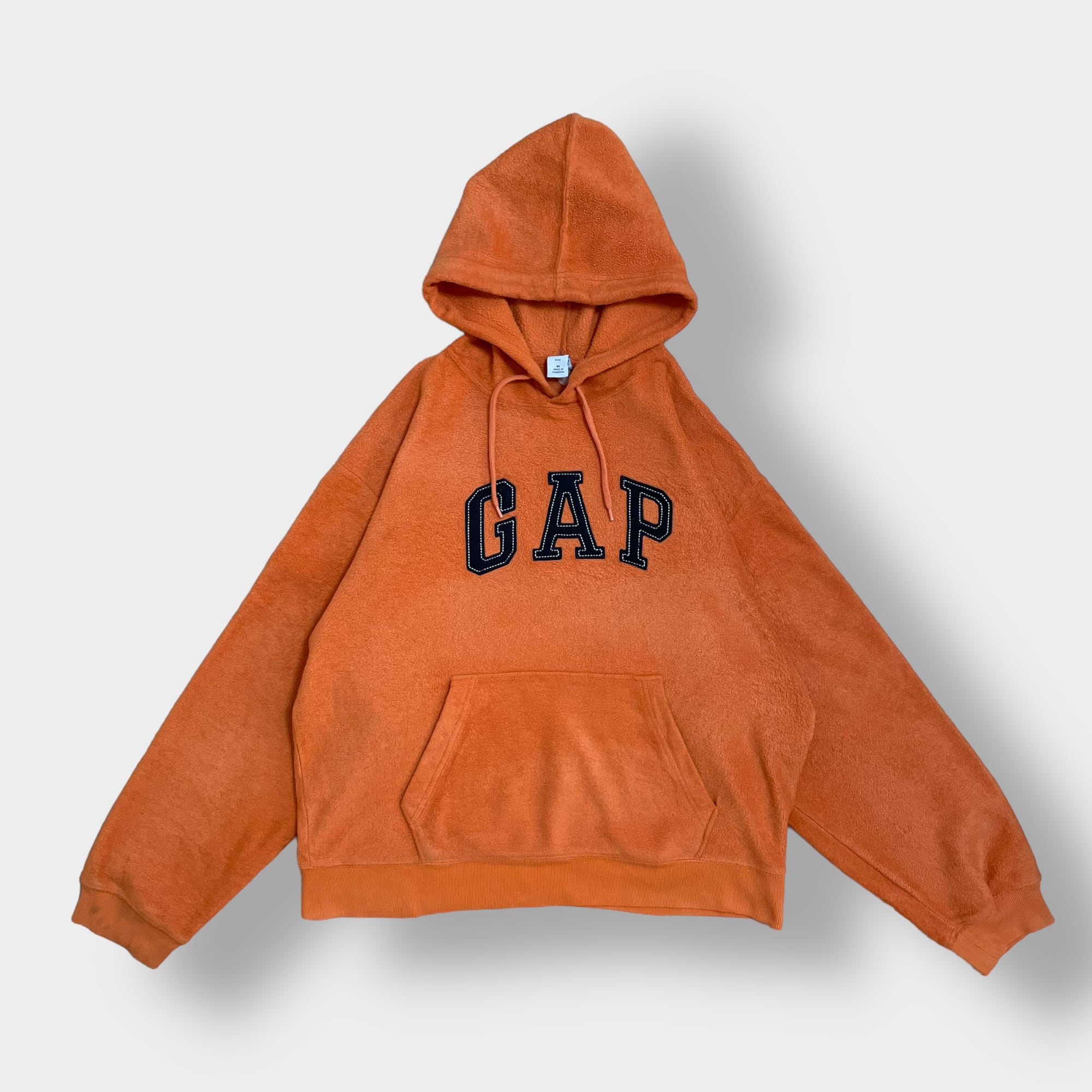 【GAP】パーカー プルオーバー 刺繍 ロゴ フーディー スウェット hoodie オレンジ 起毛 ギャップ US古着