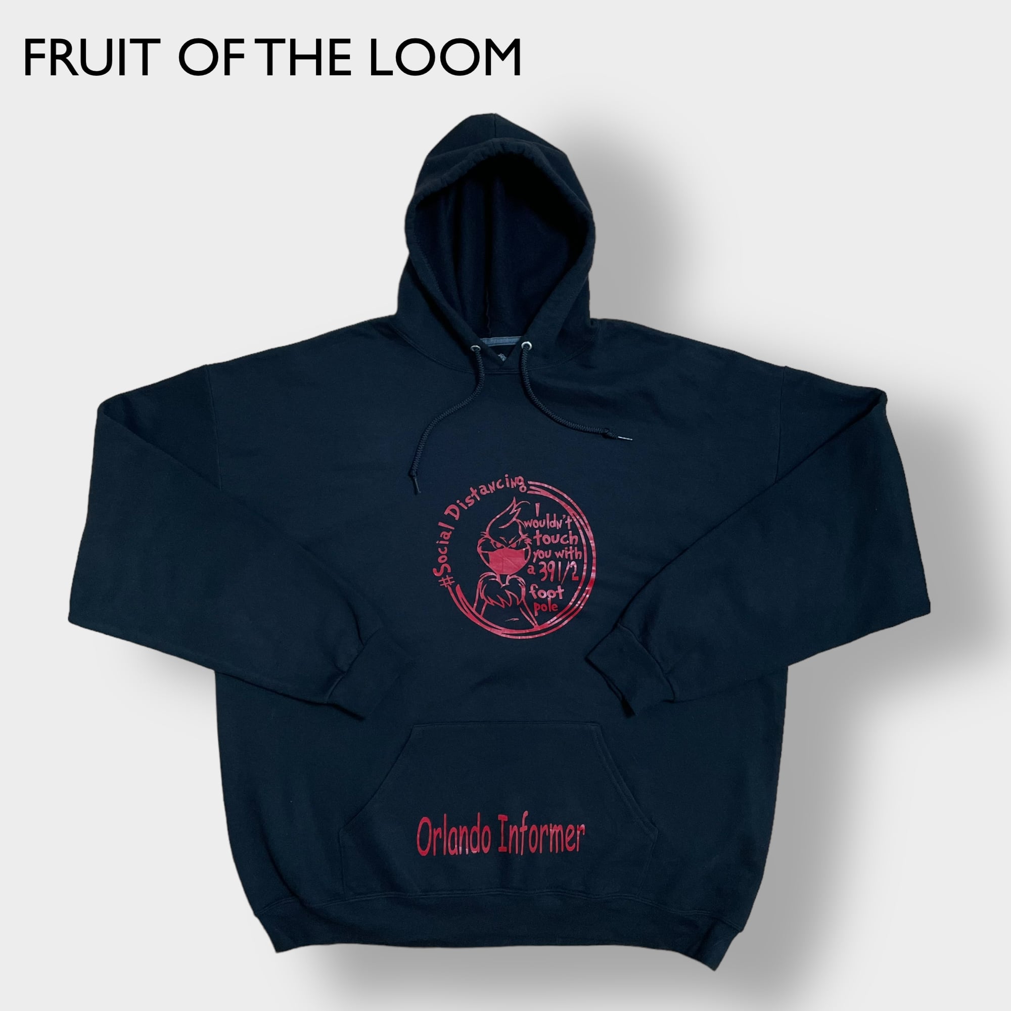 【FRUIT OF THE LOOM】2XL ビッグサイズ パーカー ロゴ プリント プルオーバー フーディー スウェット 黒 US古着