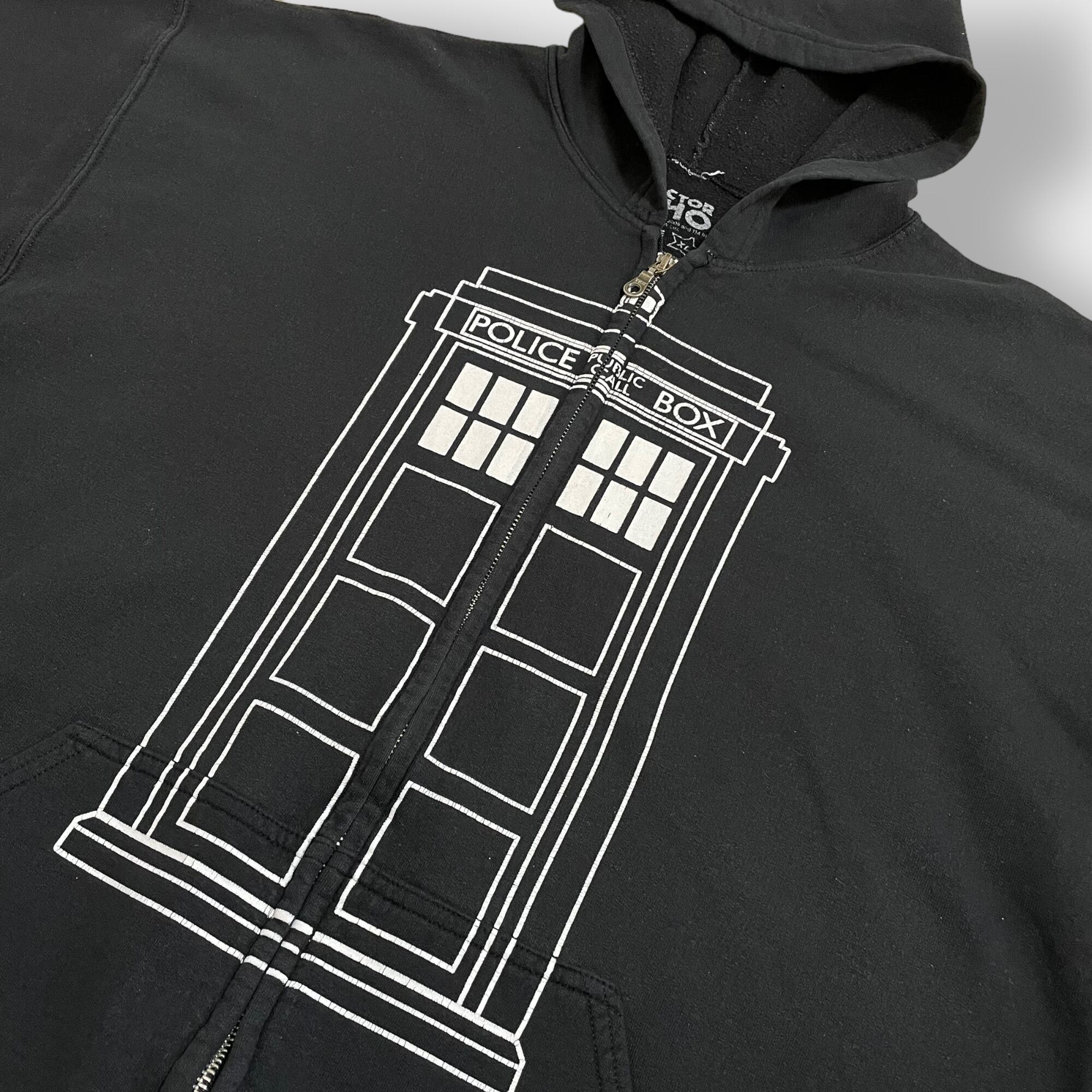【DOCTOR WHO】ドクターフー ジップアップ パーカー 海外ドラマ SFドラマ ロゴ プリント 電話ボックス イラスト us古着