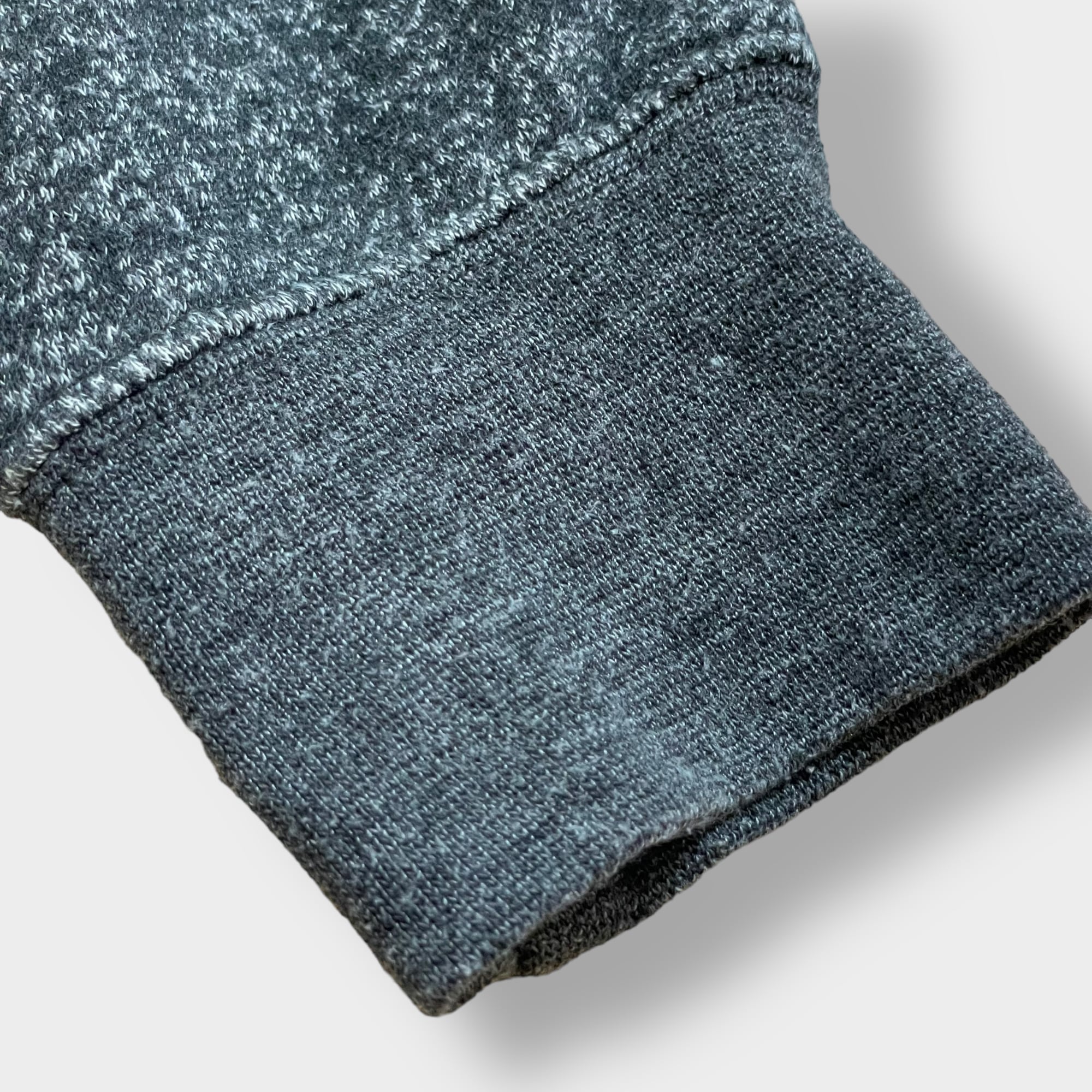 グレー、ダークグレー、ブラックのマルチカラー、ラグランスリーブ、胸にワンポイントの刺繍ロゴ。