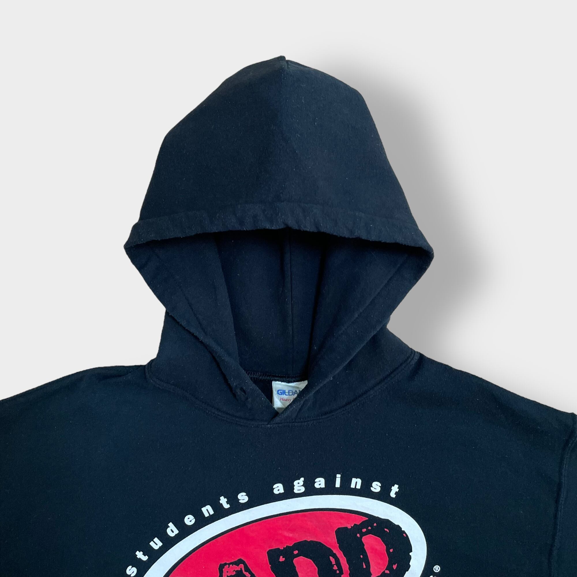 GILDAN プルオーバー パーカー SADD プリント ロゴ スウェット フーディー ブラック M us古着