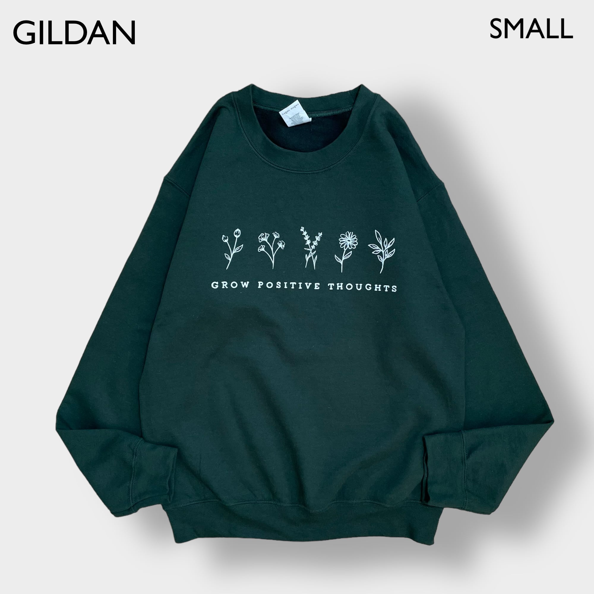 GILDAN スウェットシャツ トレーナー プリント S ディープグリーン クルーネック SWEATSHIRTS US古着