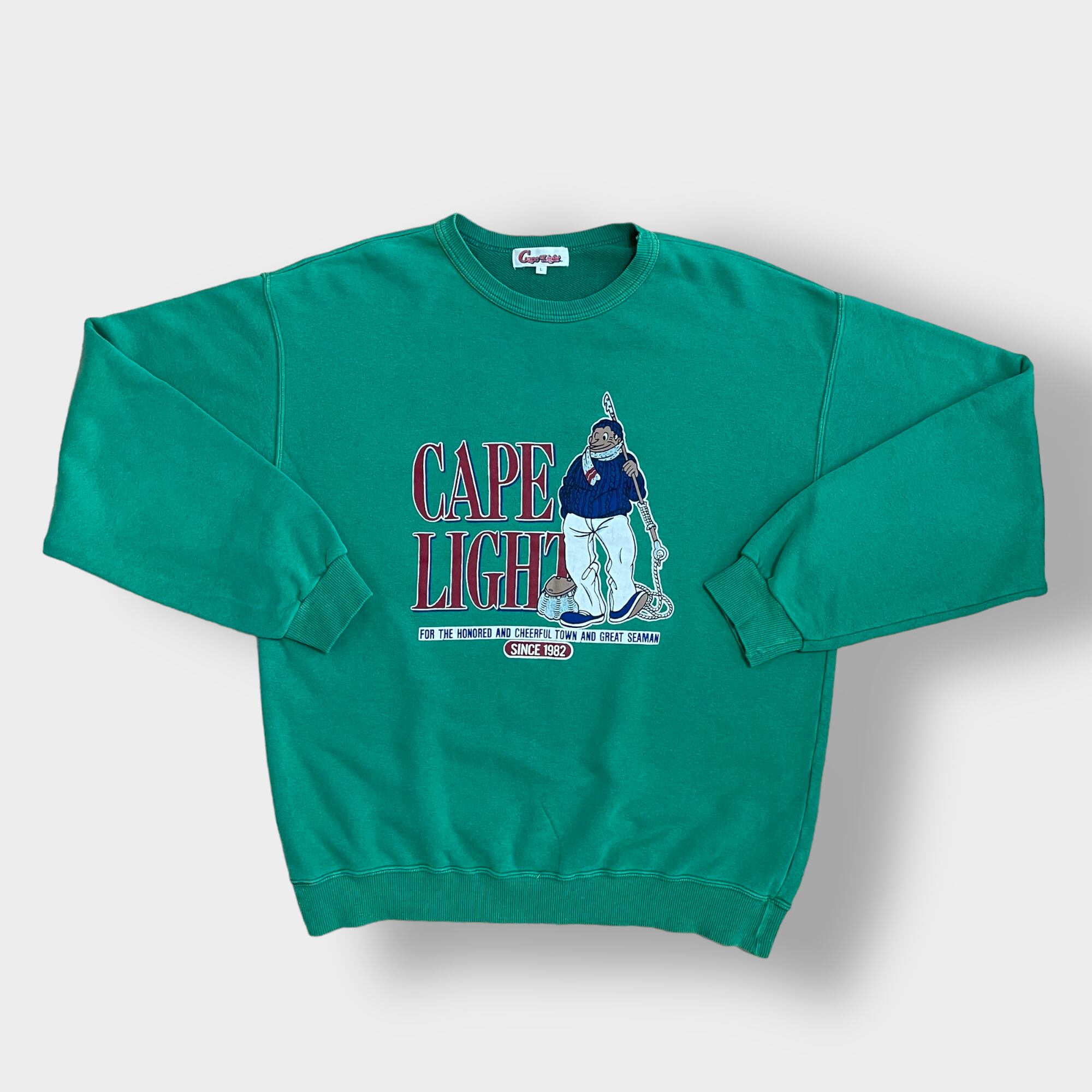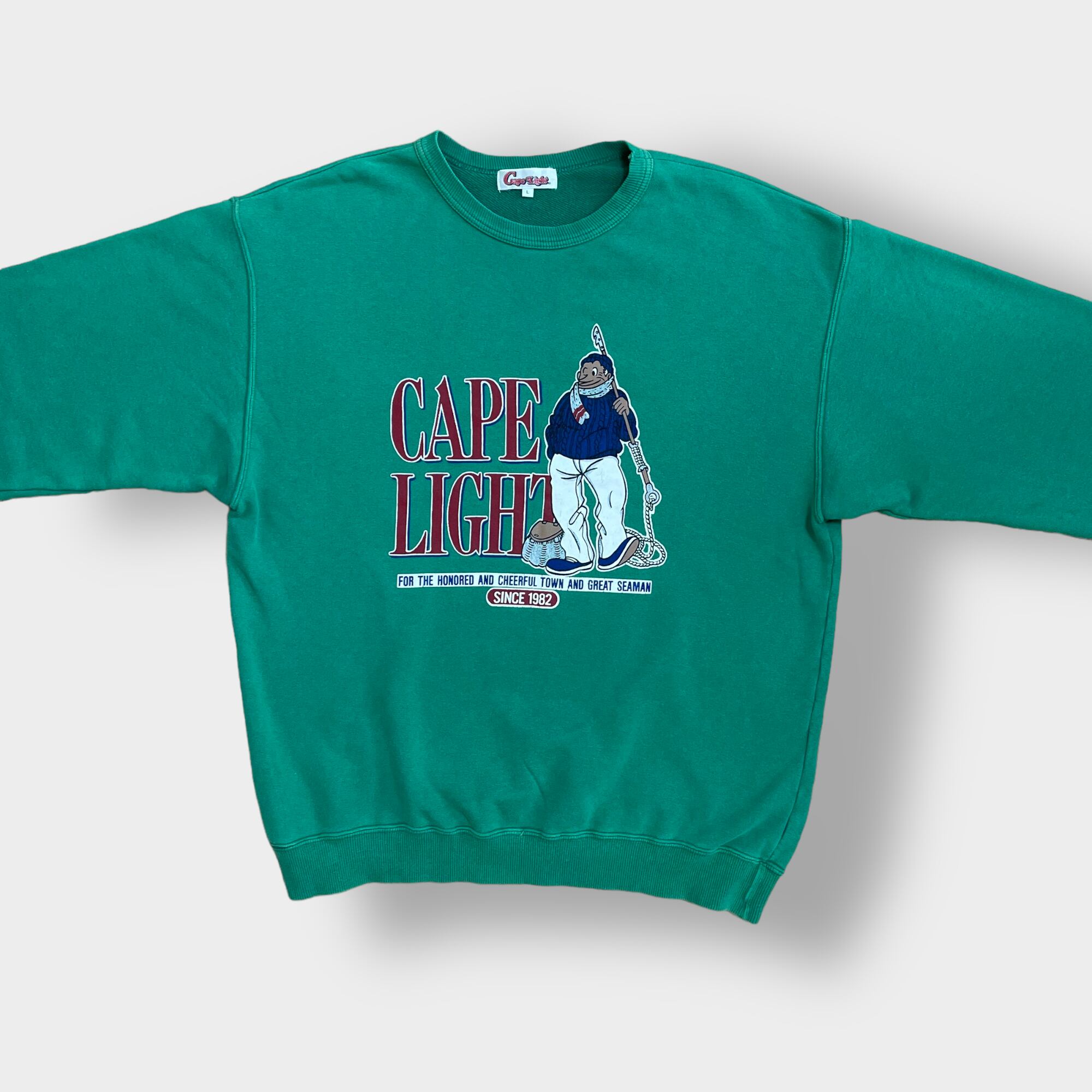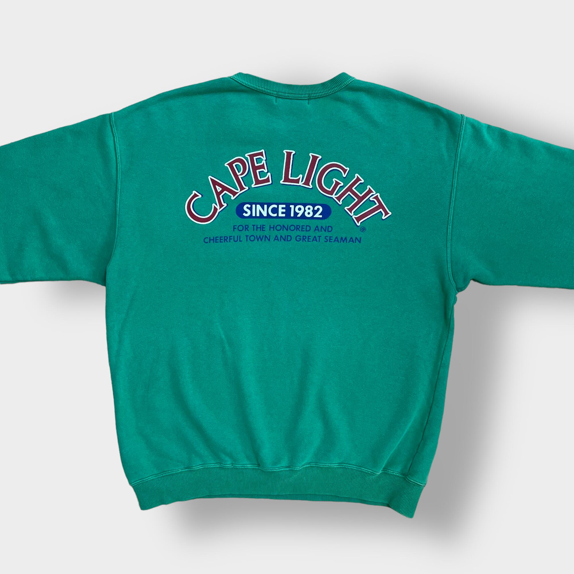 CAPE LIGHT 90s 日本製 スウェットシャツ トレーナー バックプリント L グリーン クルーネック 昭和レトロ ジャパニーズヴィンテージ SWEATSHIRTS 古着