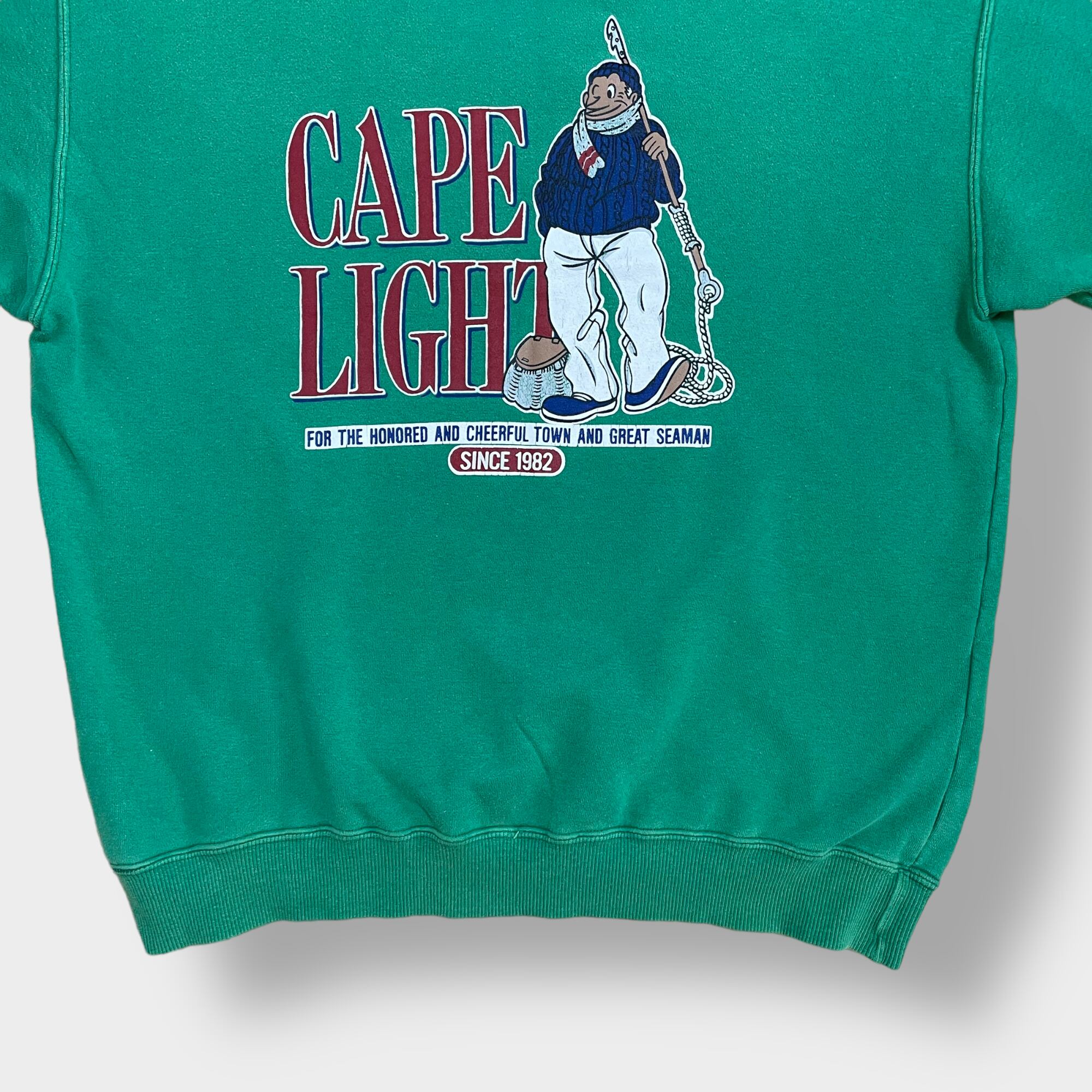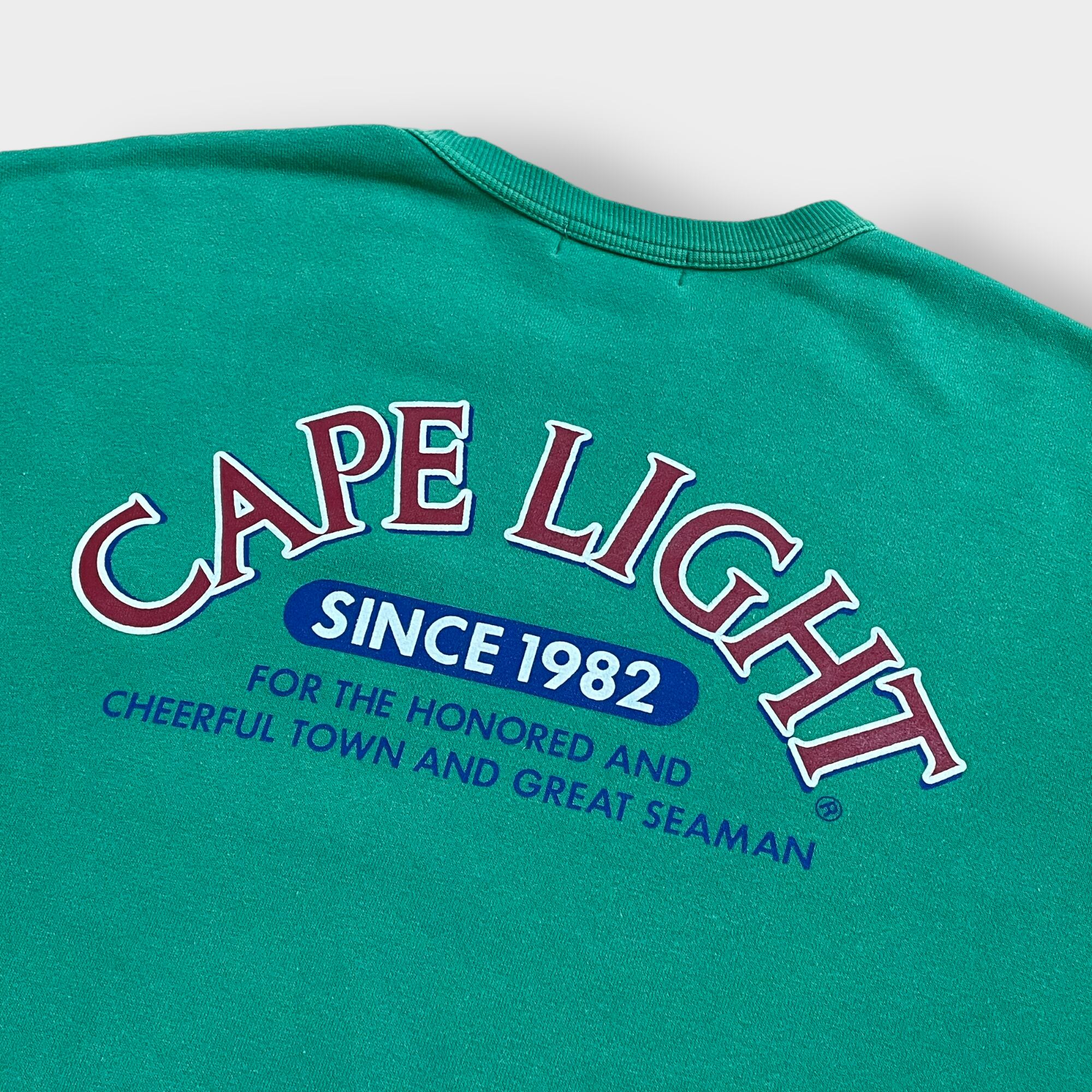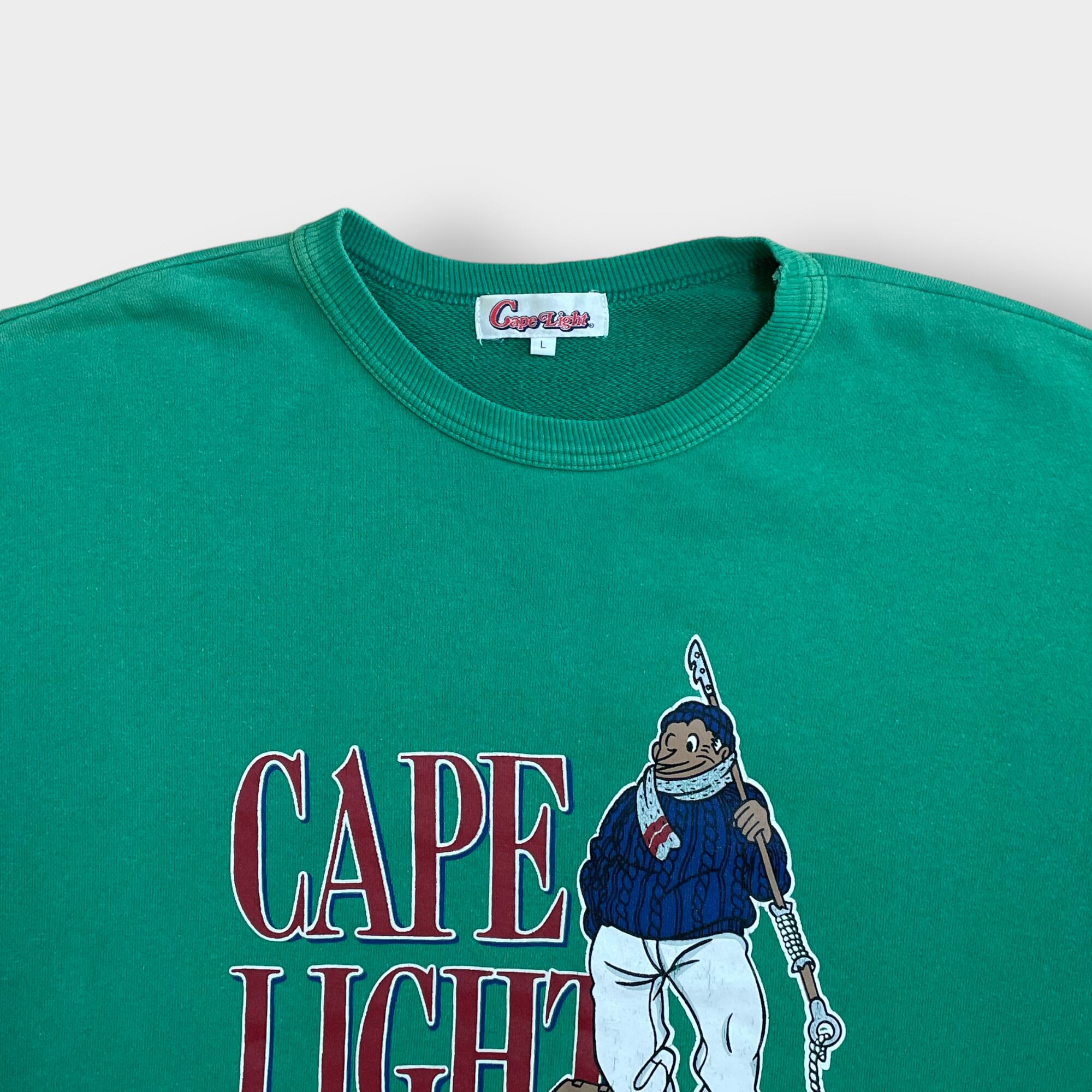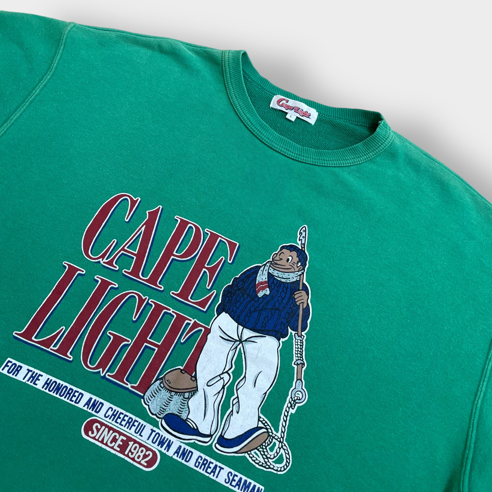 CAPE LIGHT 90s 日本製 スウェットシャツ トレーナー バックプリント L グリーン クルーネック 昭和レトロ ジャパニーズヴィンテージ SWEATSHIRTS 古着