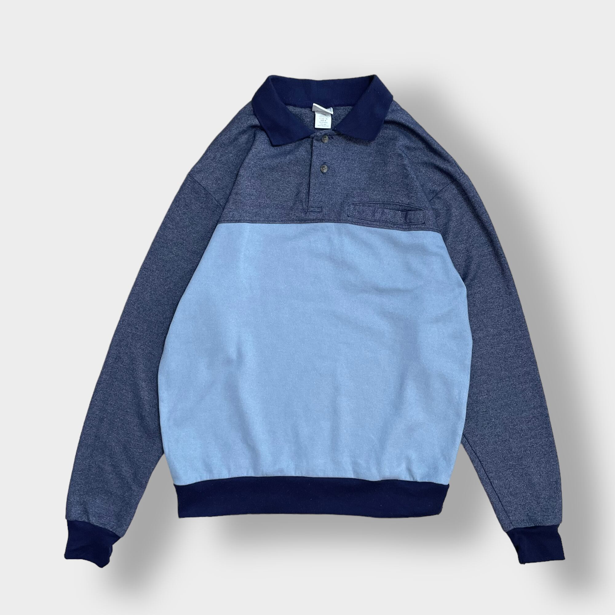 Habnd Casual Joe ハーフボタン スウェットシャツ プルオーバー 長袖ポロシャツ 胸ポケット 切替 HABAND US古着