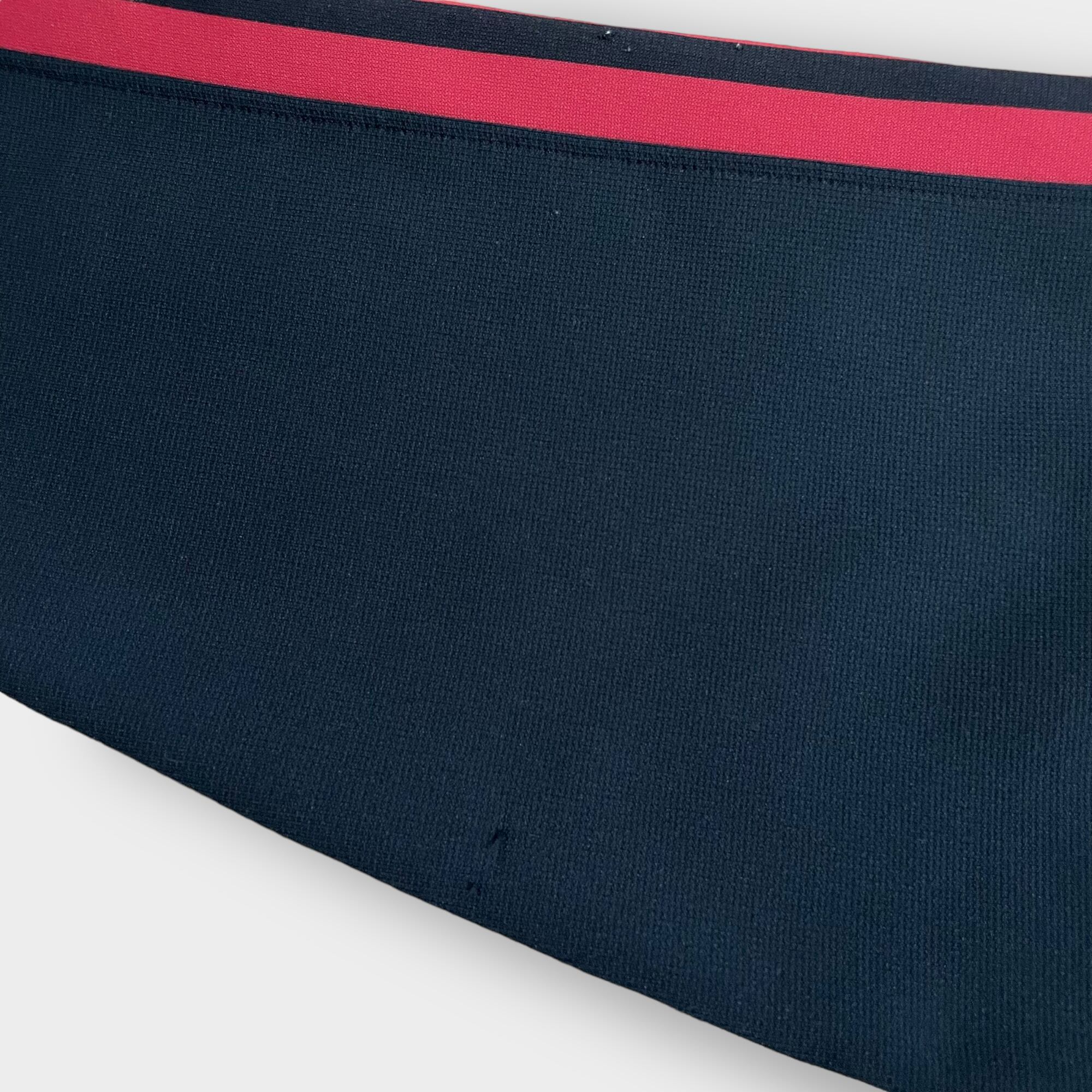 左胸、後ろ首元にスウッシュの刺繍ロゴ、フルジップ、珍しい赤の2ライン、白タグで90s、日本製です。