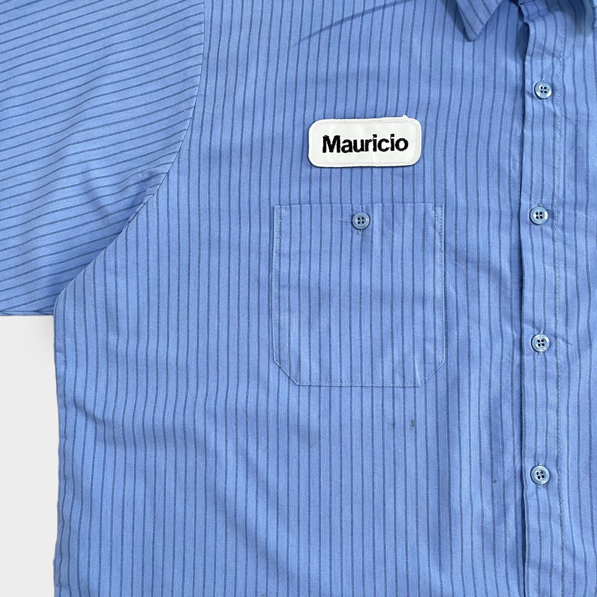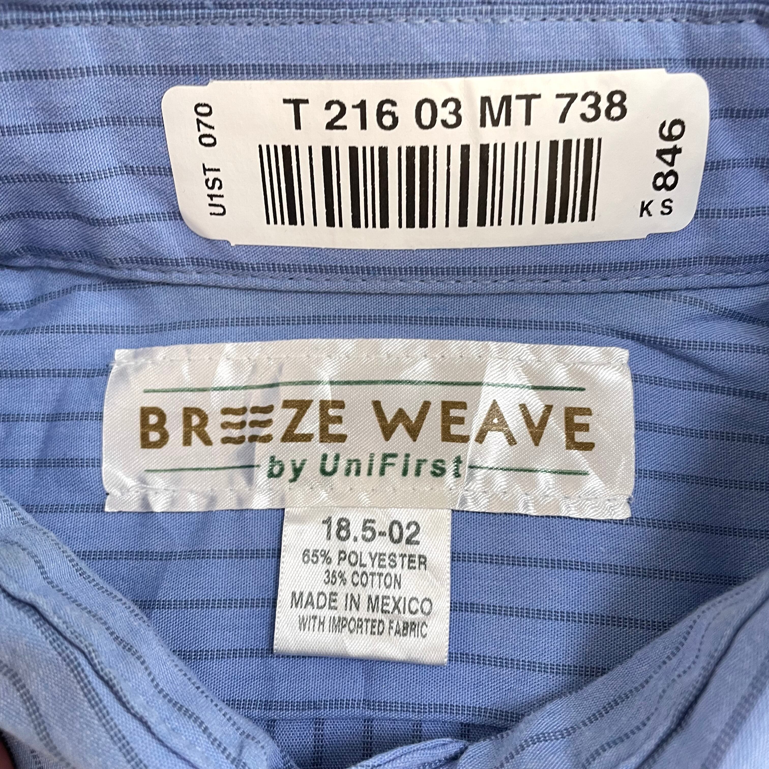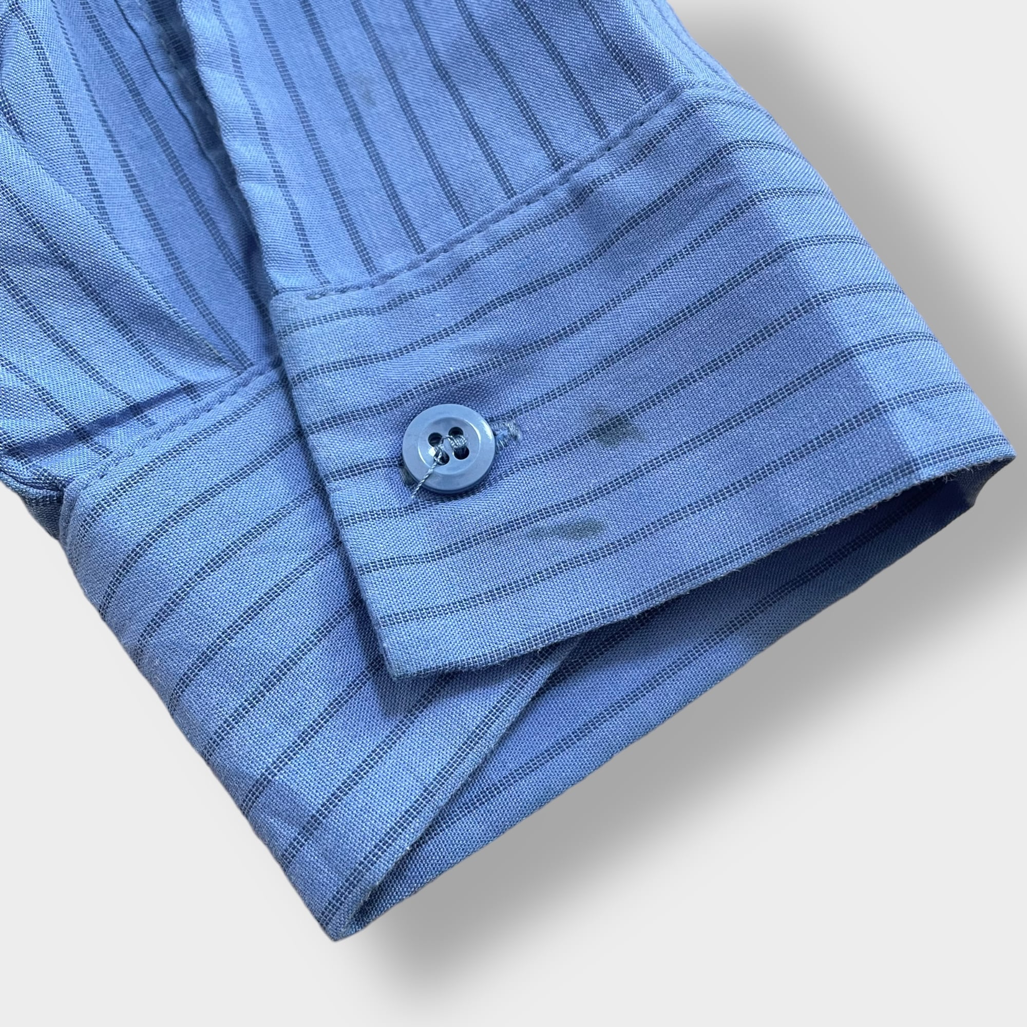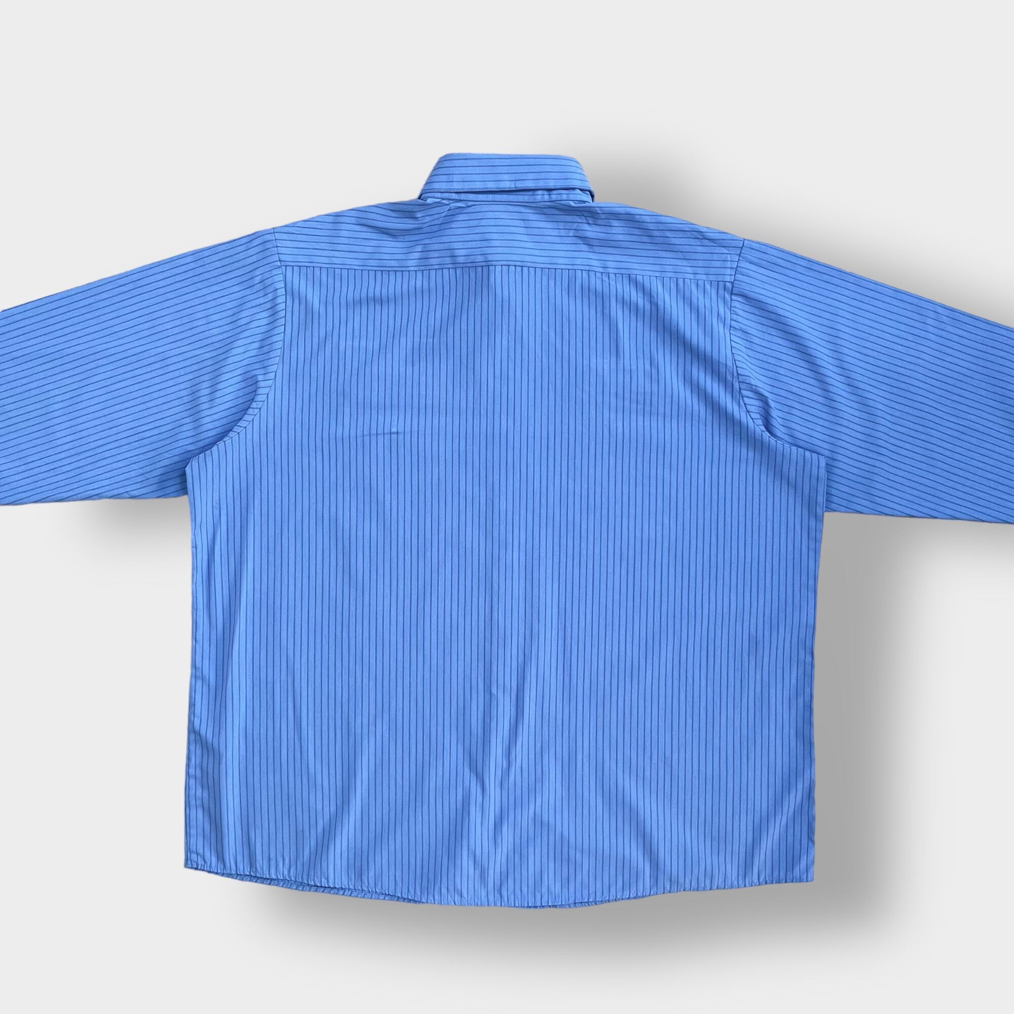 【BREEZE WEAVE】MEXICO製 ワークシャツ ストライプ 企業ロゴ 企業系 三菱ロジスネクスト 長袖シャツ ワッペン XL相当 ビッグサイズ US古着