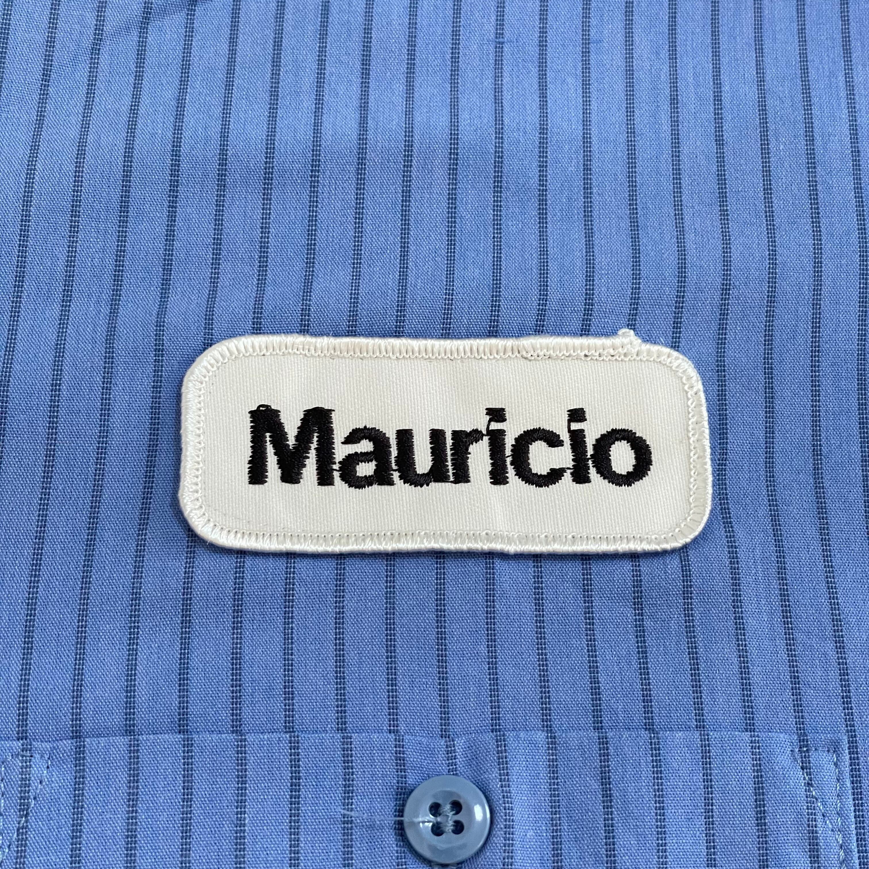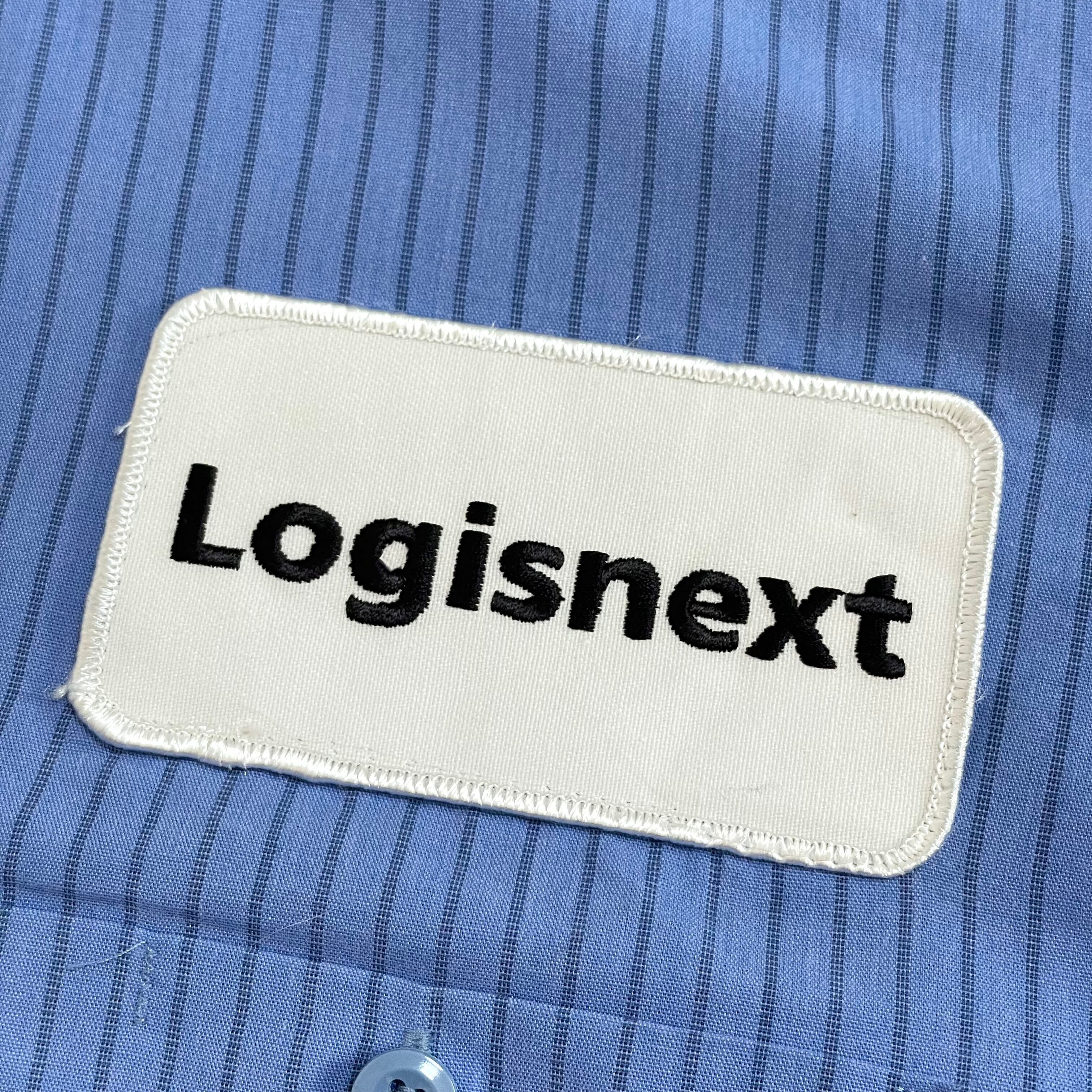 ストライプのボディ、三菱ロジスネクスト、ネームワッペン付きです。