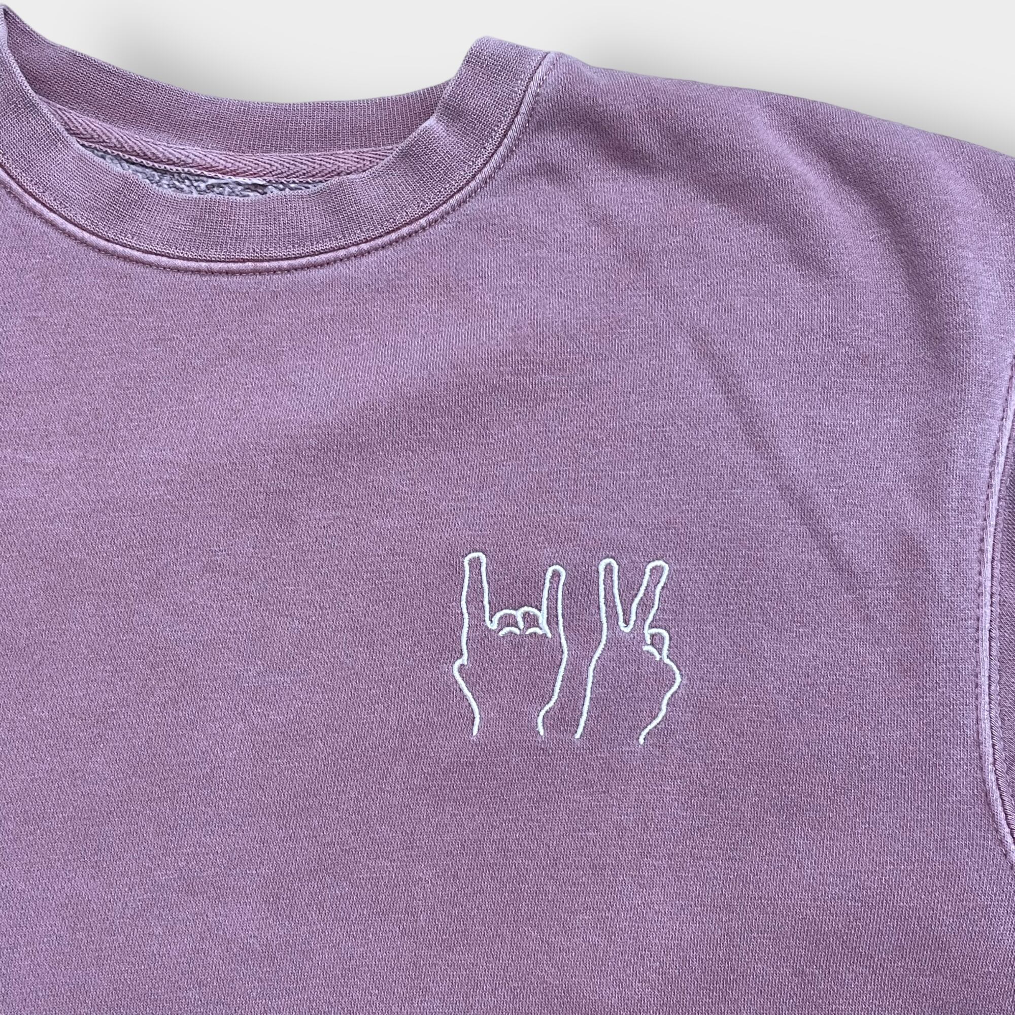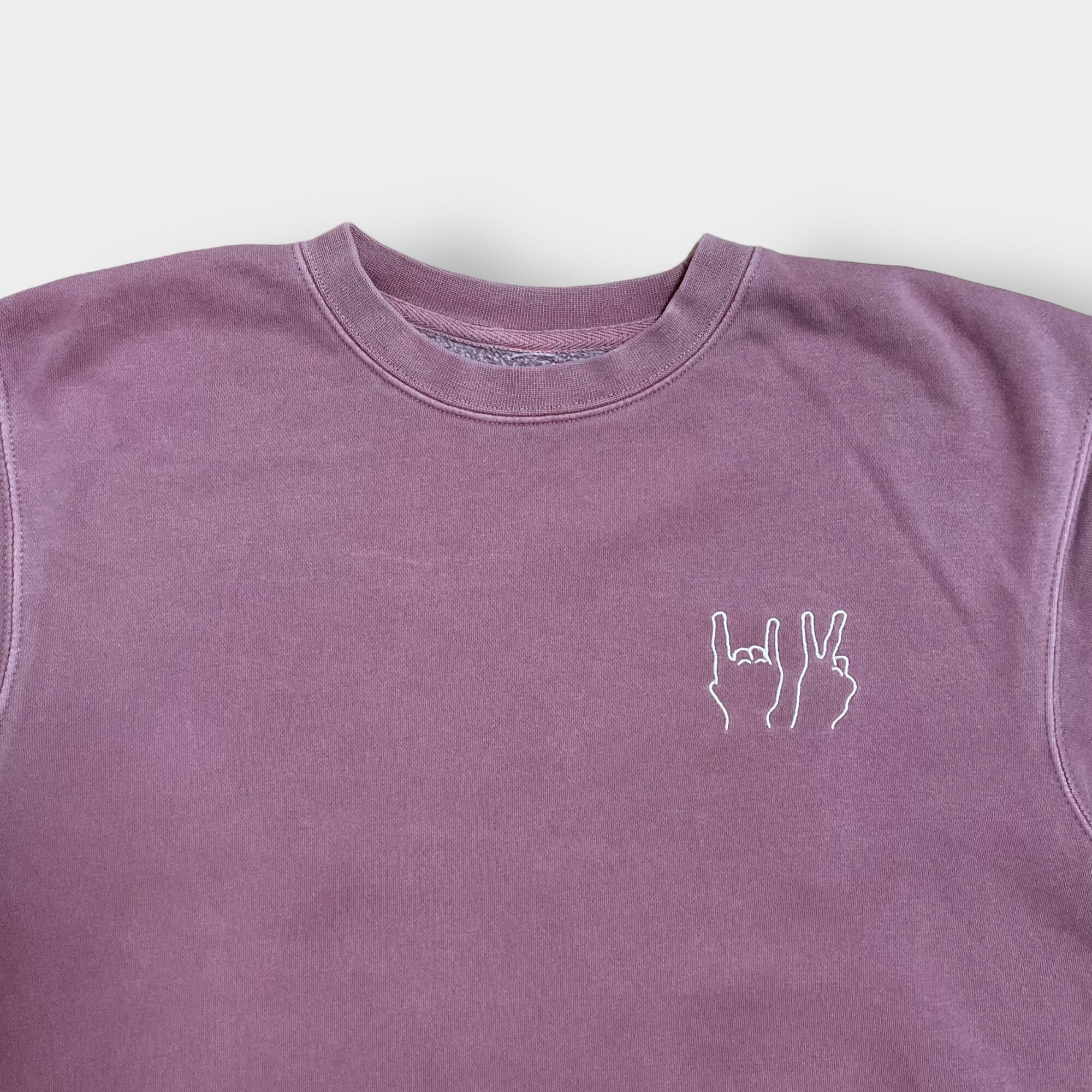【DOLAN TWINS】刺繍 ロゴ スウェットシャツ トレーナー プルオーバー 薄紫 くすみカラー ユニセックス S コメディアン US古着