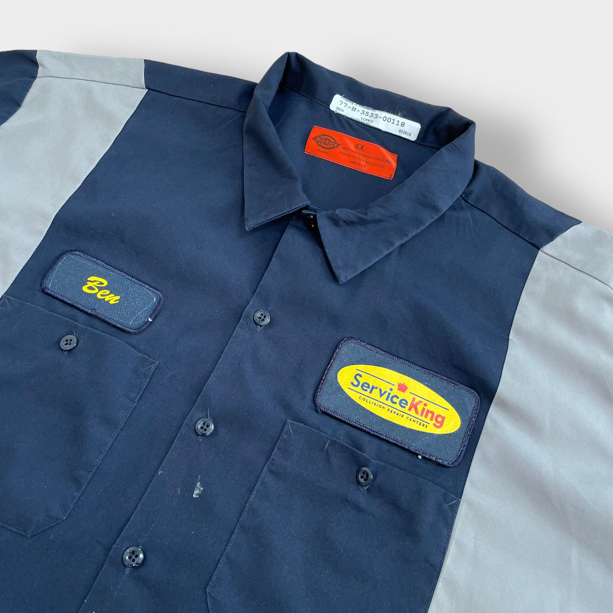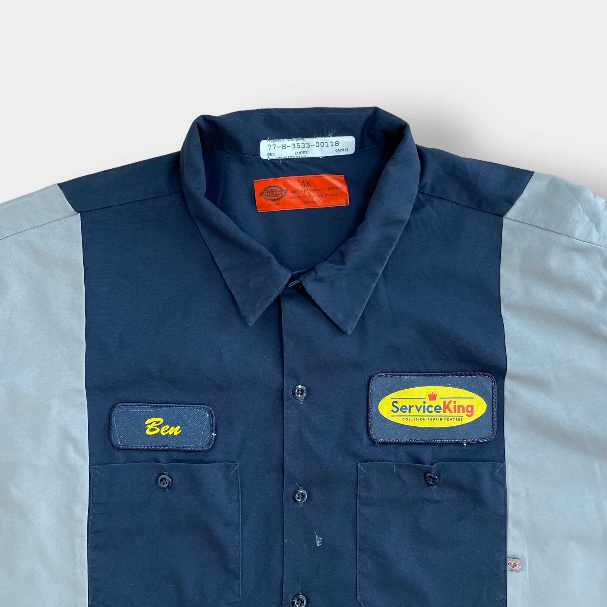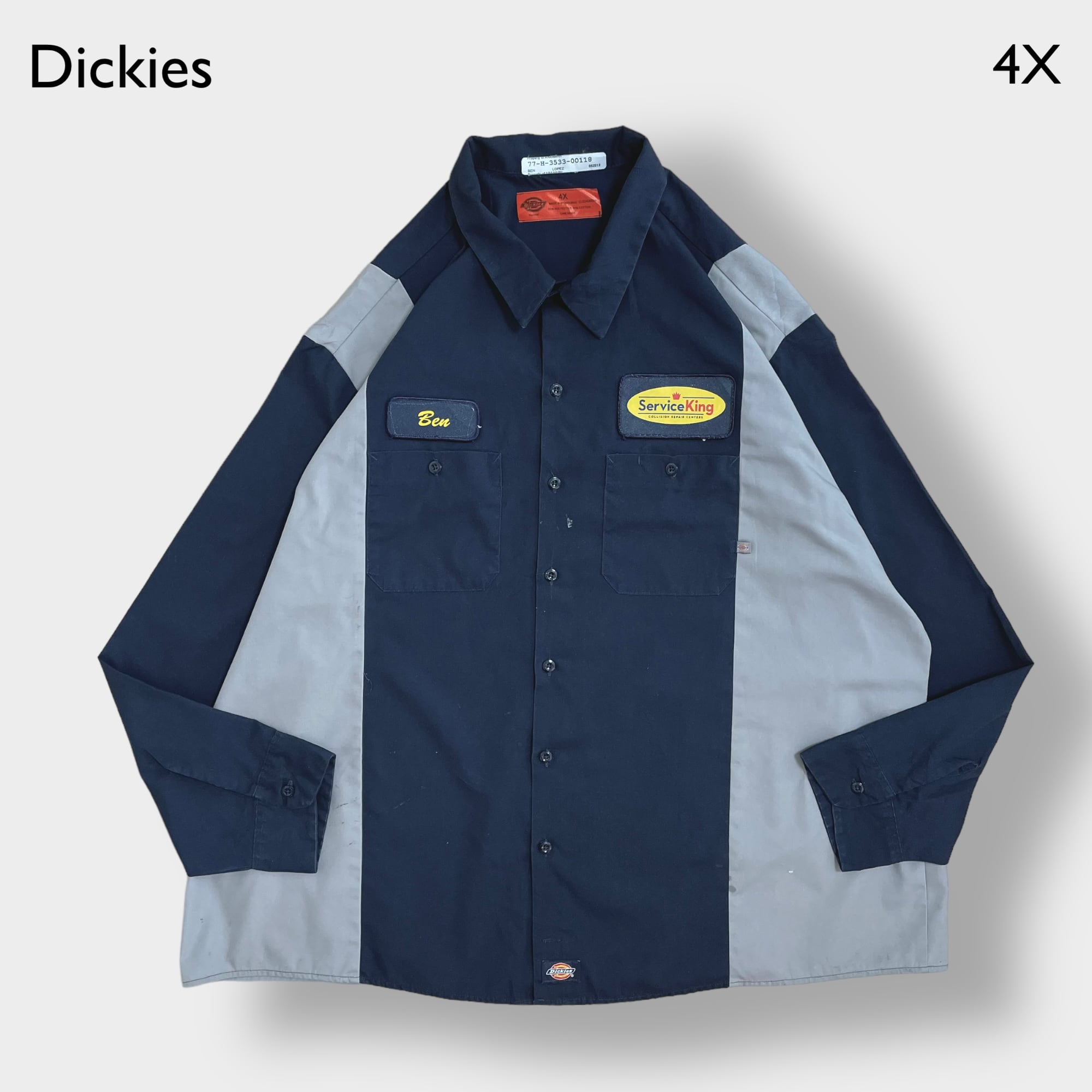 【Dickies】ワークシャツ 企業系 企業ロゴ ワンポイント ワッペン 4X ビッグシルエット 切替 ディッキーズ us古着