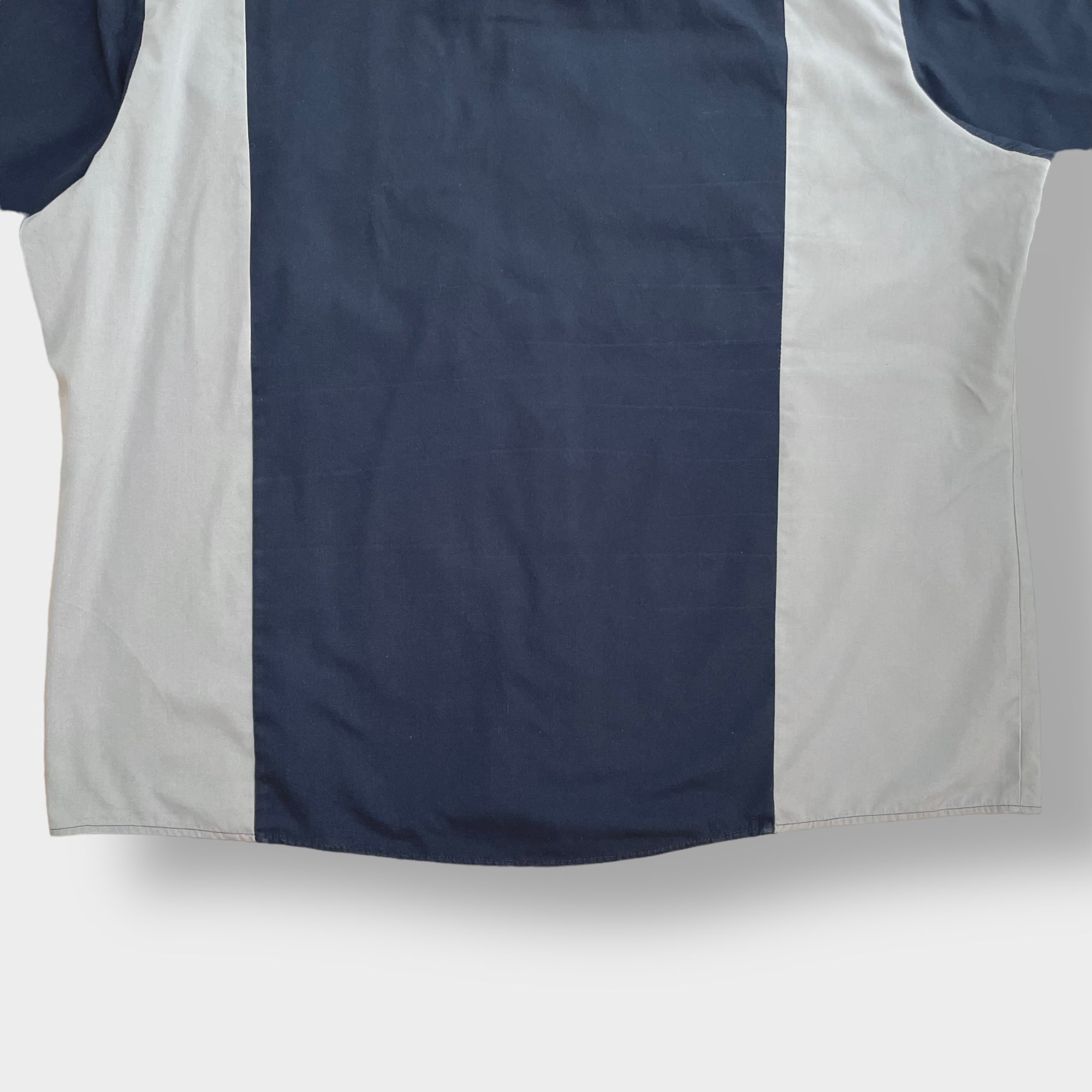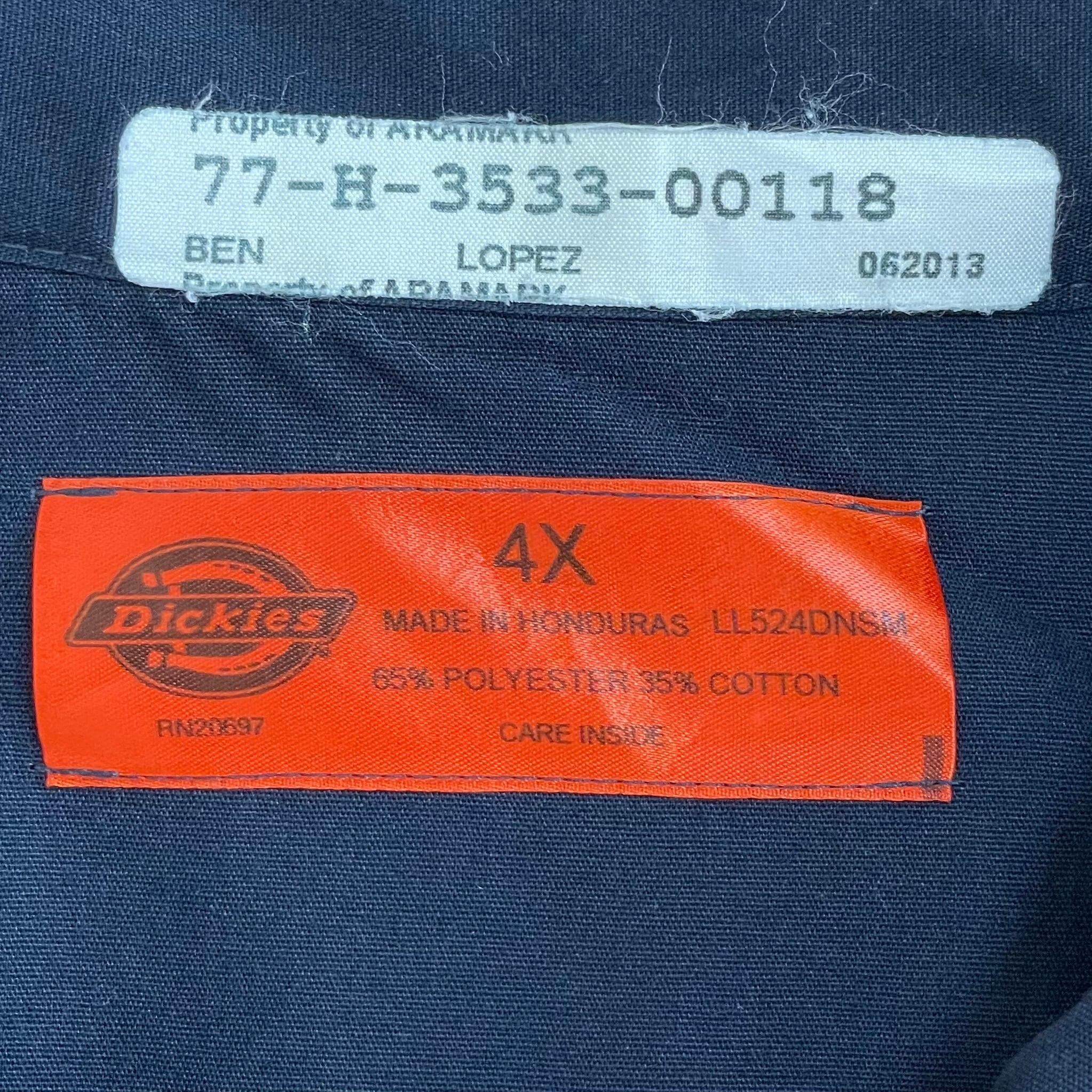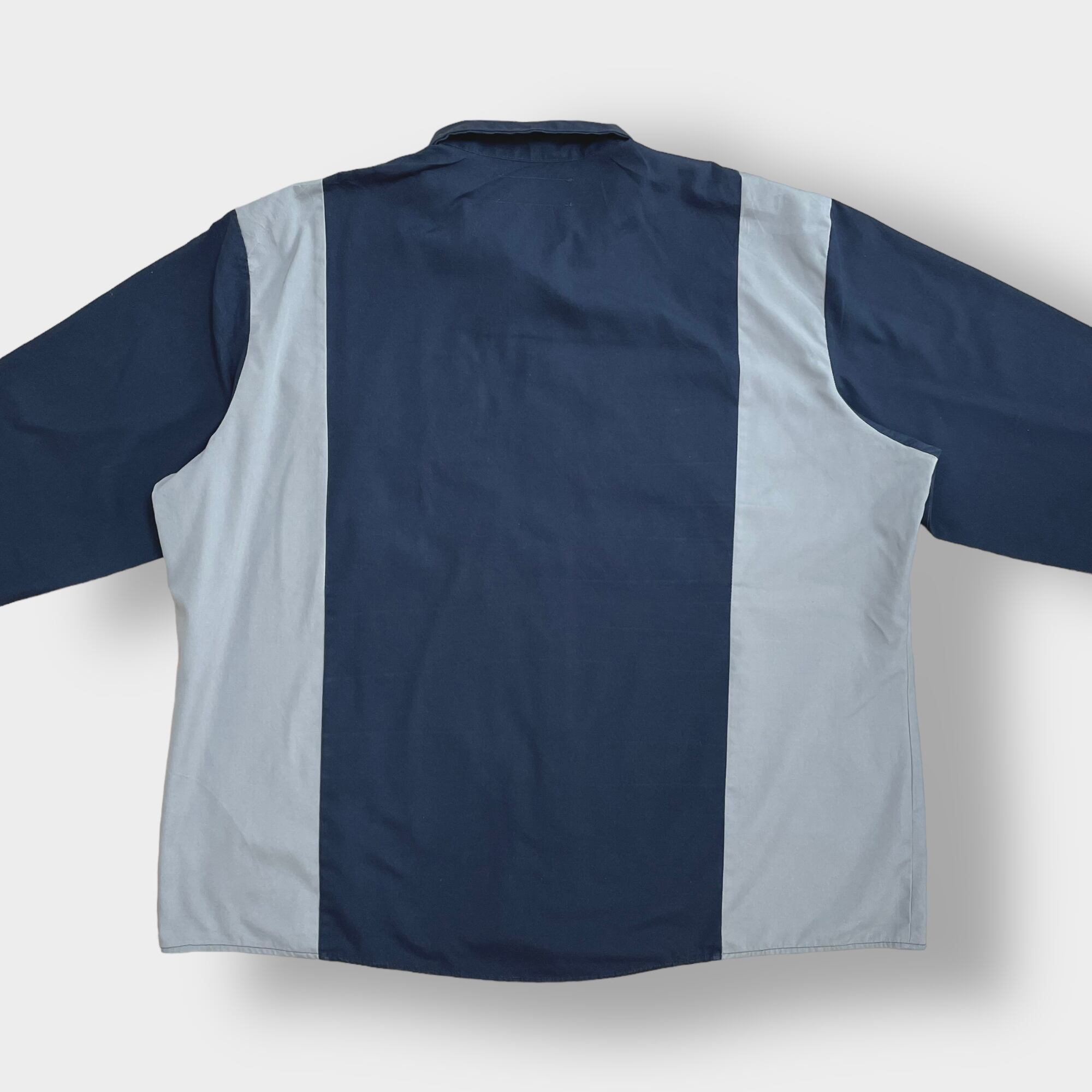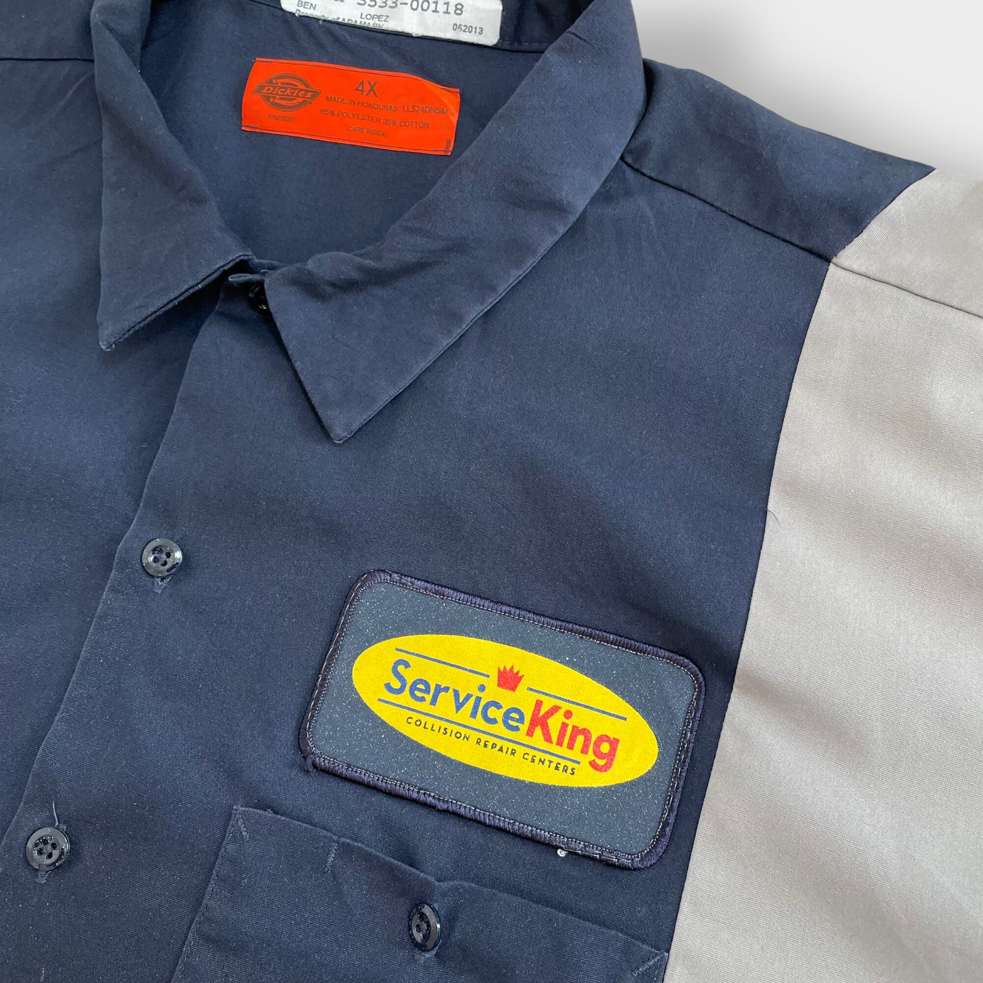 【Dickies】ワークシャツ 企業系 企業ロゴ ワンポイント ワッペン 4X ビッグシルエット 切替 ディッキーズ us古着