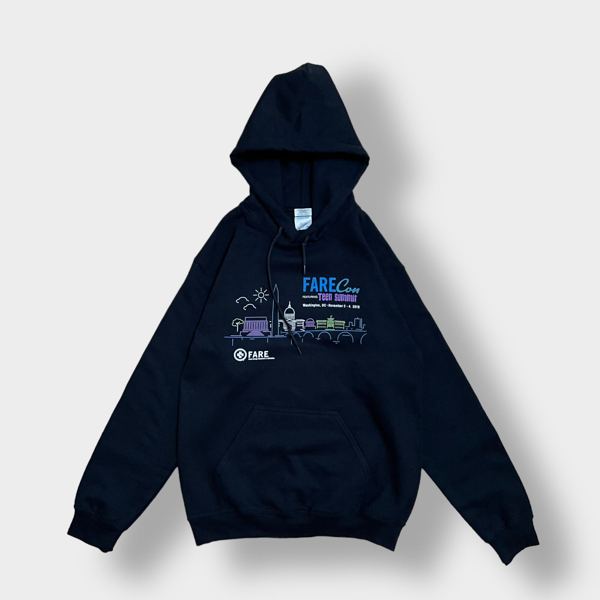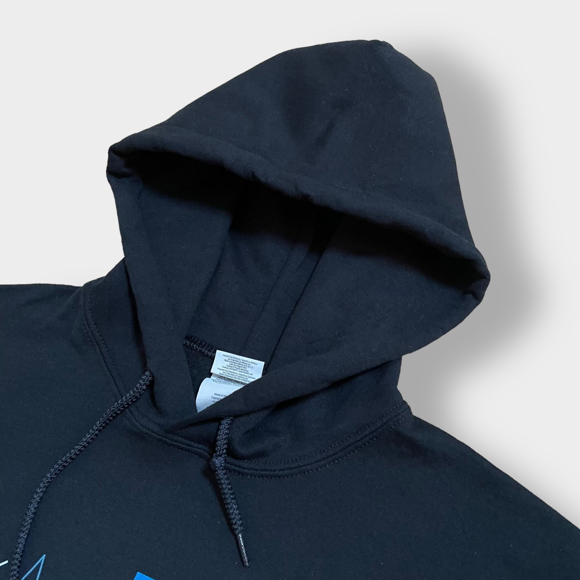 GILDAN パーカー イベント系 プルオーバー スウェット フーディー バックプリント 企業ロゴ S us古着