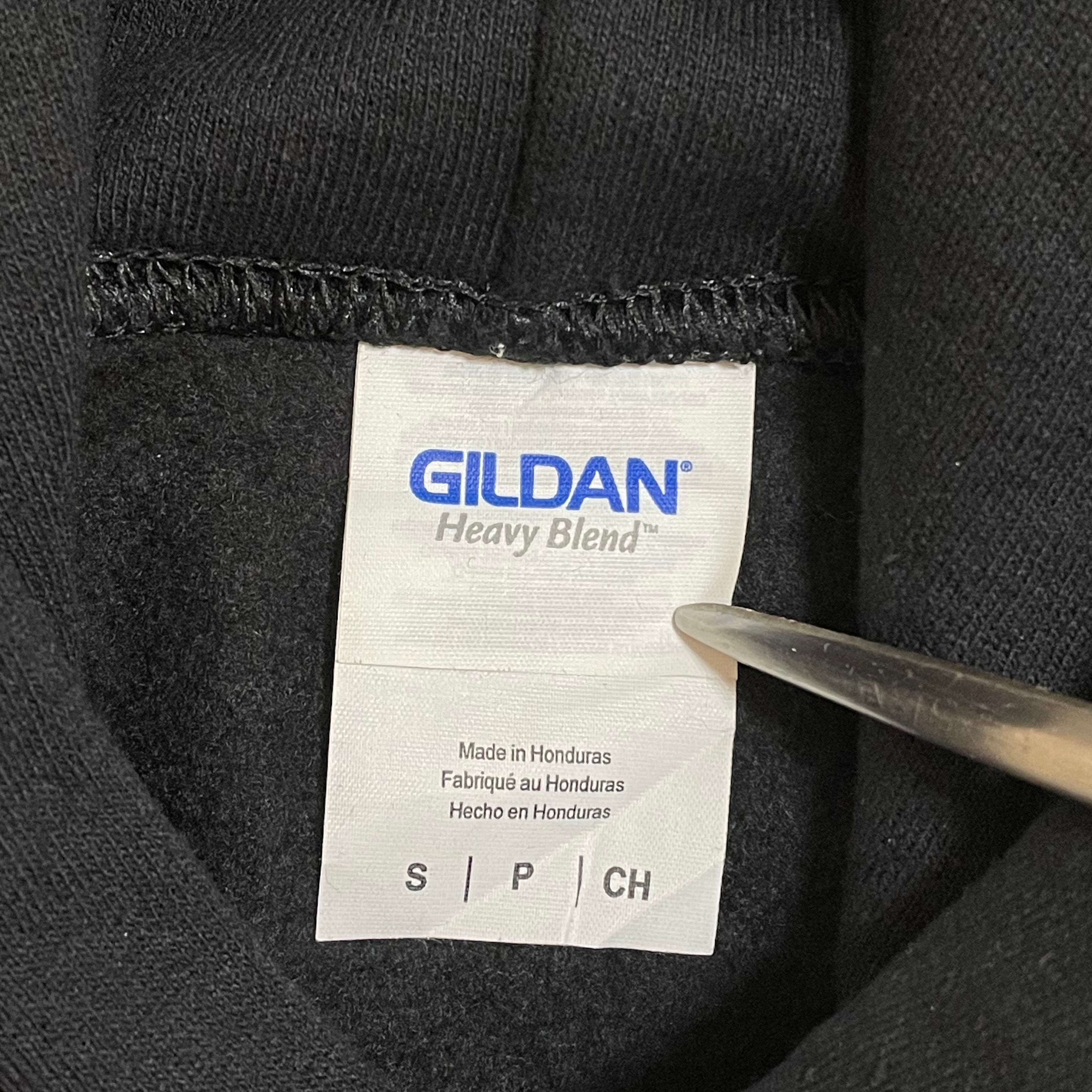 ボディはGILDAN、サイズ表記はS、実寸は下部に掲載しておりますのでご参考ください。