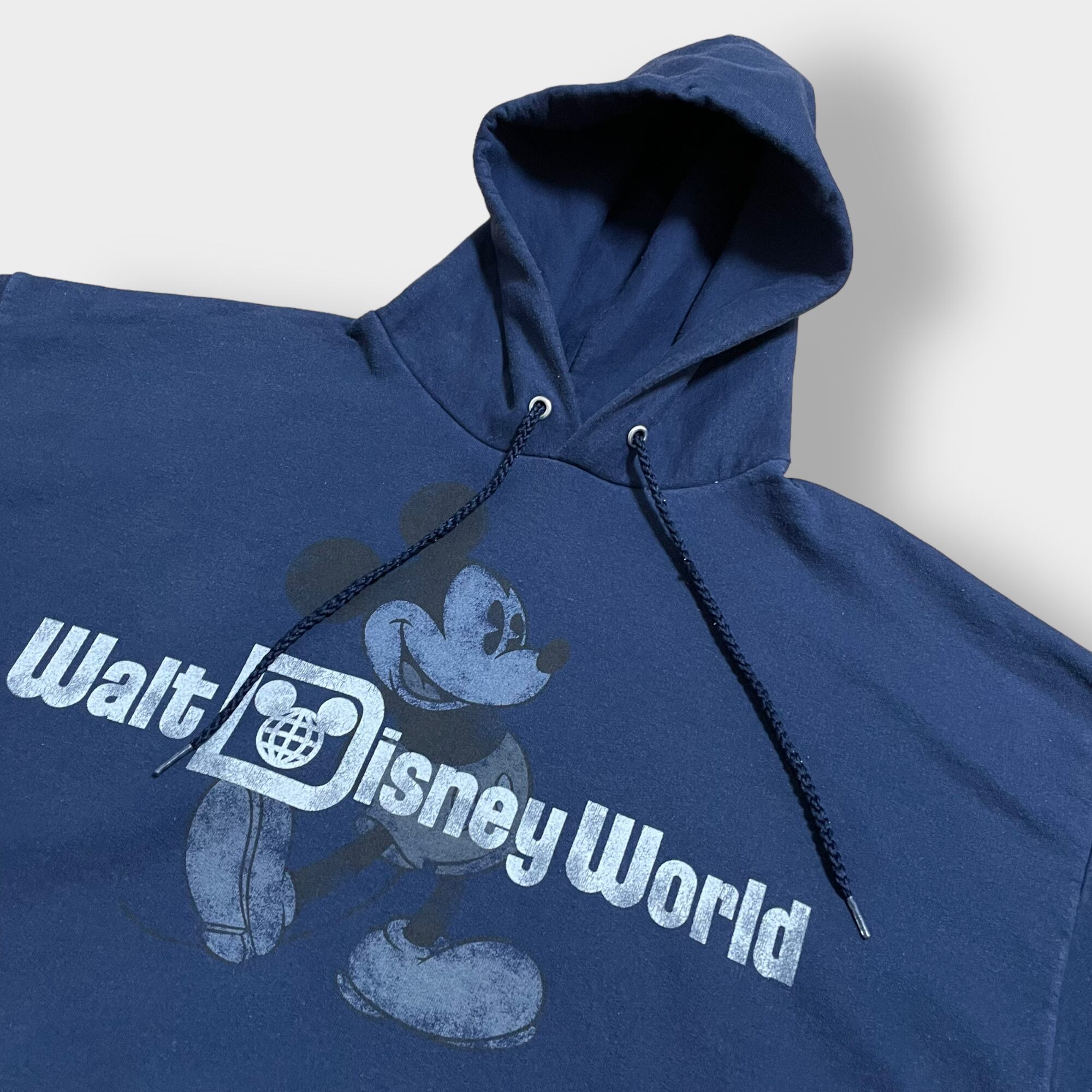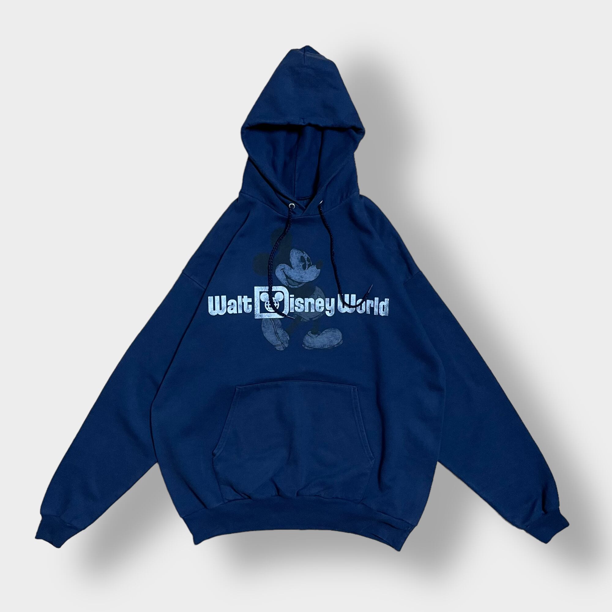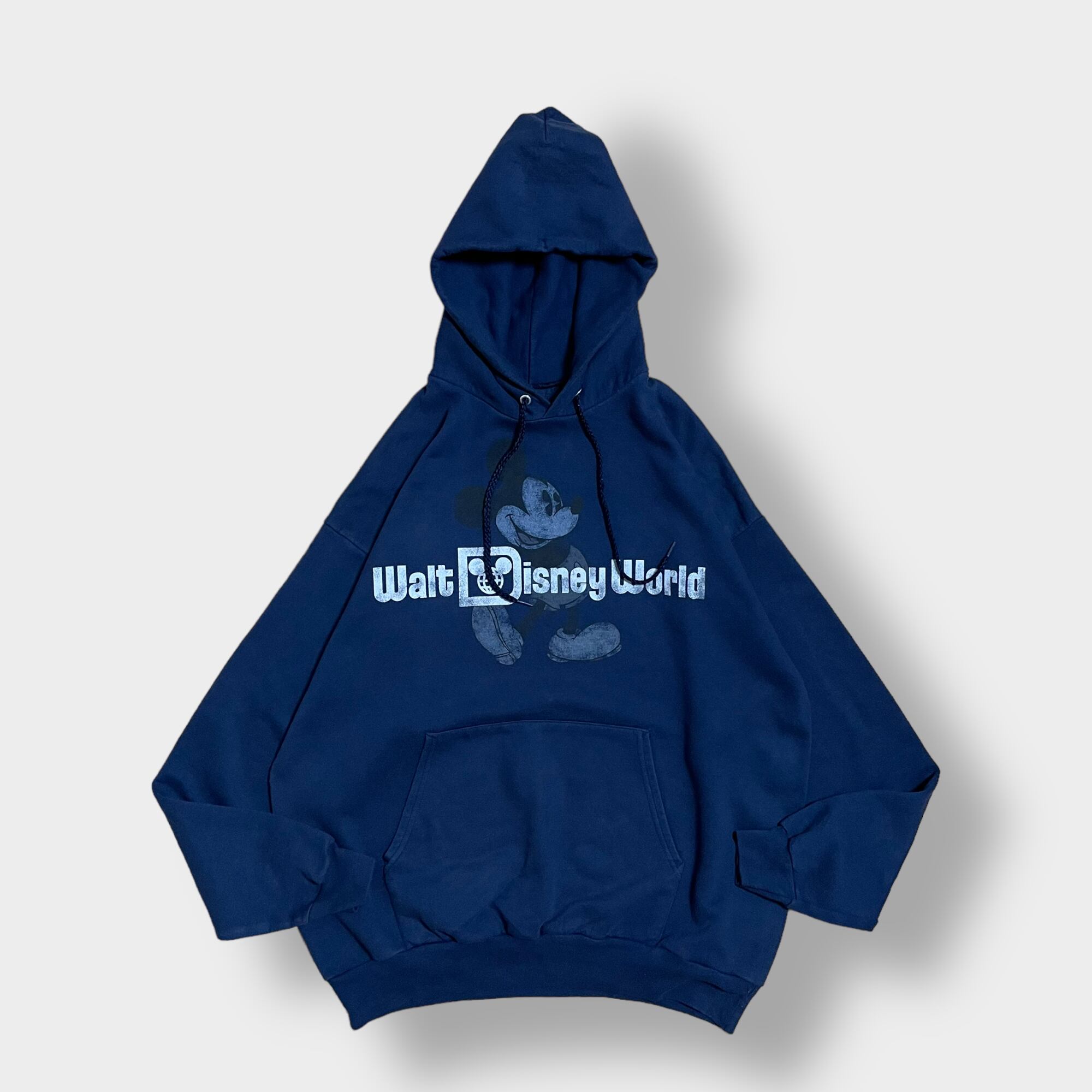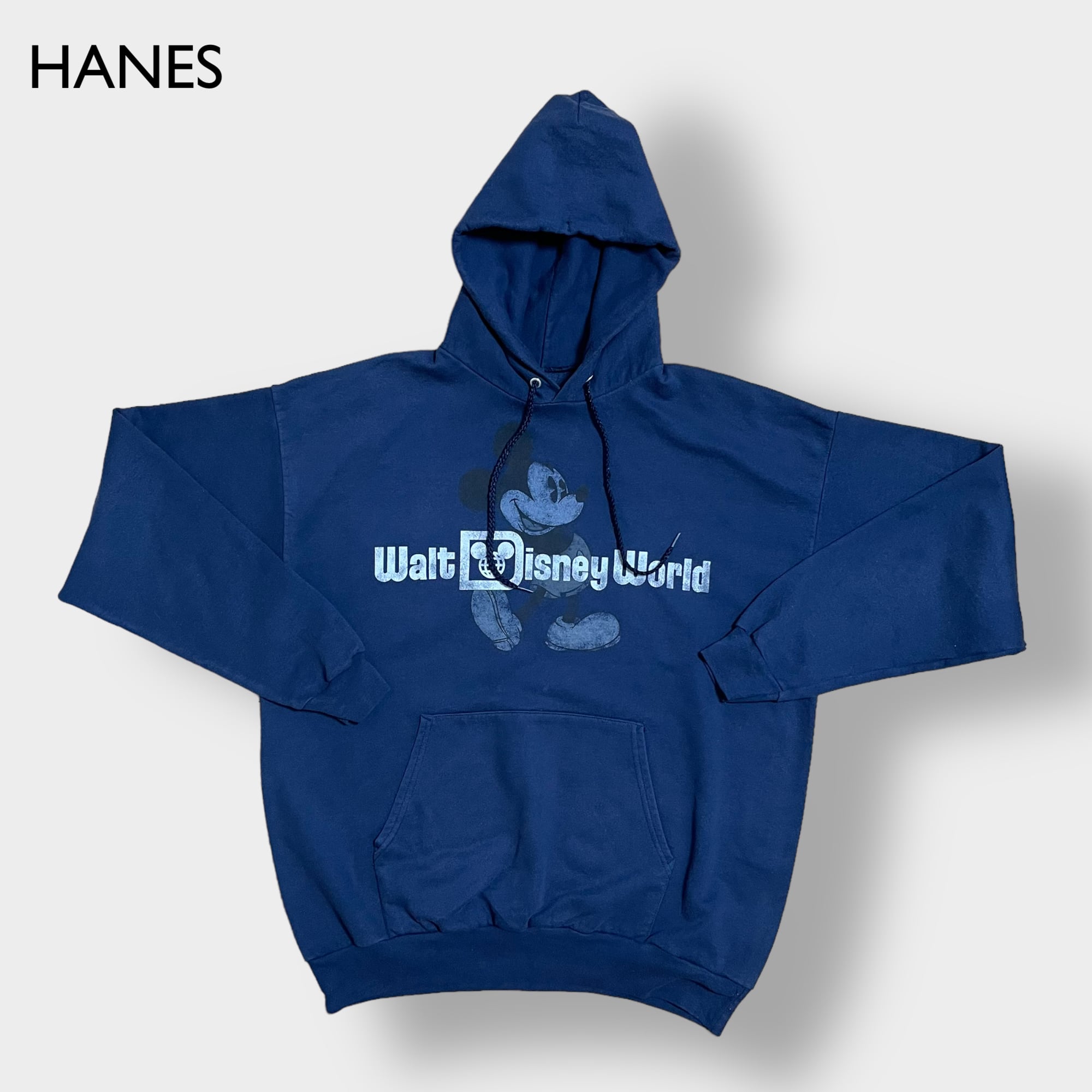 Disney XL ビッグサイズ プリント ミッキーマウス ロゴ パーカー プルオーバー スウェット フーディー ディズニー HANES us古着
