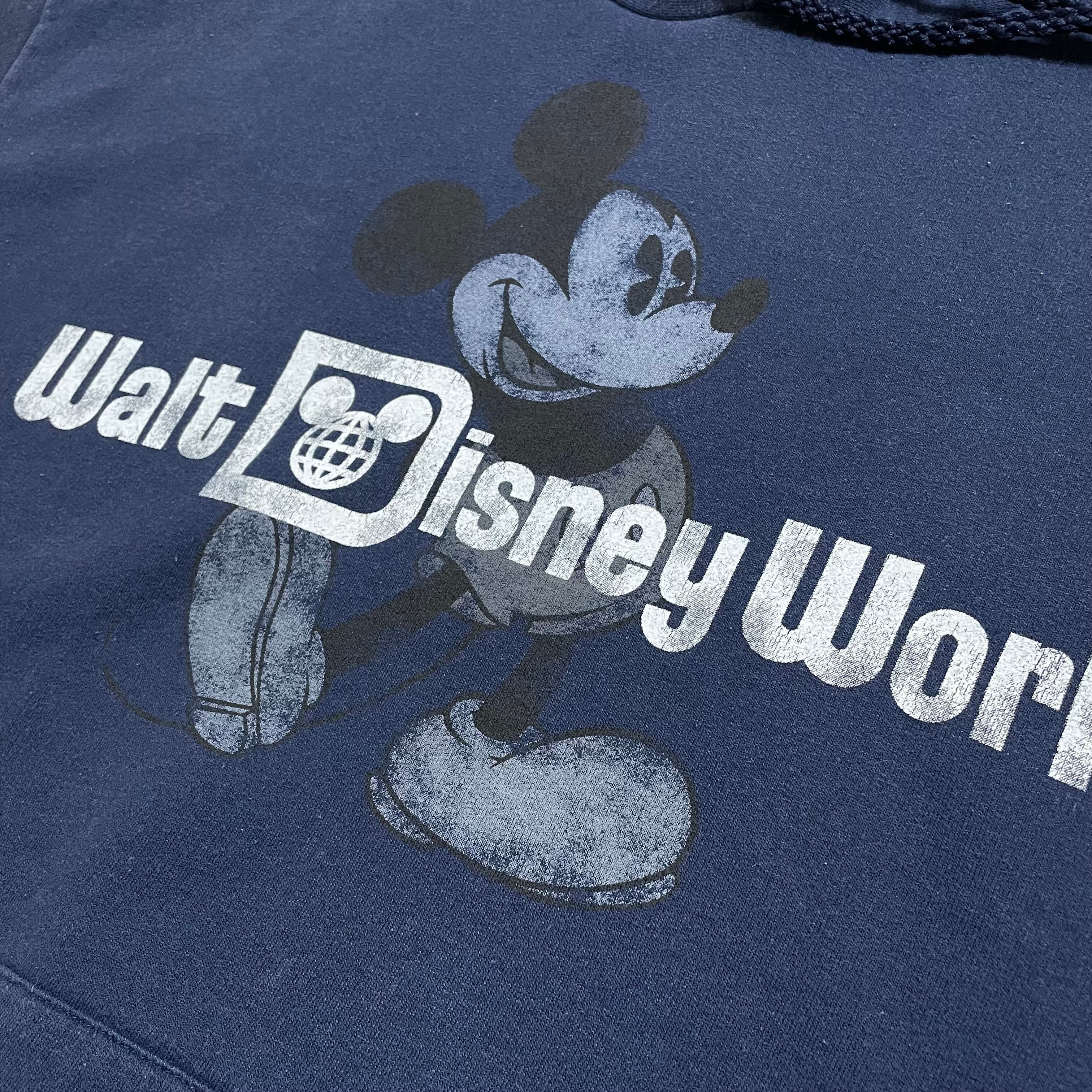 ミッキーマウス、Walt Disney Worldの掠れたヴィンテージ 加工のロゴがプリントされたDisneyのパーカーです。