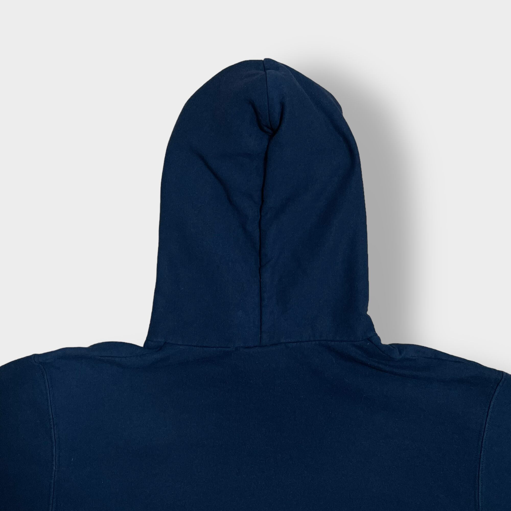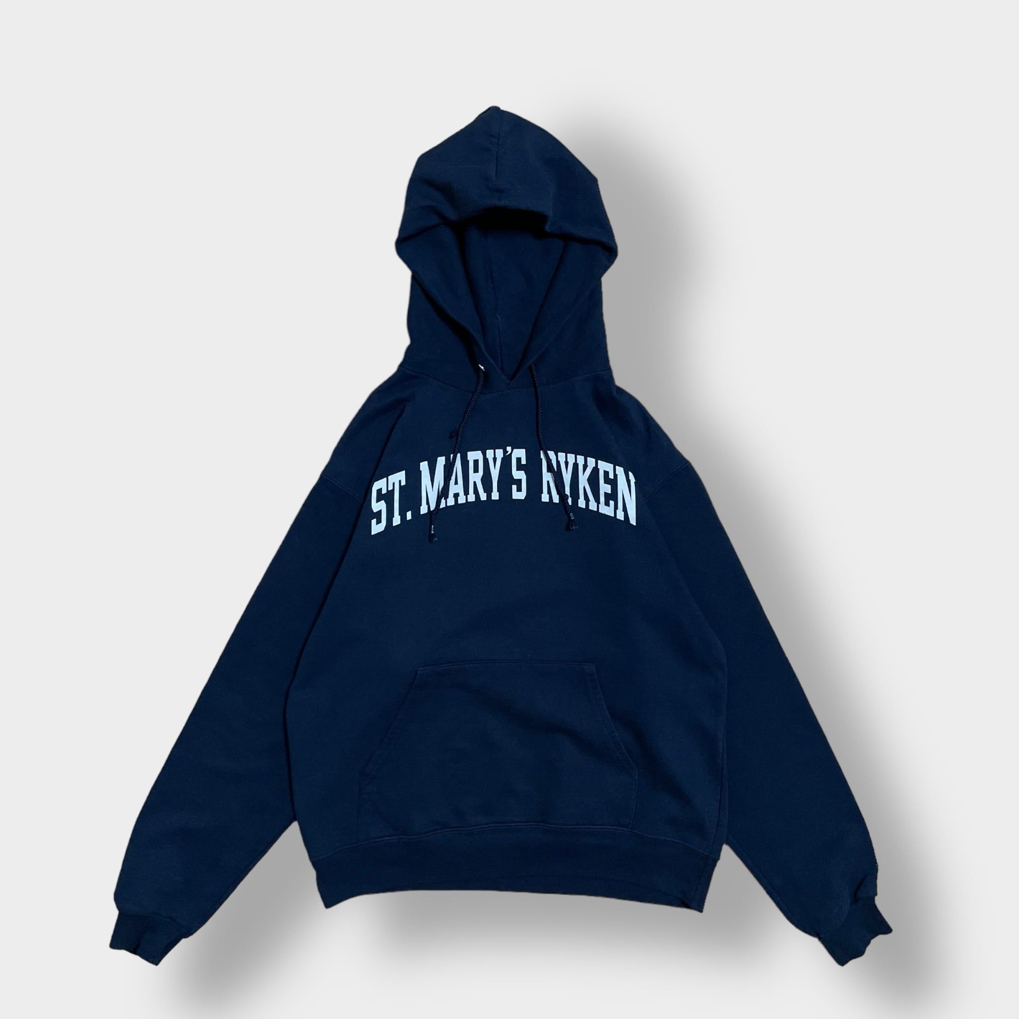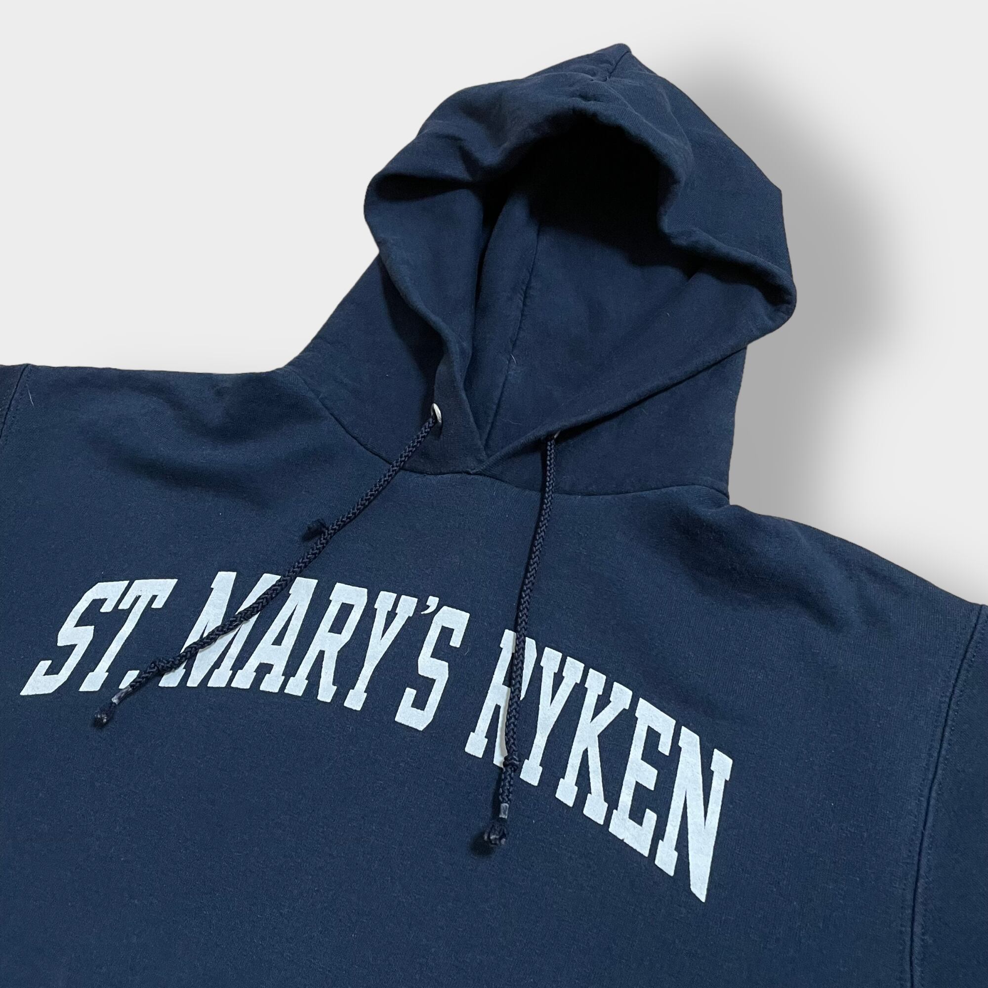 champion 高校 プリント アーチロゴ パーカー プルオーバー スウェット フーディー ネイビー セント・メアリーズ・ライケン M チャンピオン us古着