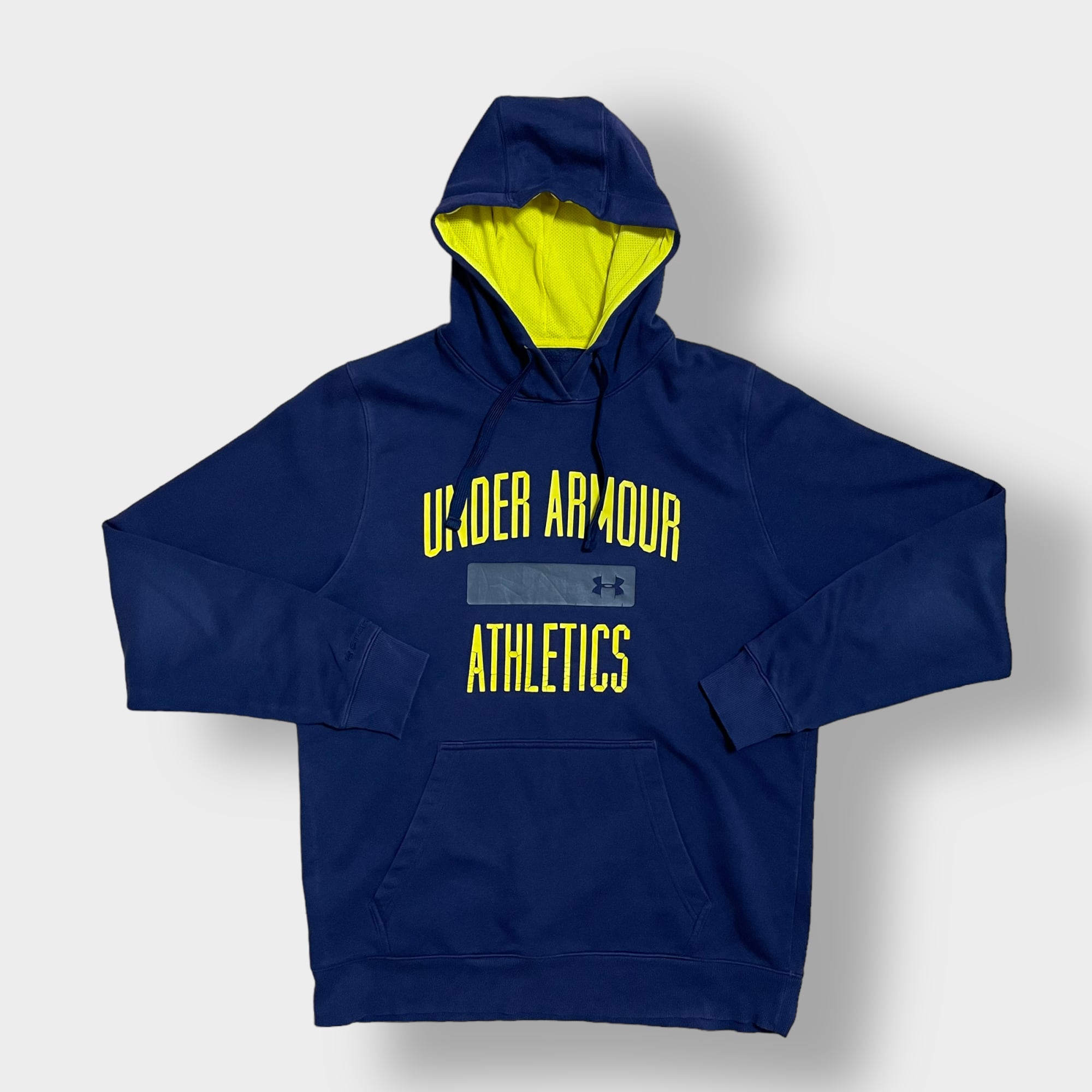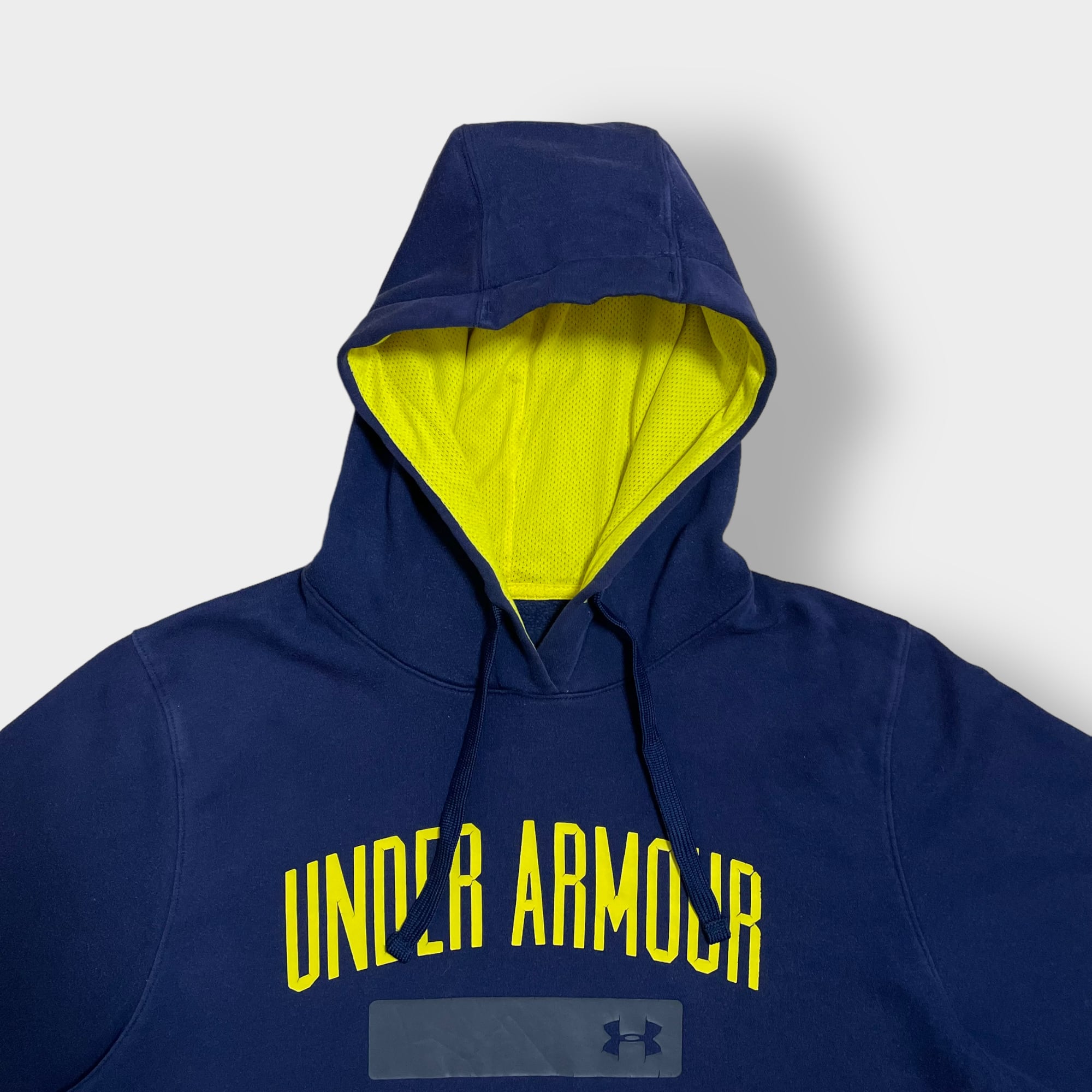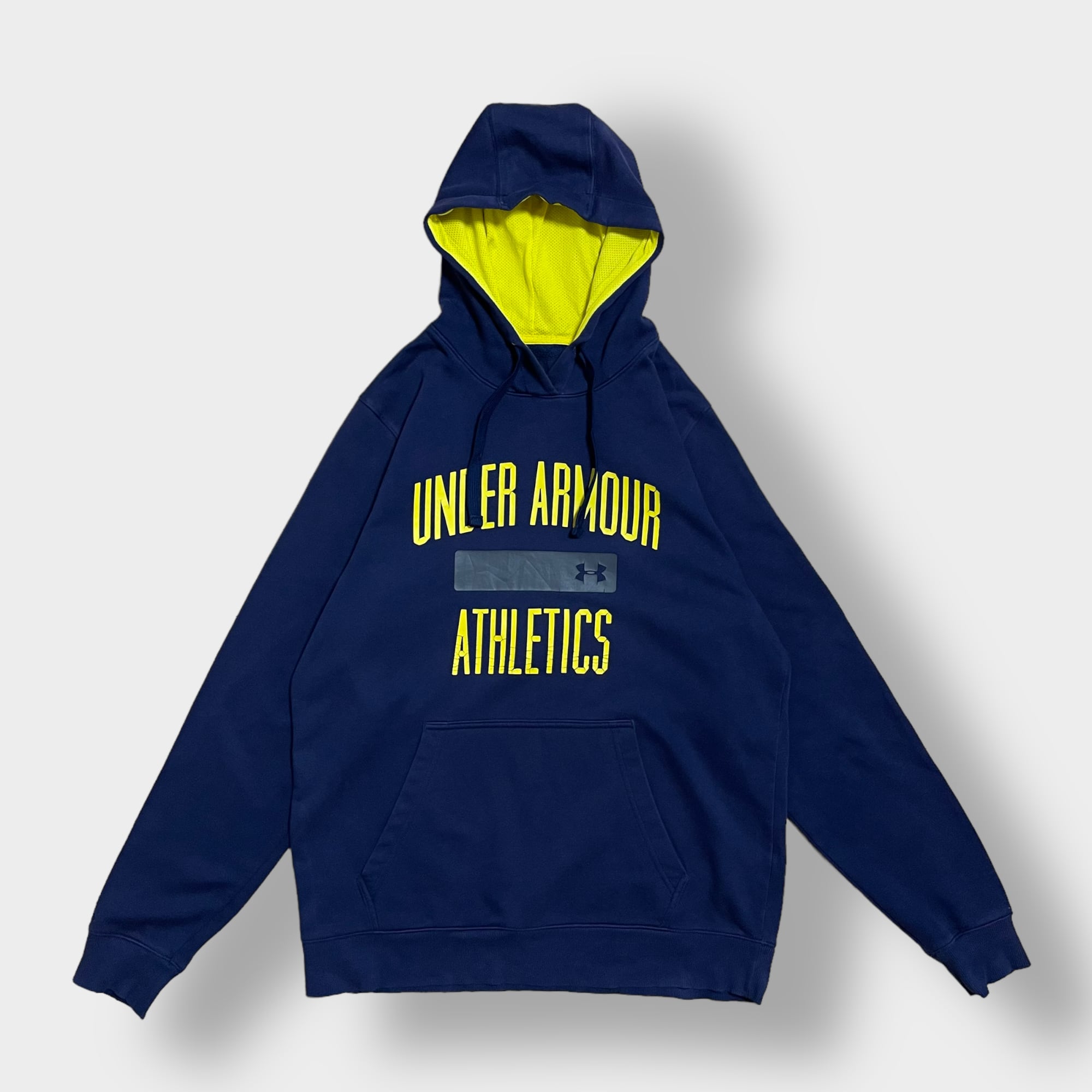 UNDER ARMOUR プリント ロゴ パーカー プルオーバー スウェット フーディー ネイビー アンダーアーマー us古着