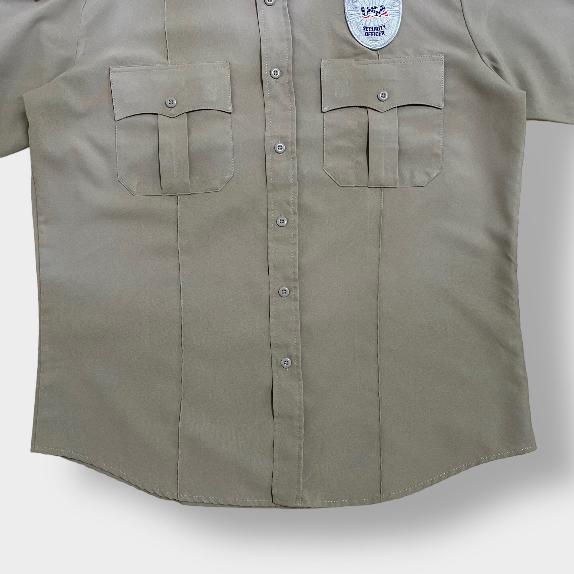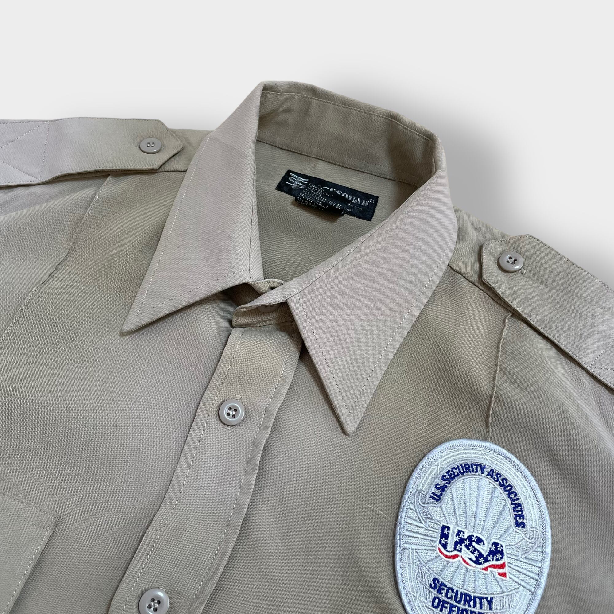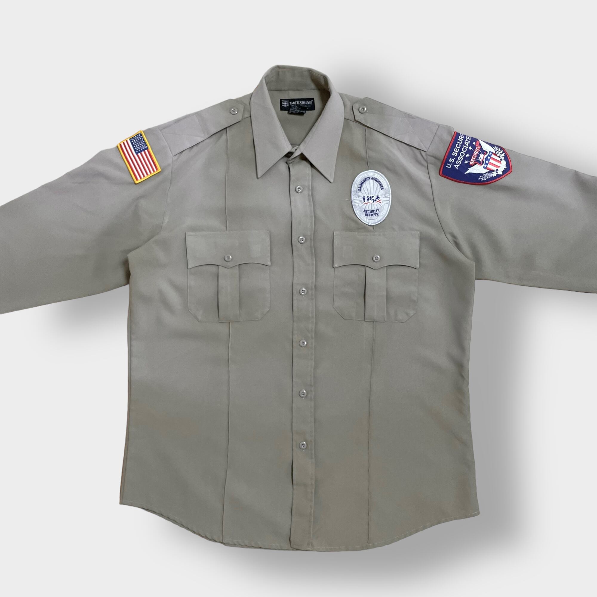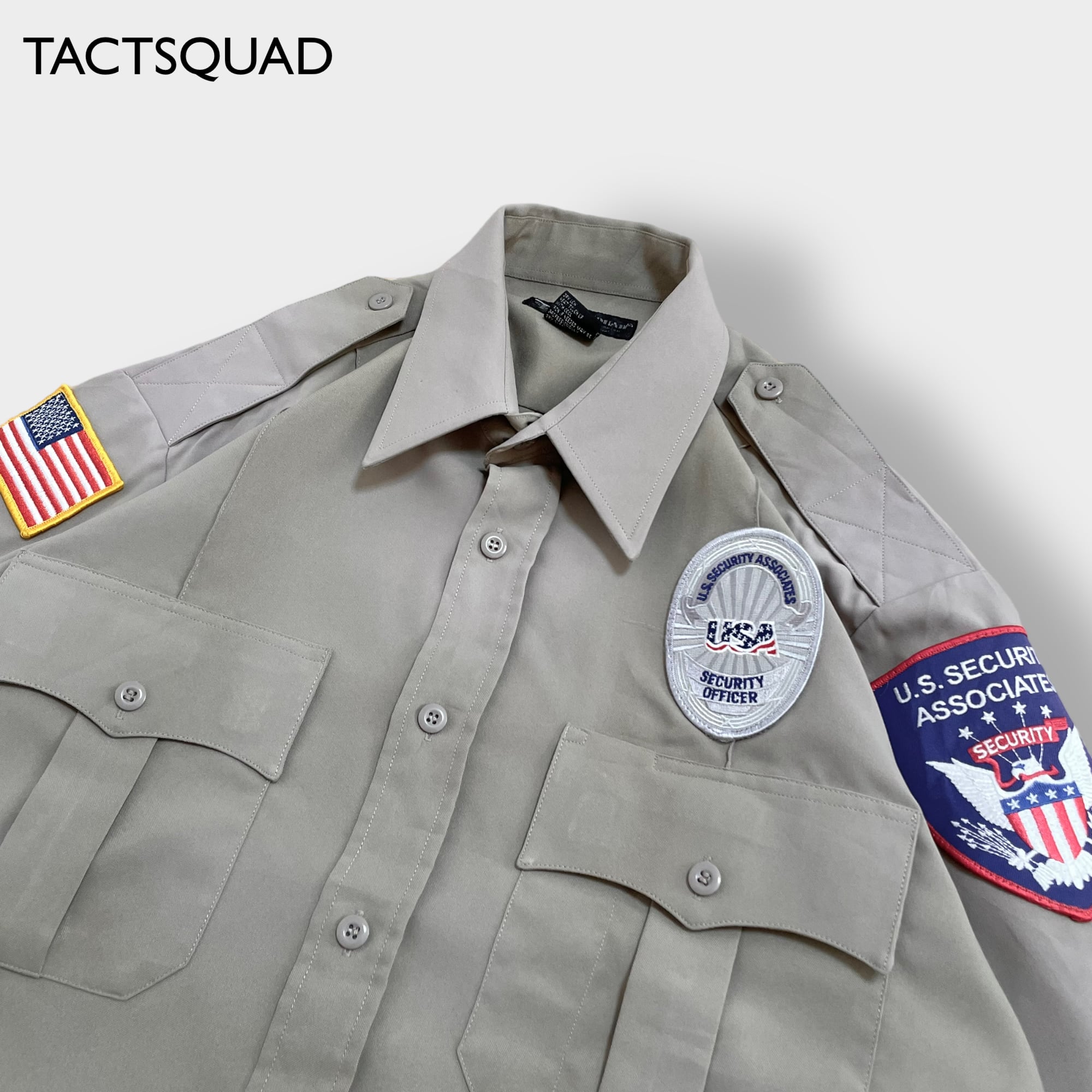 TACTSQUAD ミリタリーシャツ ワークシャツ エポーレット セキュリティ ワッペン ポリシャツ ベージュ L US古着