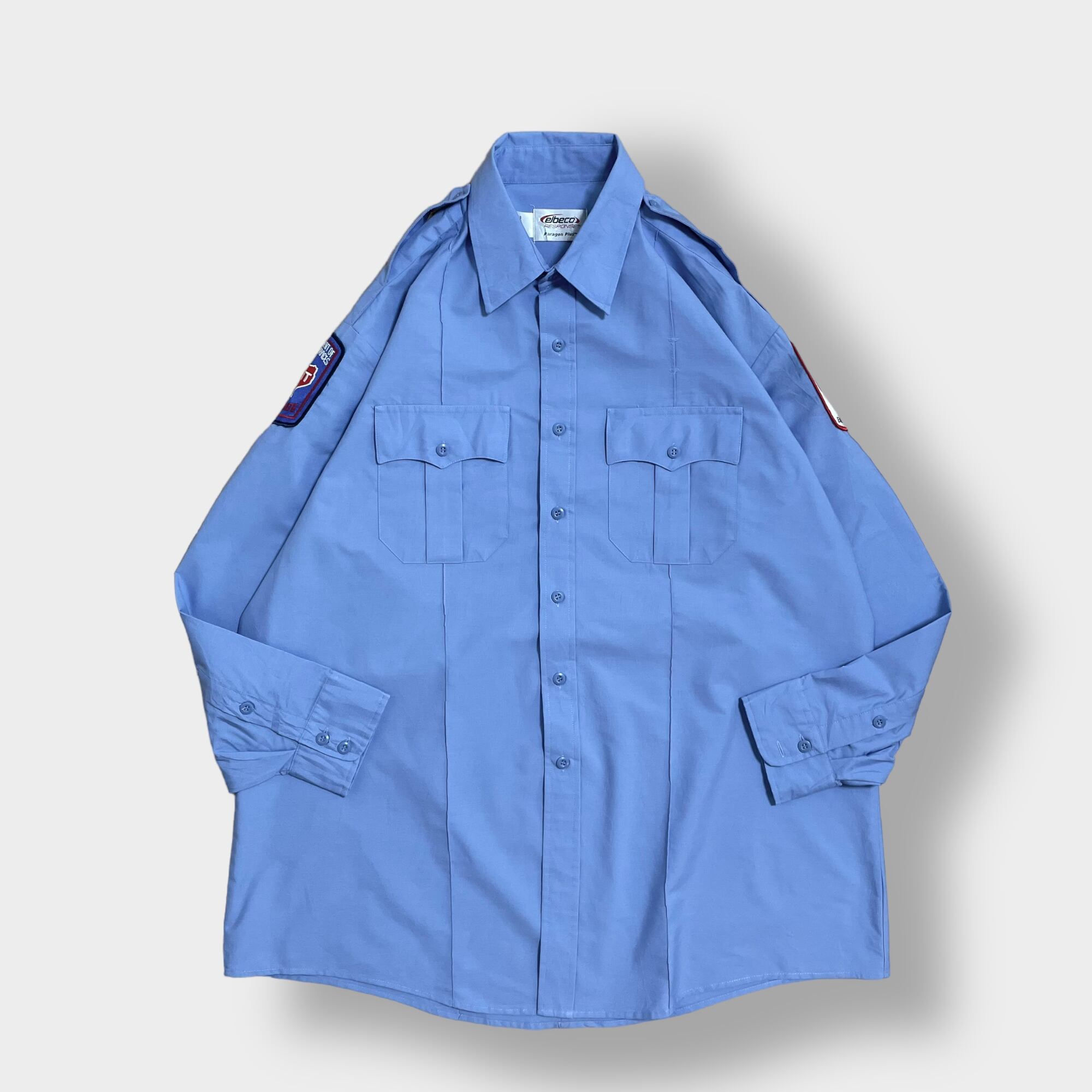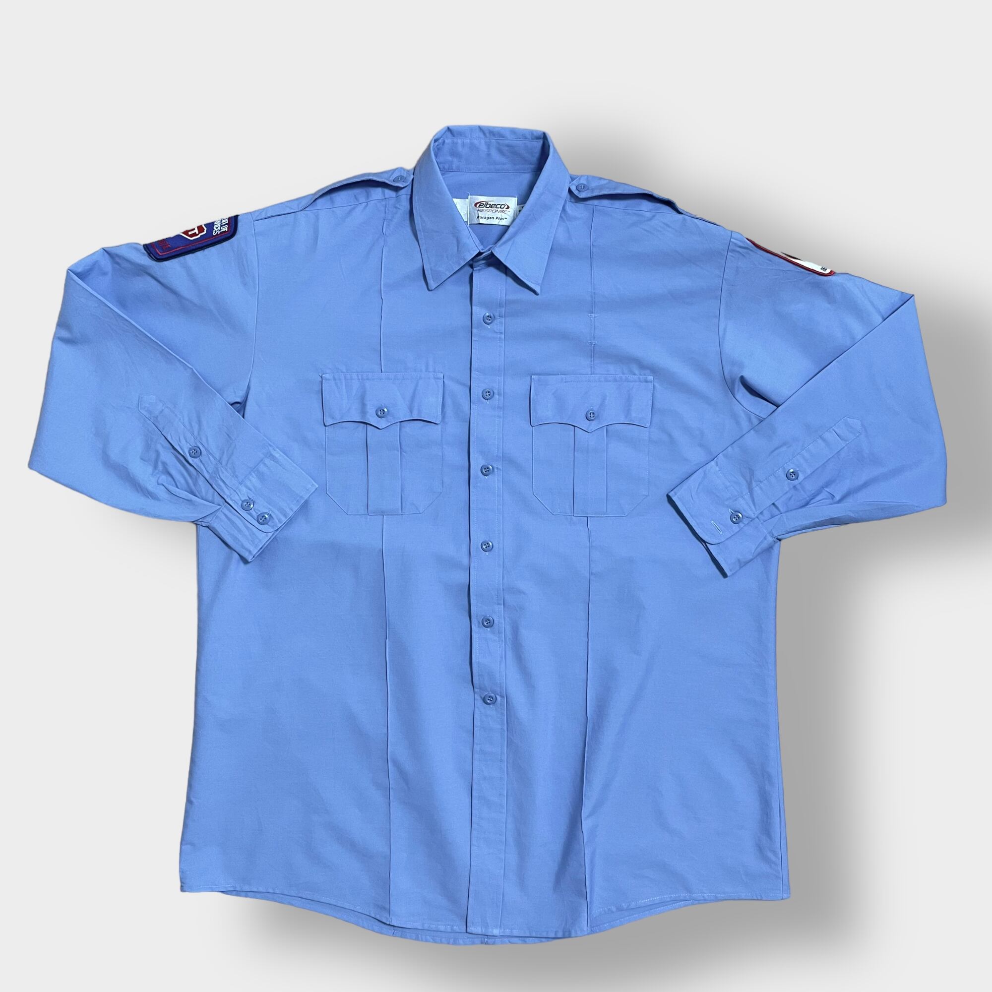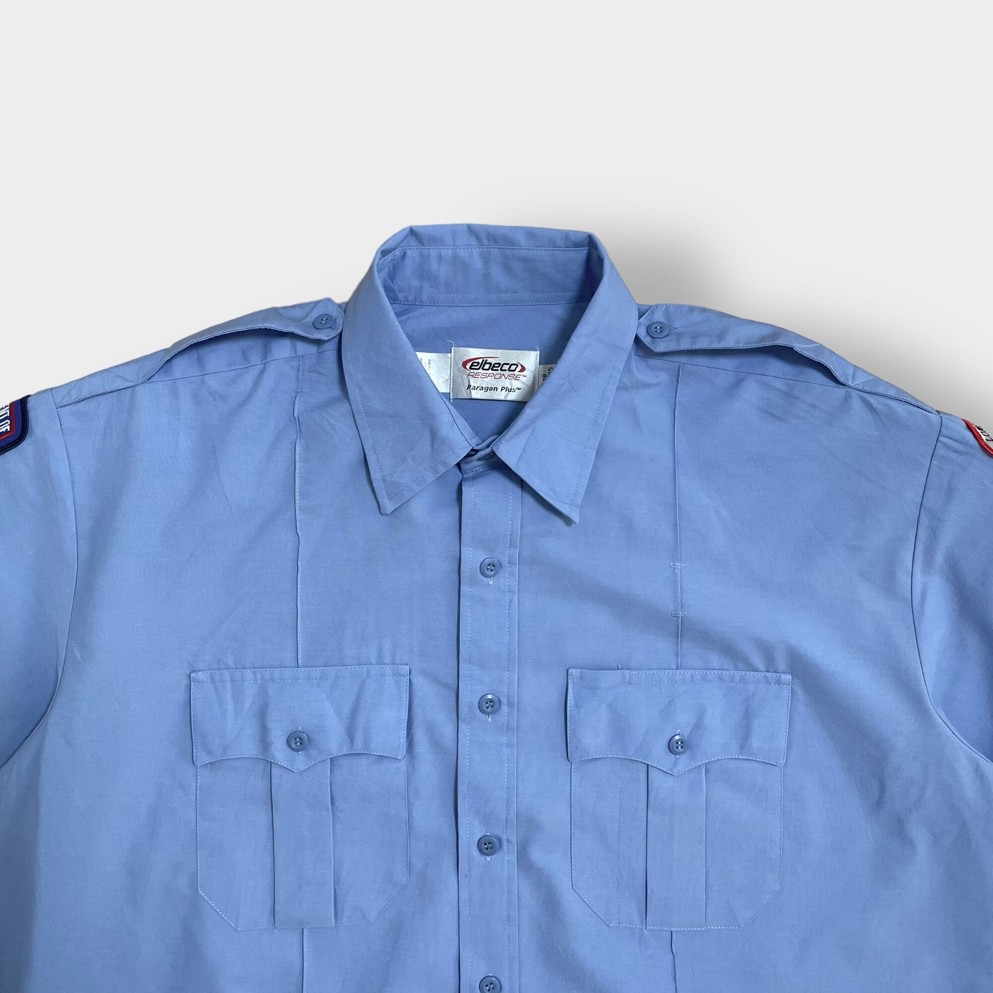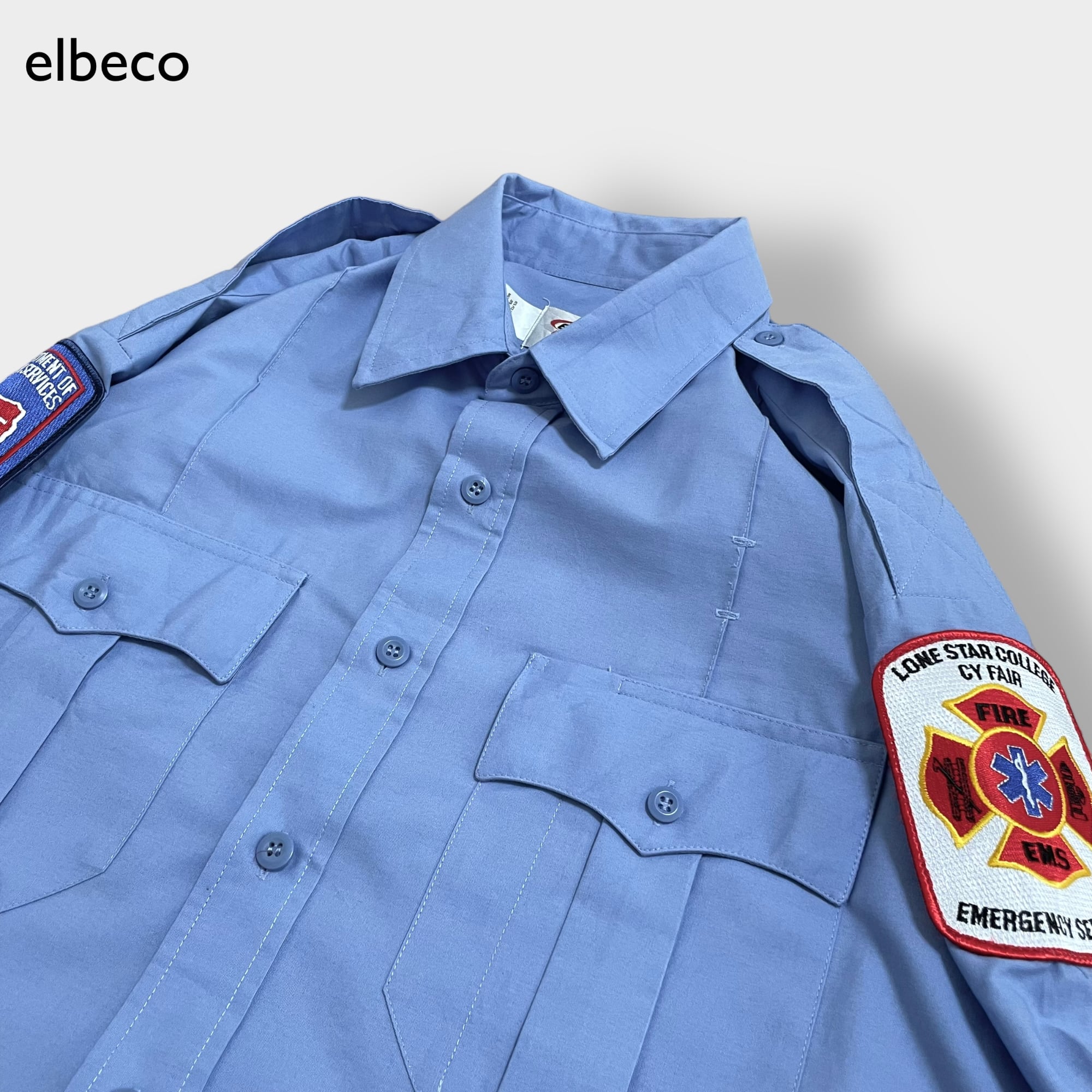 elbeco ワークシャツ エポーレット セキュリティ 消防隊 救急隊 レスキュー隊 ワッペン サックスブルー 2XL相当 US古着