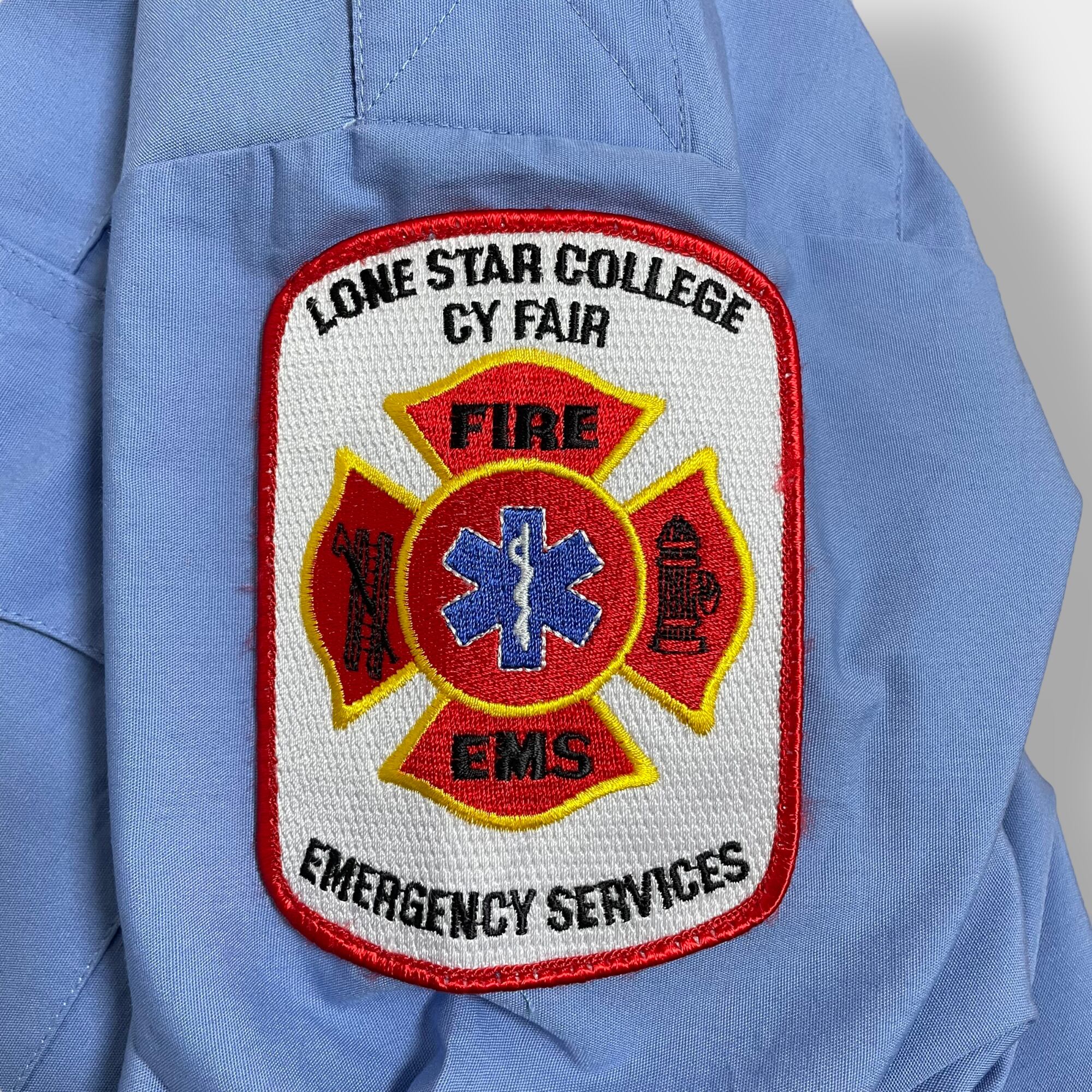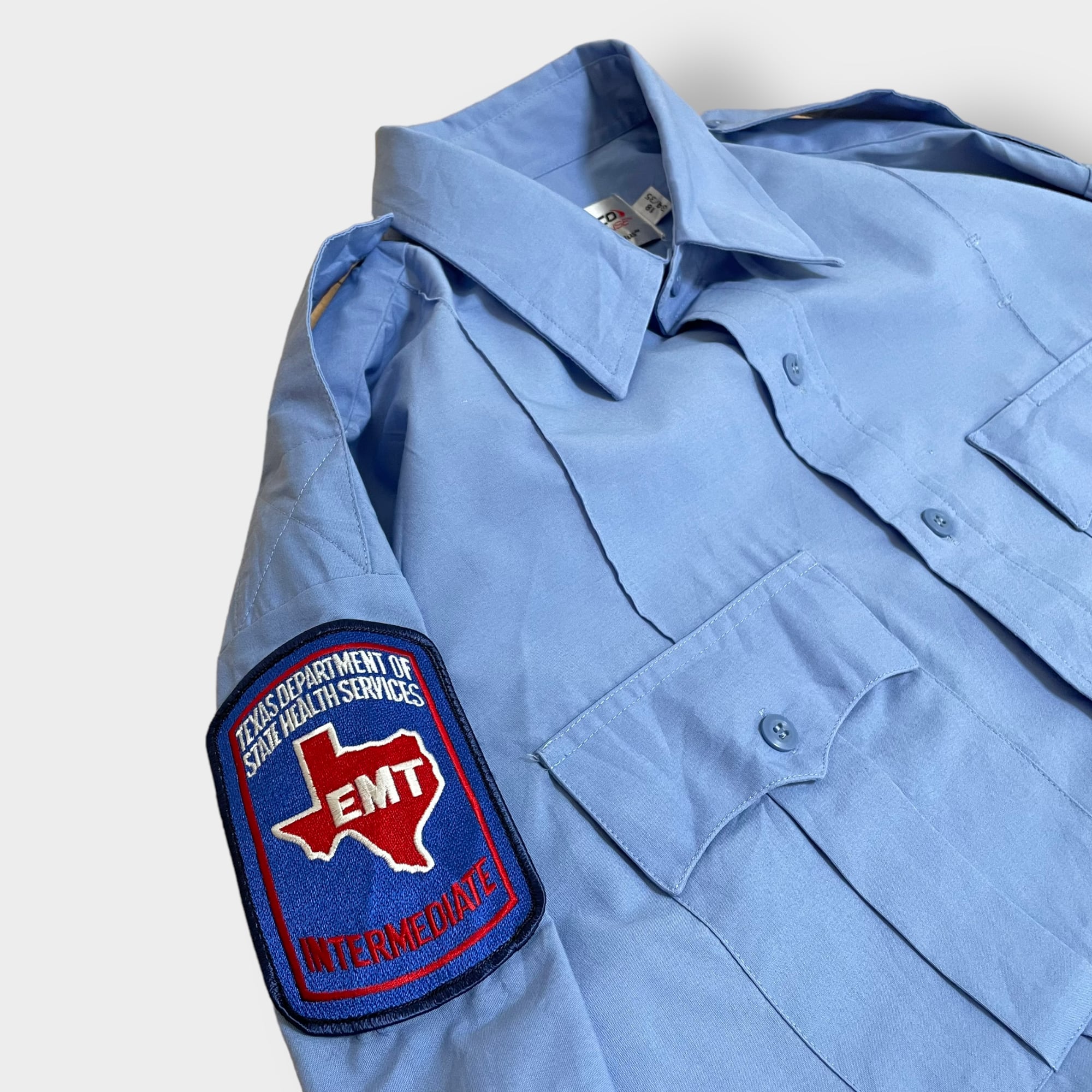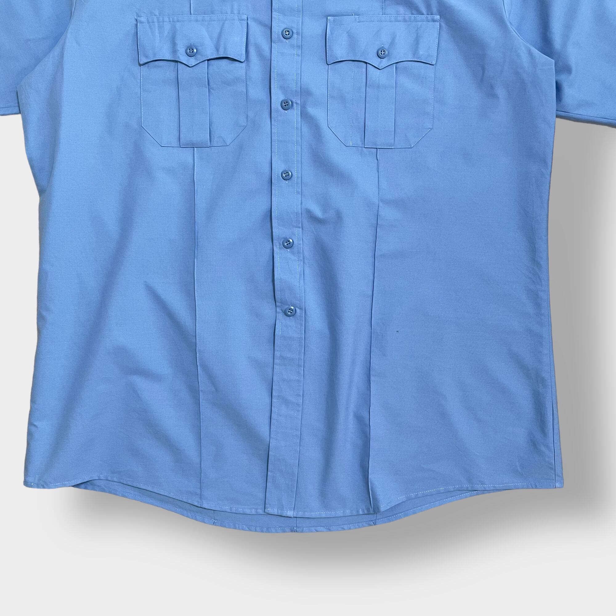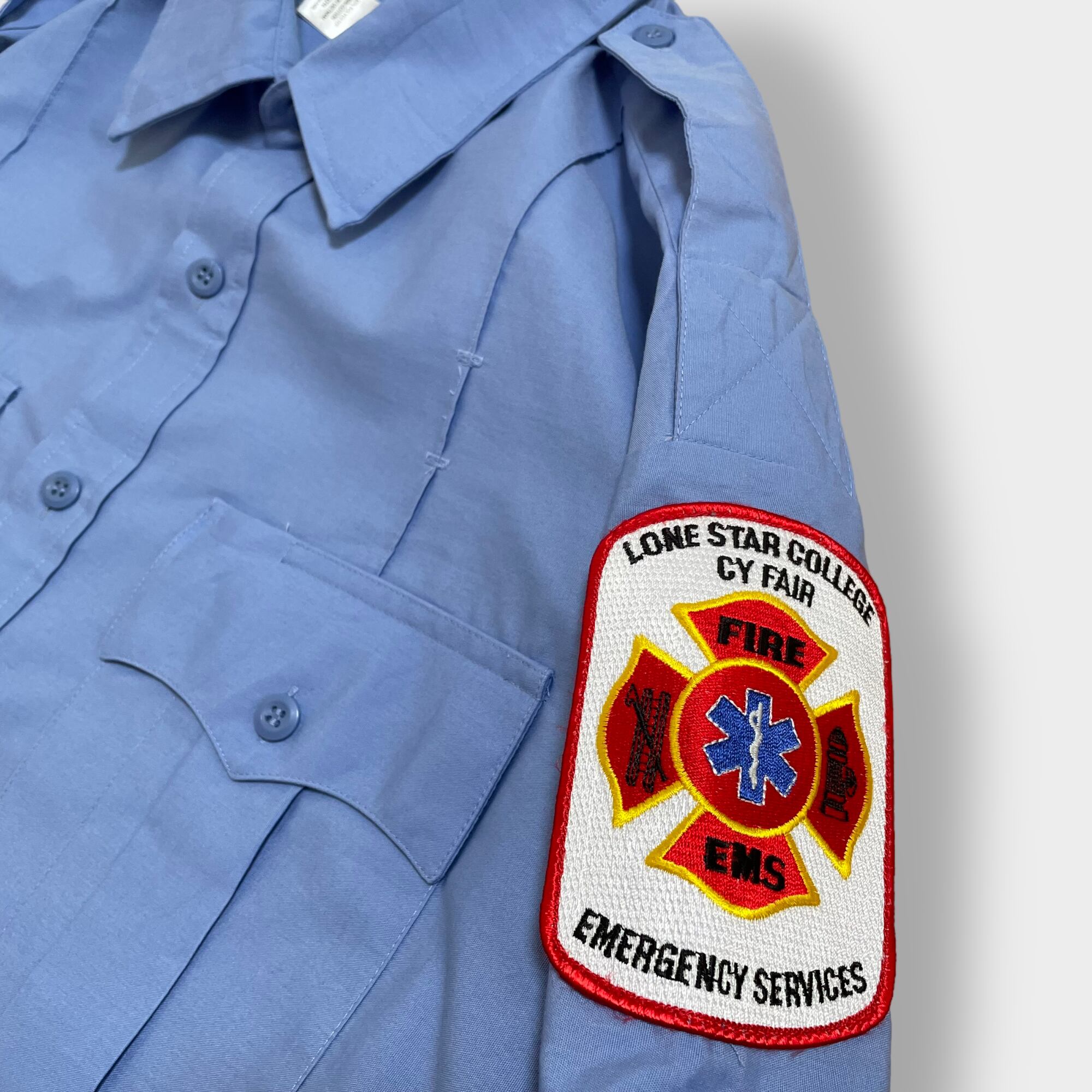 elbeco ワークシャツ エポーレット セキュリティ 消防隊 救急隊 レスキュー隊 ワッペン サックスブルー 2XL相当 US古着