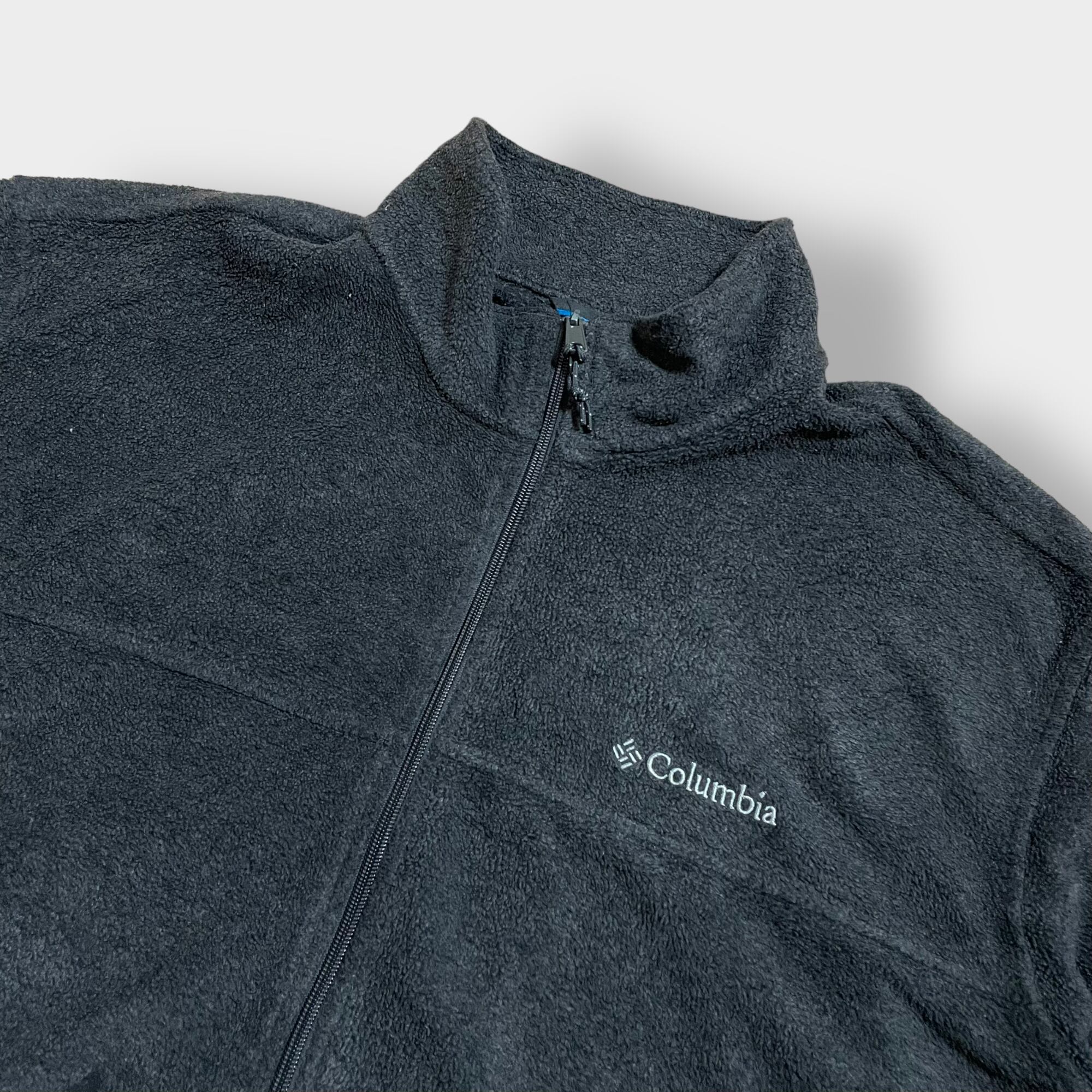 Columbia フリースジャケット 2XL ビッグサイズ ジップアップ フルジップ アウター コロンビア アウトドア ワンポイント 刺繍ロゴ ダークグレー US古着