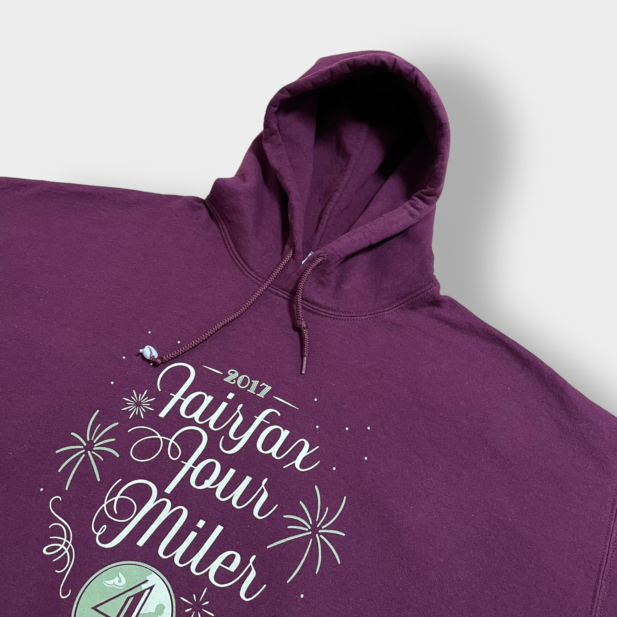 GILDAN XL ビッグサイズ ロゴ プリント パーカー フーディー プルオーバー スウェット バーガンィギルダン us古着