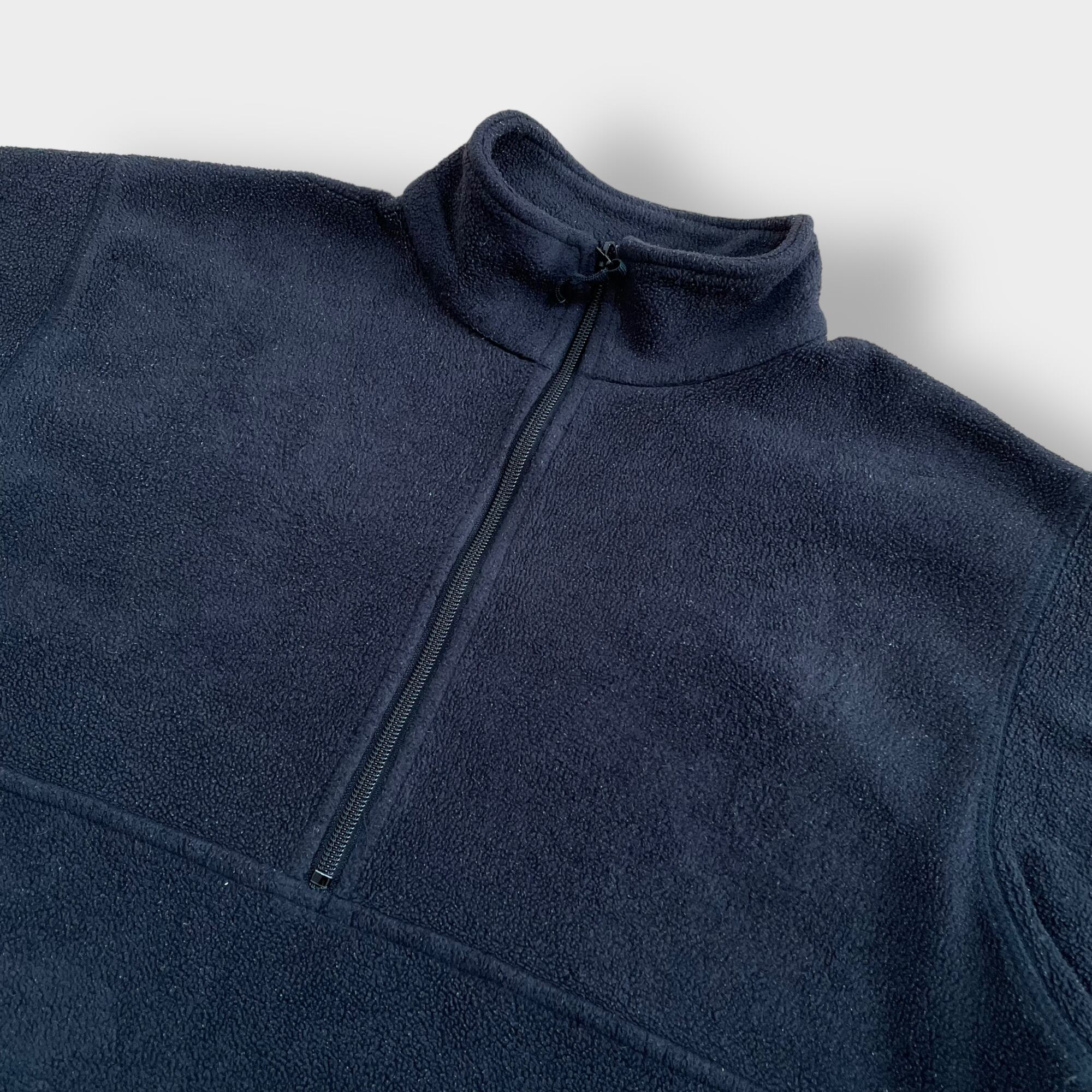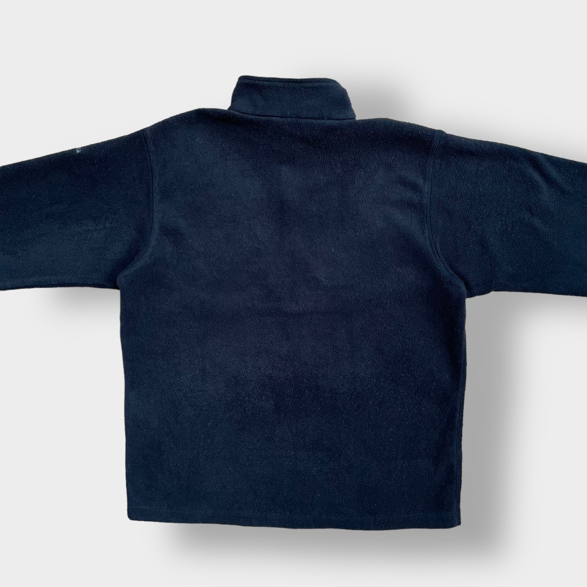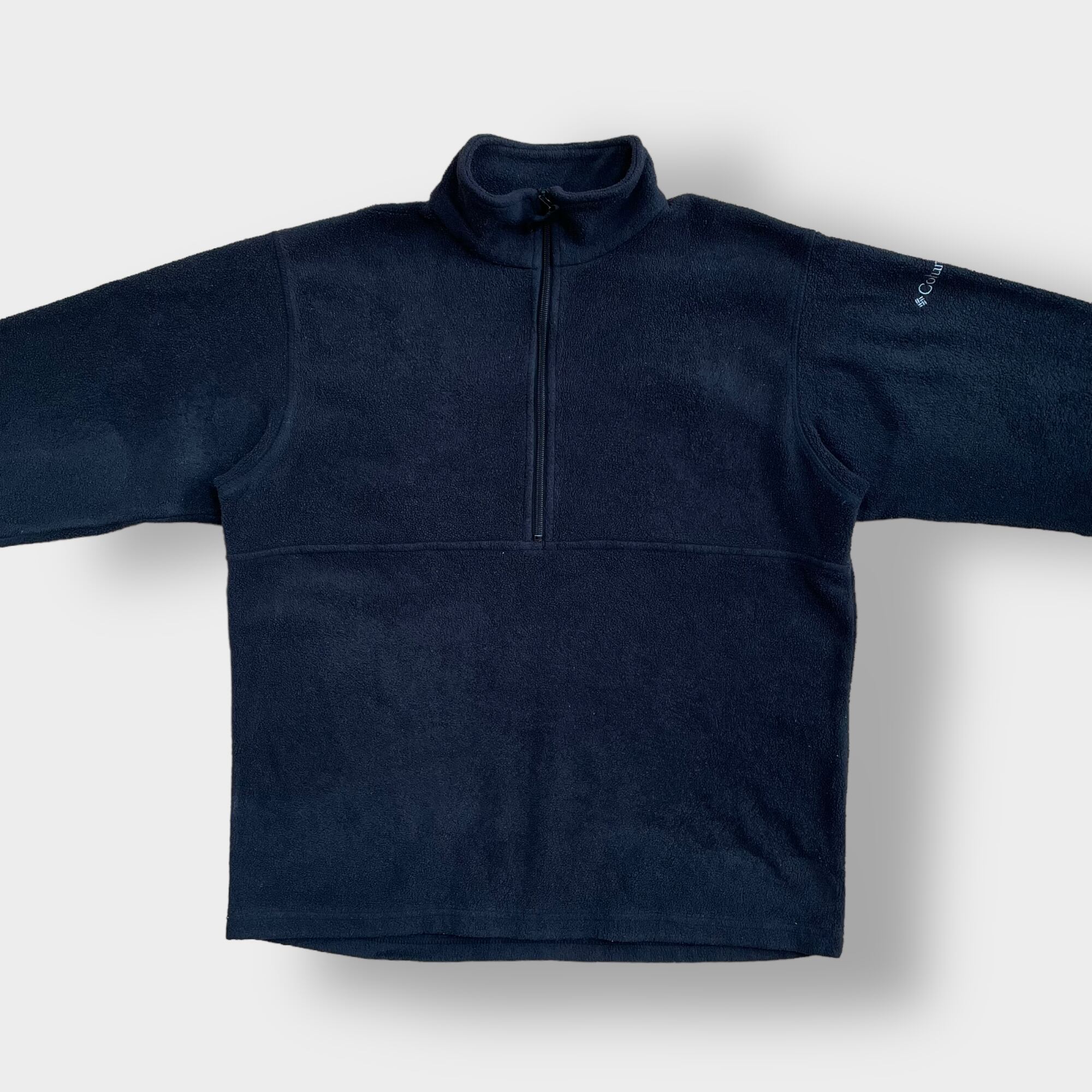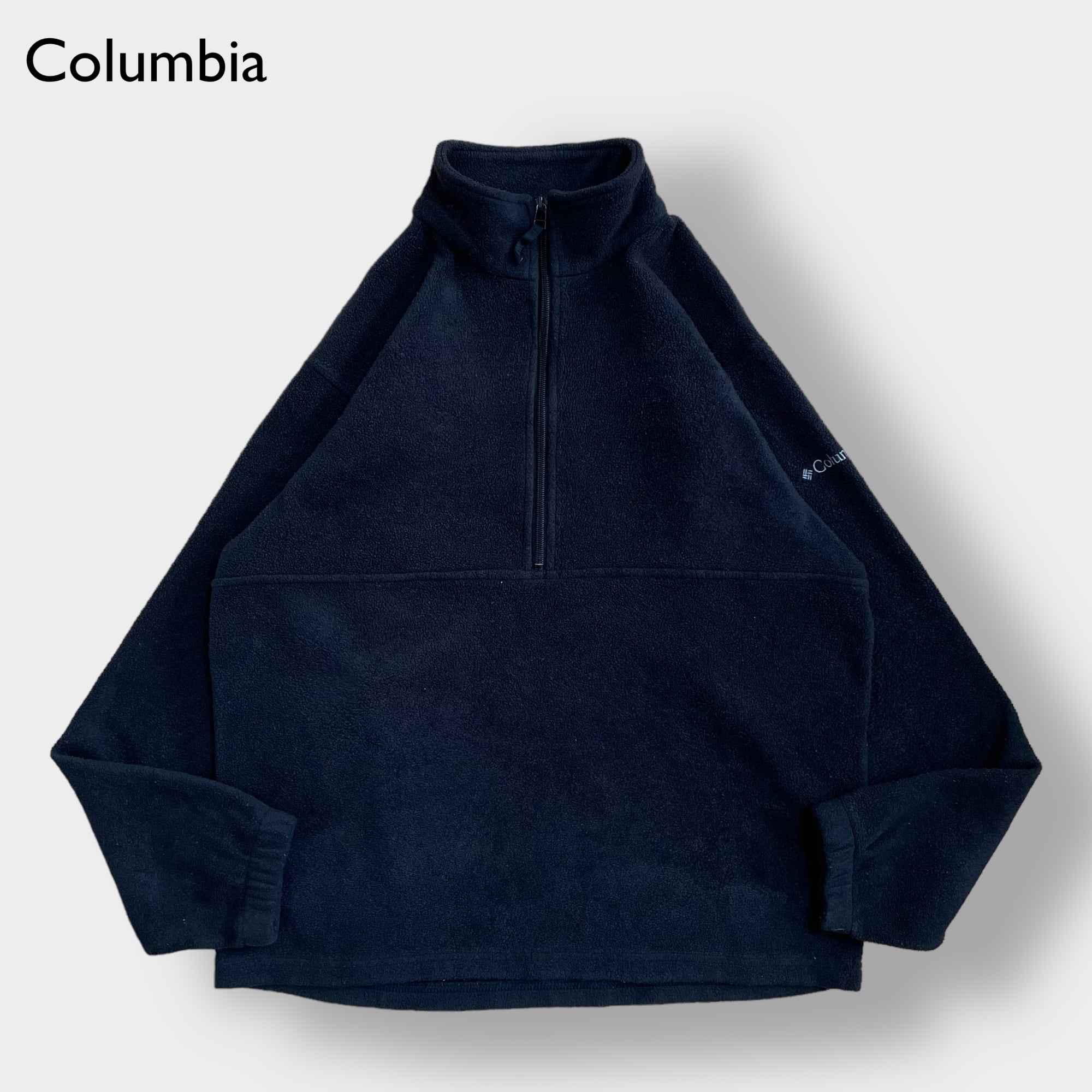旧タグの90年代製、ハーフジップ、左袖にColumbiaの刺繍ロゴが入っています。