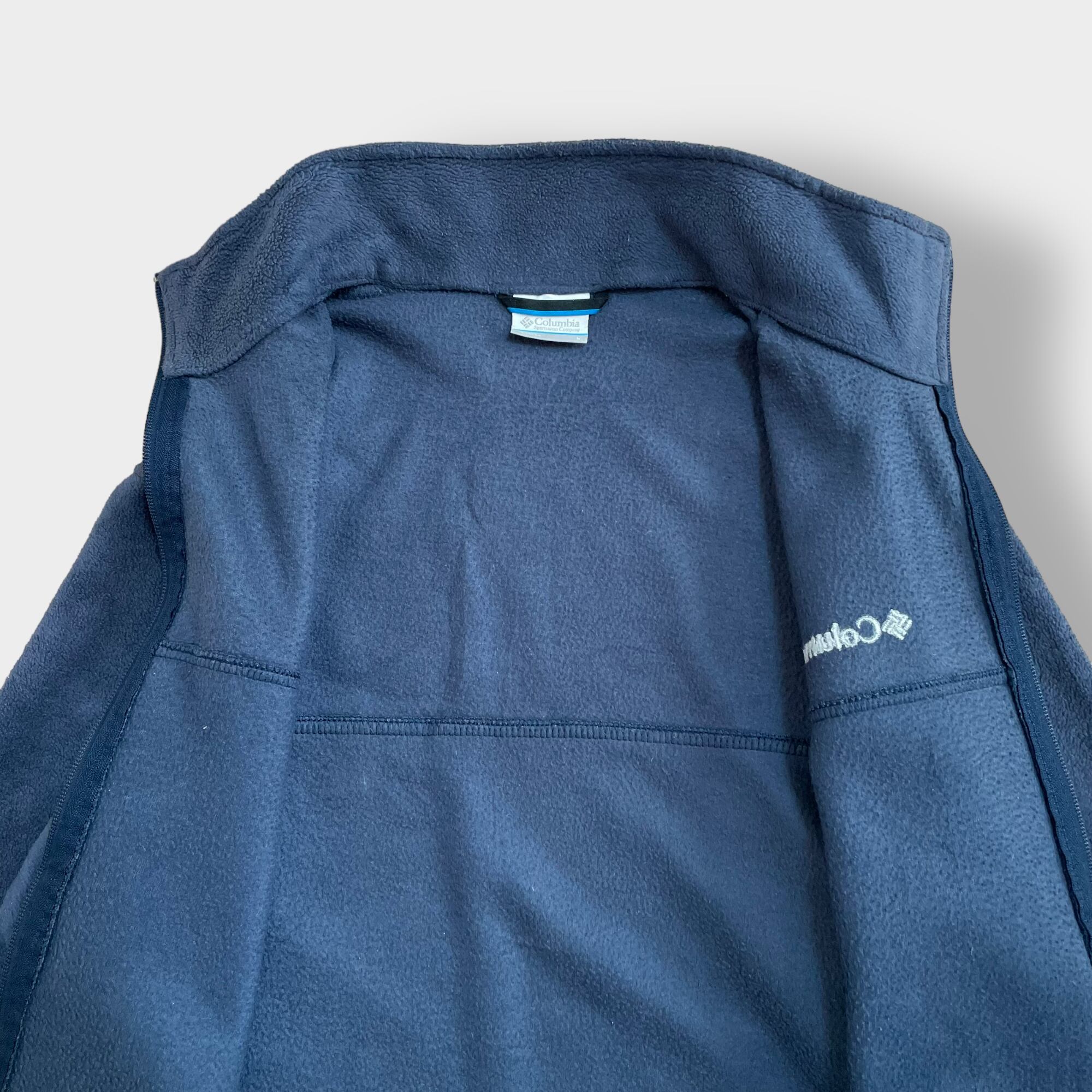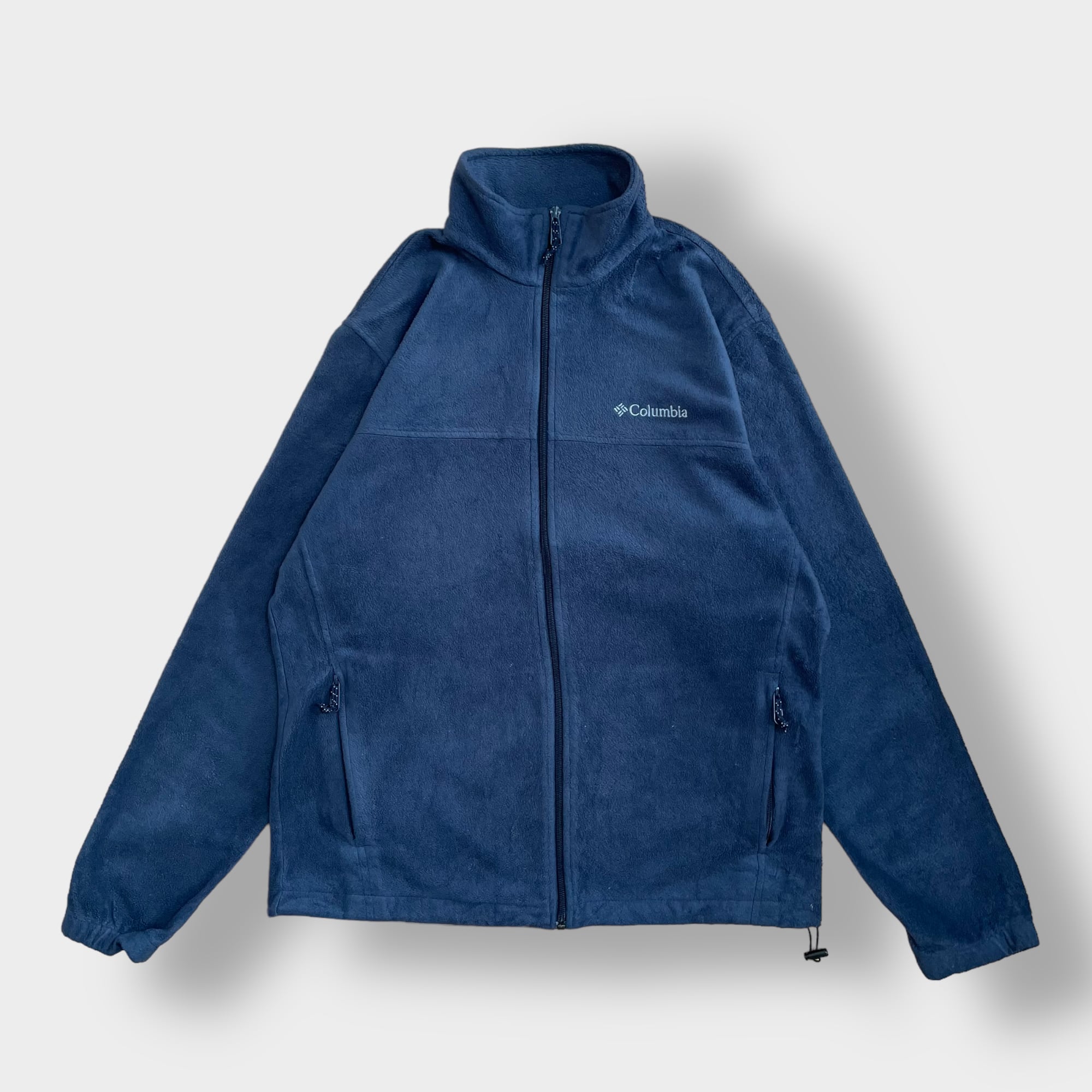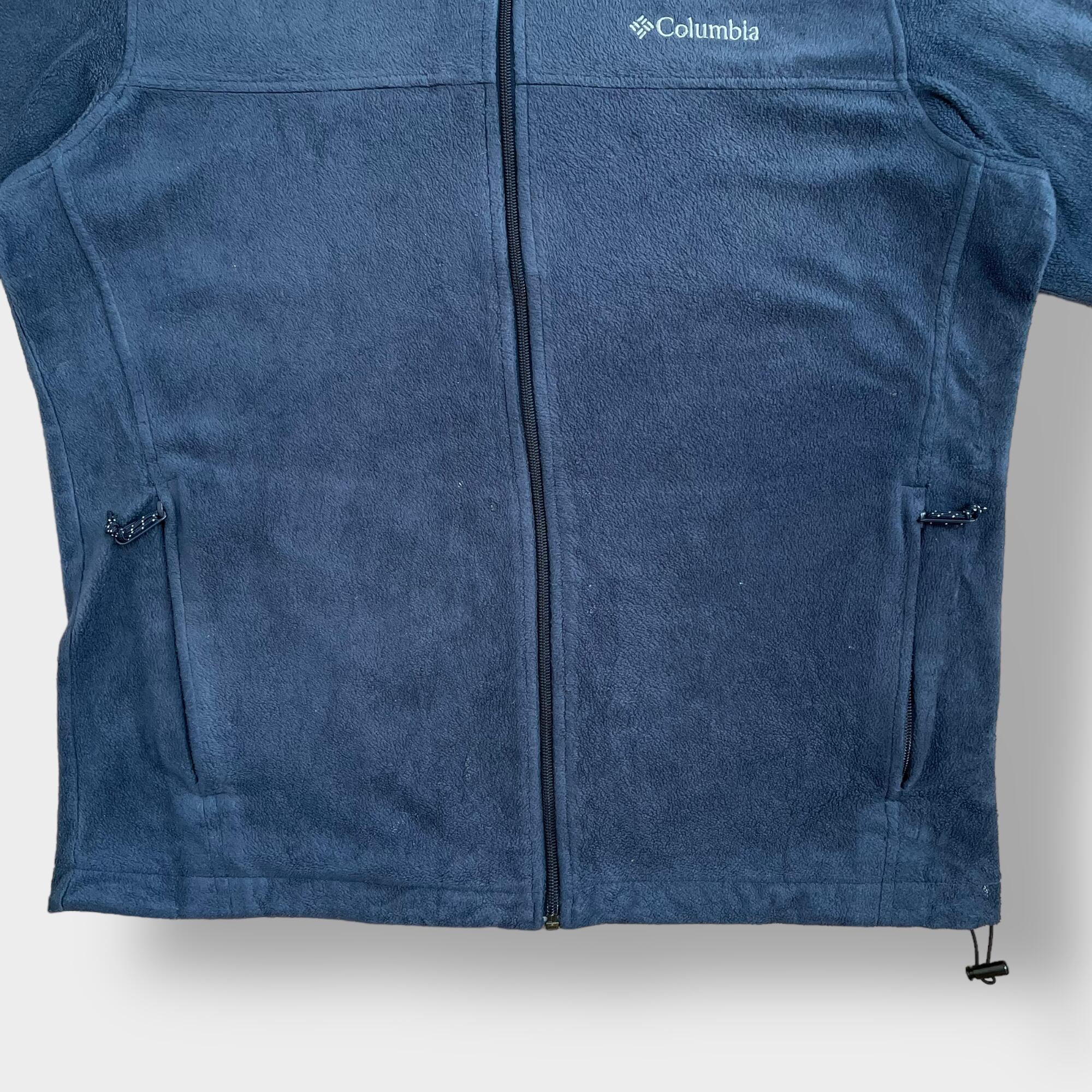 Columbia フリースジャケット アウター ジップアップ フルジップ コロンビア アウトドア ワンポイント L 刺繍ロゴ ネイビー US古着