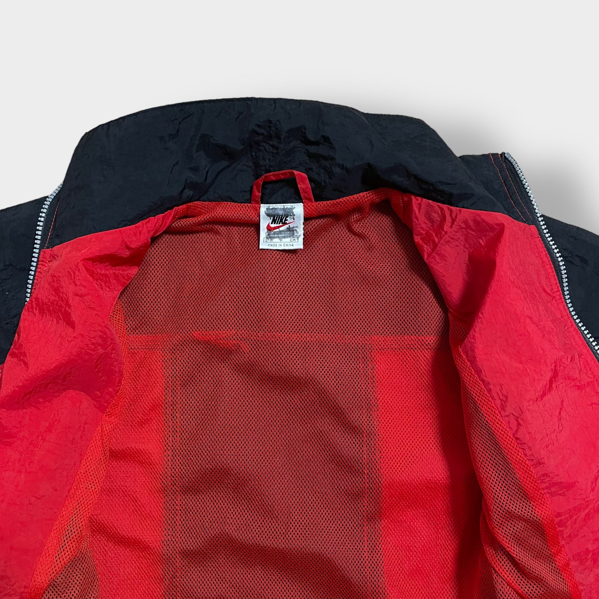 NIKE 90s 白タグ ナイロンジャケット ジャンパー フルジップ バイカラー バックロゴ ビッグロゴ スウッシュ ビンテージ ナイキ S US古着