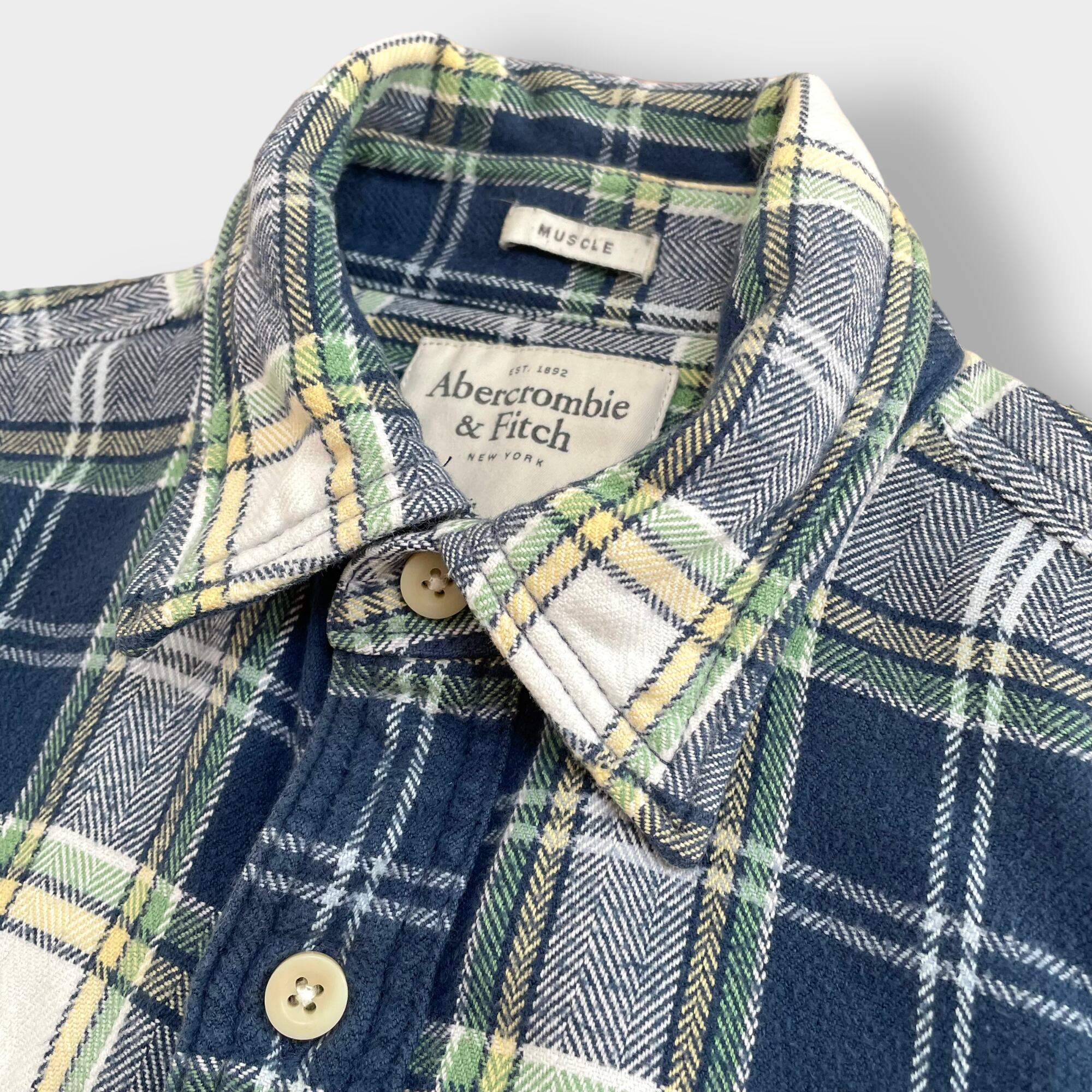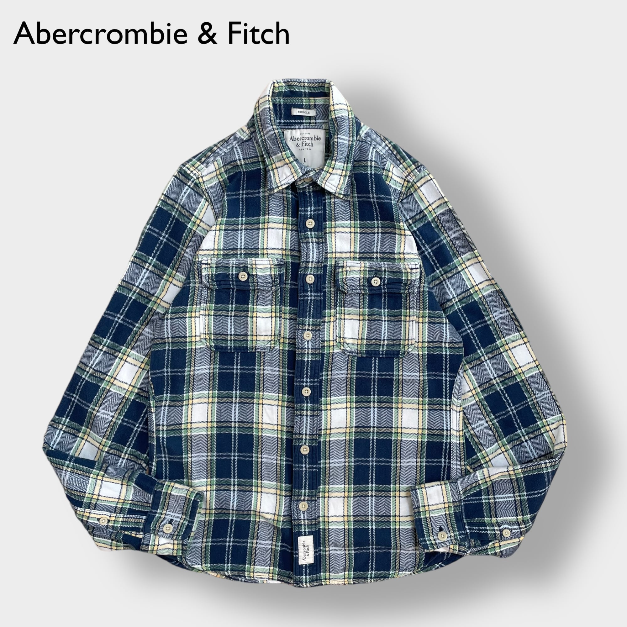 Abercrombie & Fitch ネルシャツ ヘビーネル フランネルシャツ マルチカラー 長袖 チェック柄 カジュアルシャツ フラップポケット L アバクロ US古着