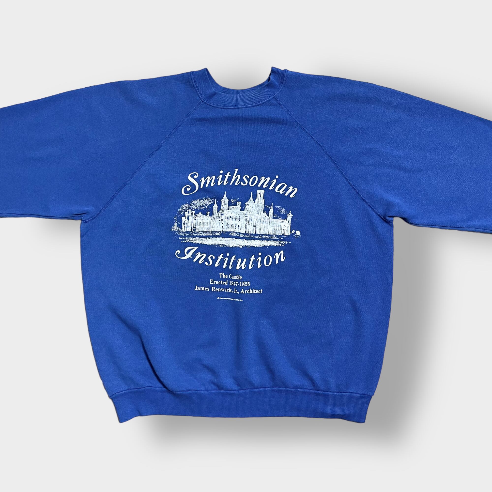 Better Basics by tultex 80s 90s USA製 プリント スミソニアン博物館 スウェットシャツ トレーナー プルオーバー ブルー ラグランスリーブ ユニセックス XL ヴィンテージ ビンテージ オールド US古着