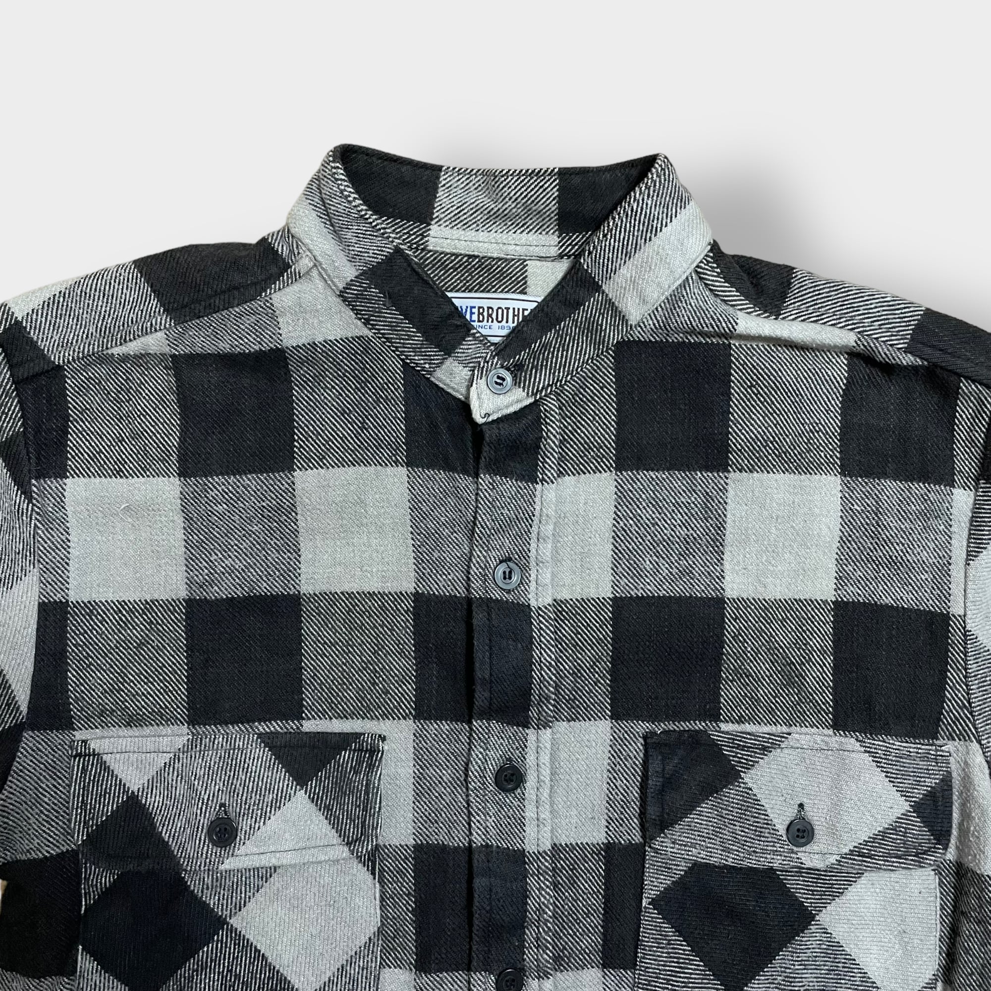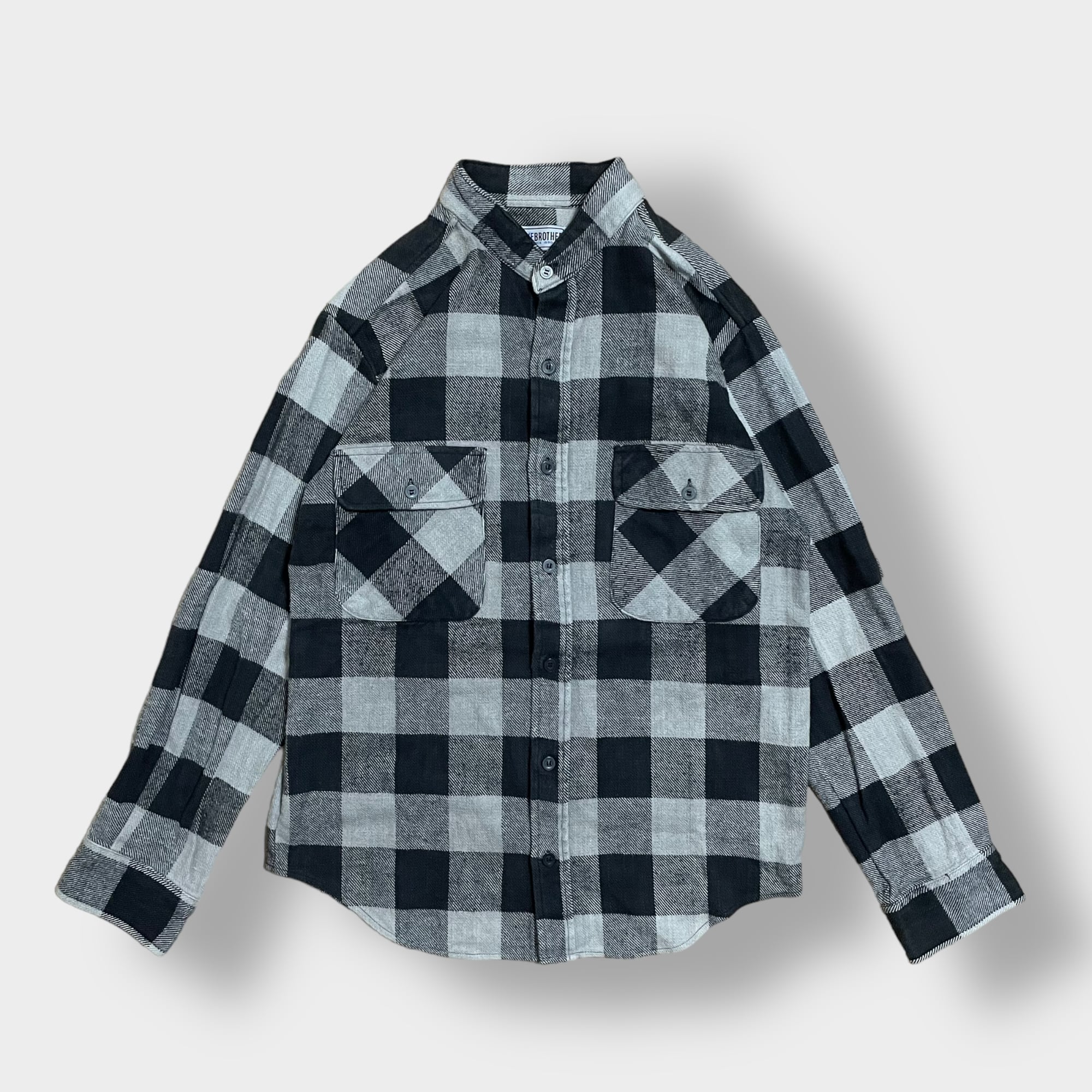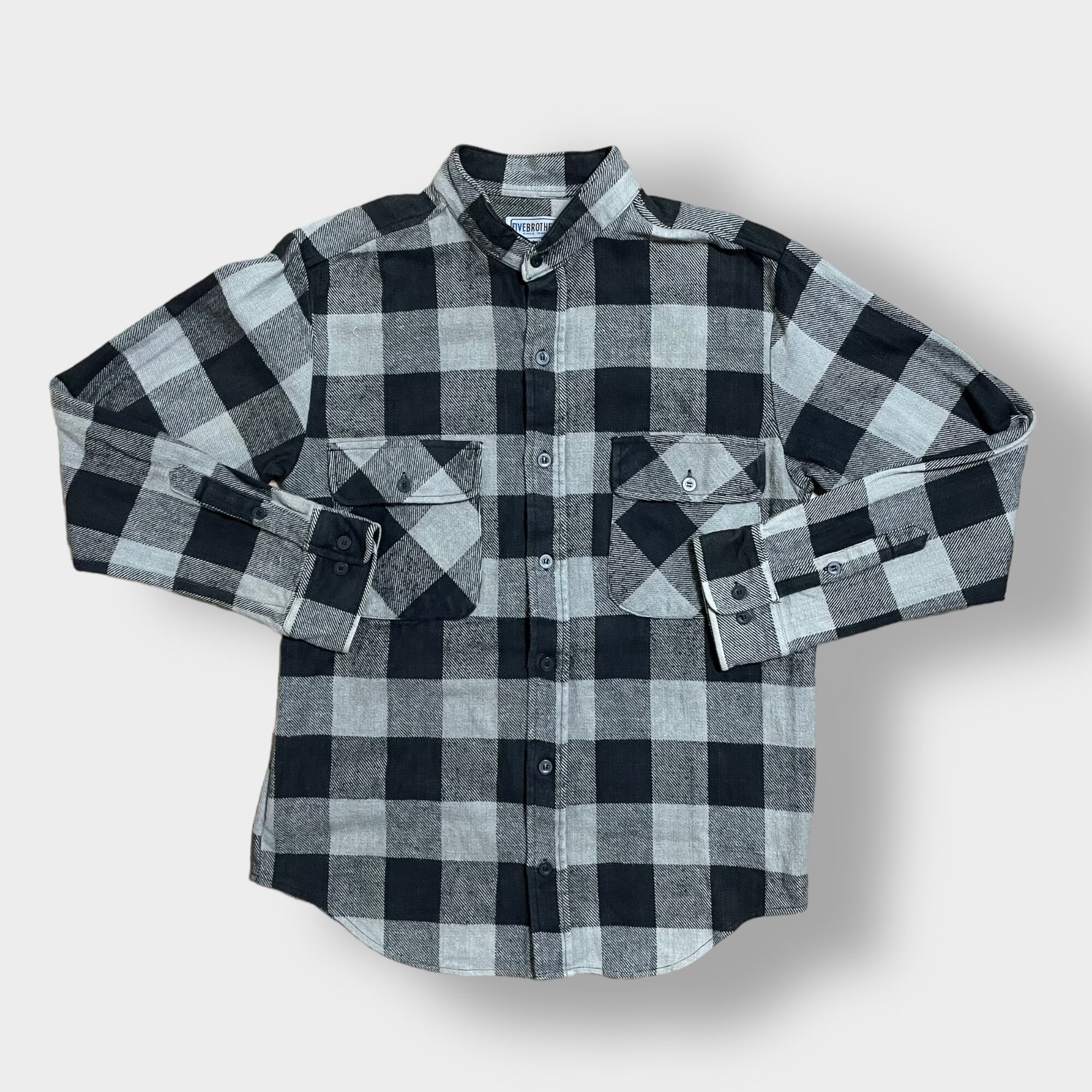 FIVE BROTHER ネルシャツ ヘビーネル ノーカラー バンドカラー フランネルシャツ 長袖 ブロックチェックカジュアルシャツ ファイブブラザー US古着