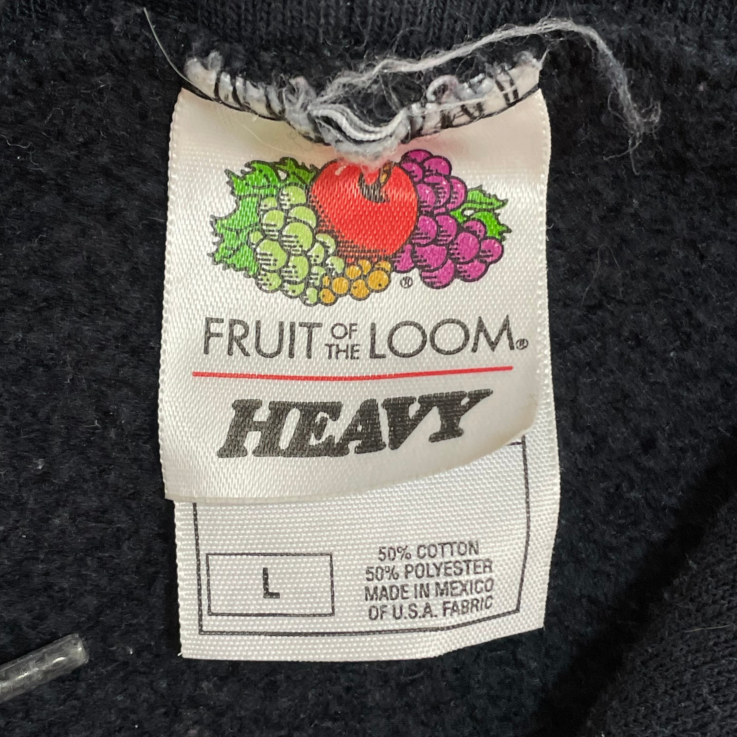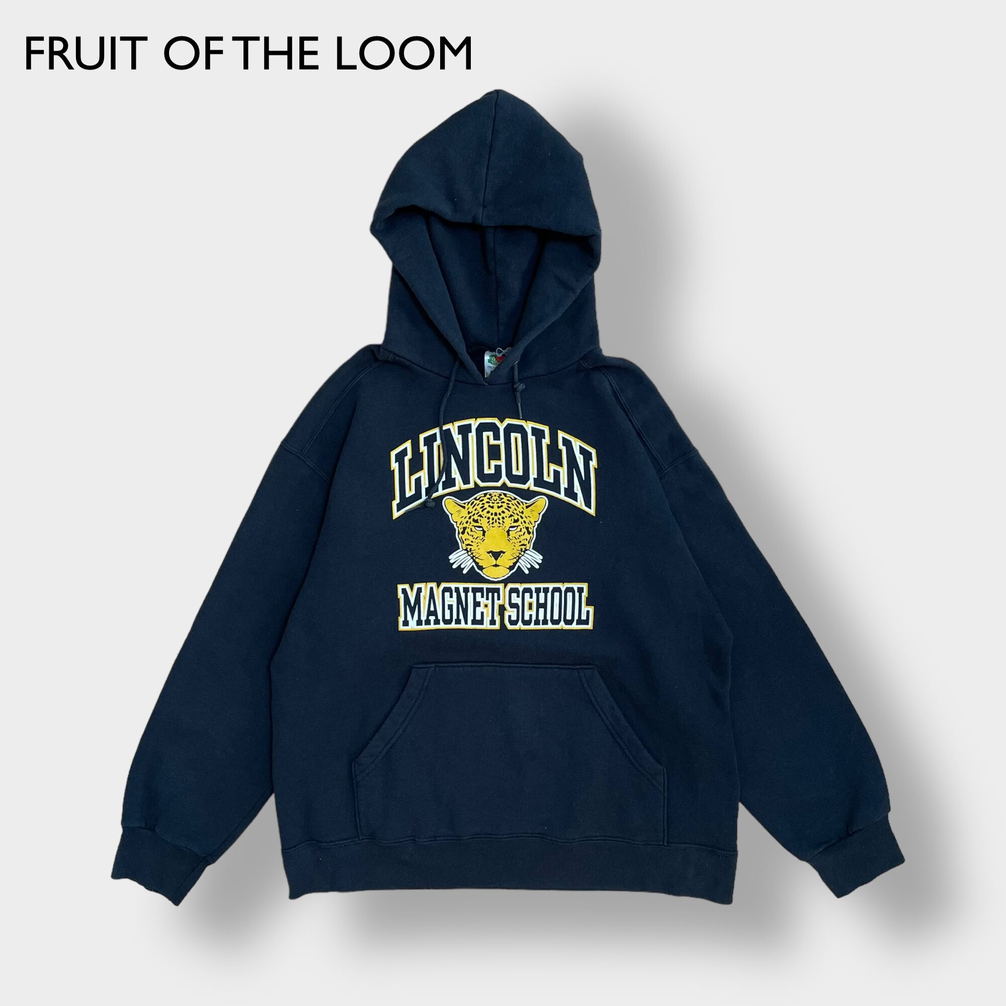 FRUIT OF THE LOOM 90s USA素材 パーカー アニマルプリント 中学校 ロゴ フーディー プルオーバー スウェット L ブラック us古着